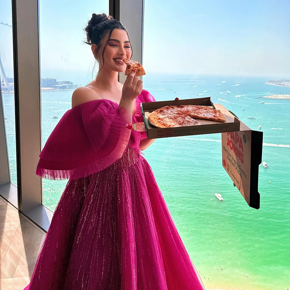 Luxury Dubai Ball Gown Fuchsia Evening Dress For Women Wedding 2023 Off Shoulder Arabic Celebrity Party Gown Sz390-2
