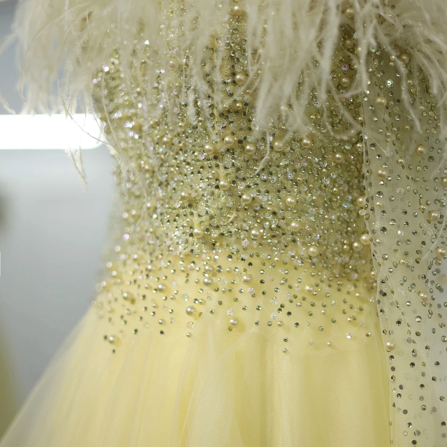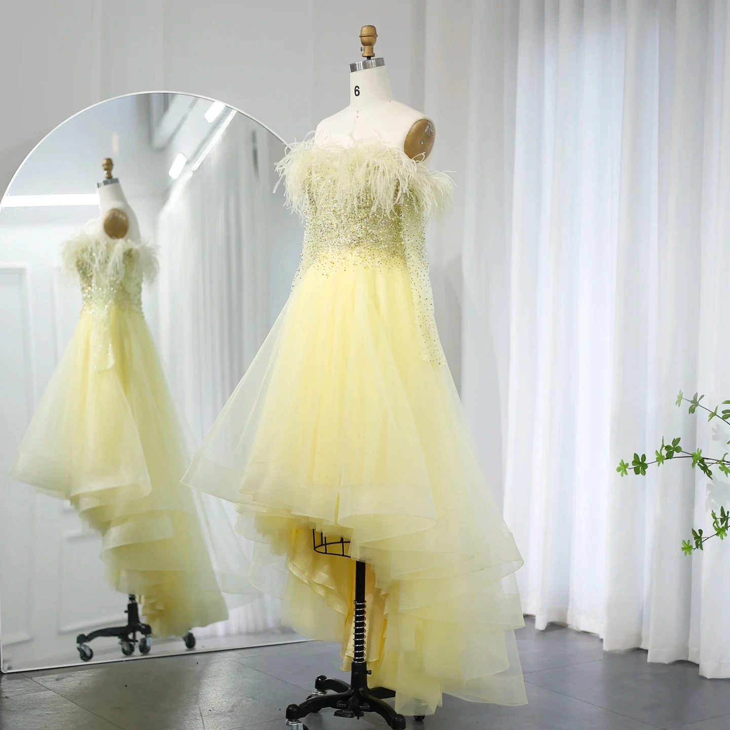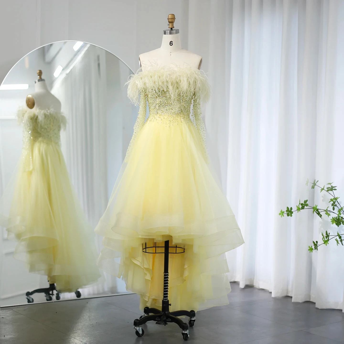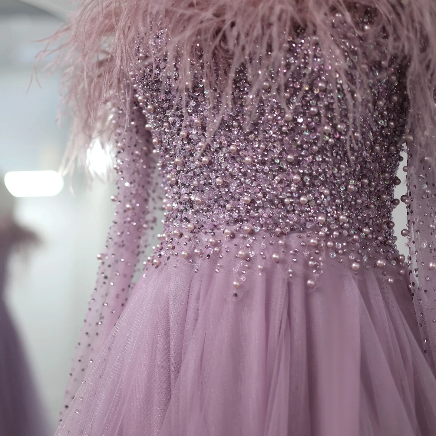 Luxury Feathers Dubai Purple High Low Evening Dresses Elegant Off Shoulder Arab Women Wedding Party Prom Dress Sz465