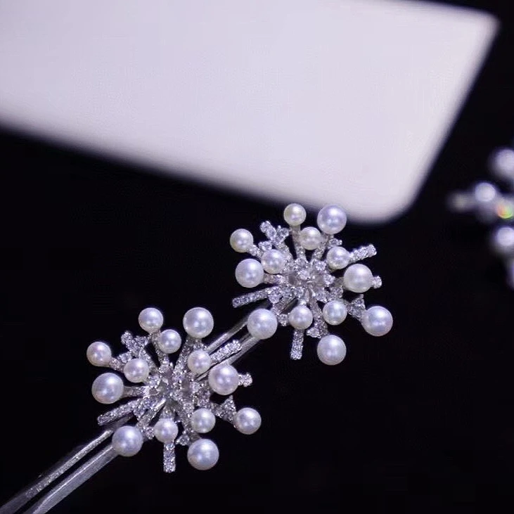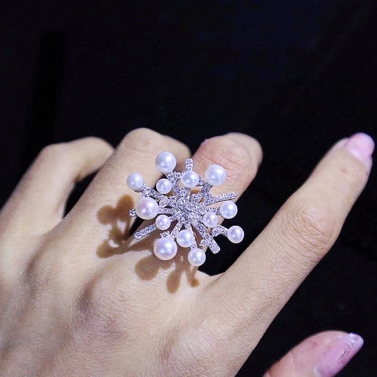 Luxury Fireworks 925 Silver Earrings Pendant Brooch Ring Natural Freshwater Pearl Jewelry Set Lady