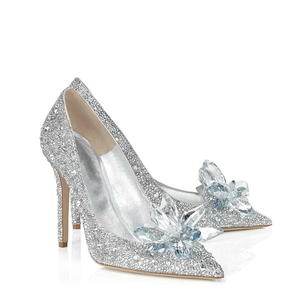 Luxury Handmade Cinderella Wedding Shoes Crystal Rhinestone 9 cm Stiletto Heels Pointed Toe Wedding Shoes