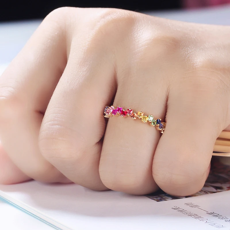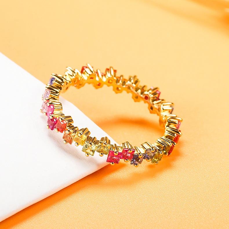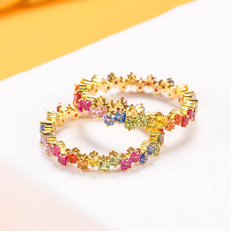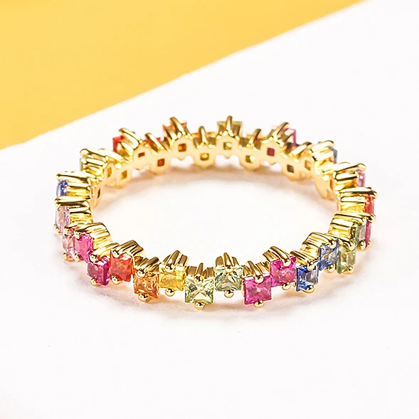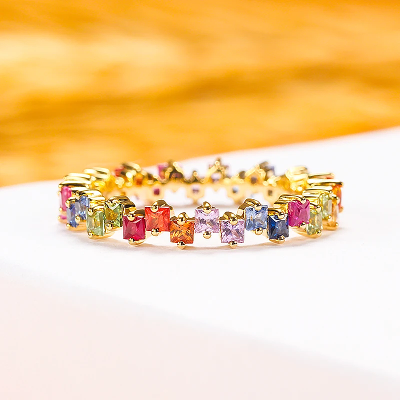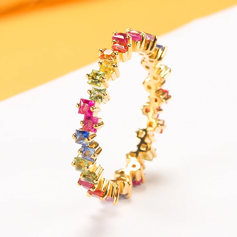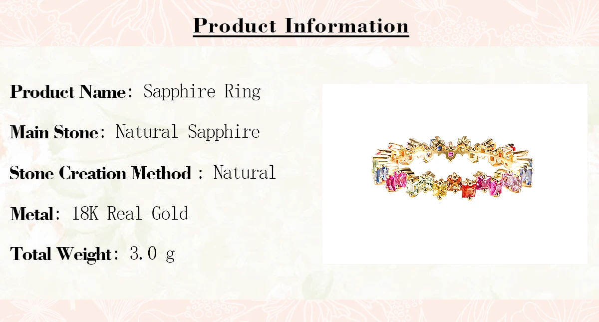 luxury jewelry 18ct gold natural rainbow colored sapphire gemstone real gold 18k rings jewelry