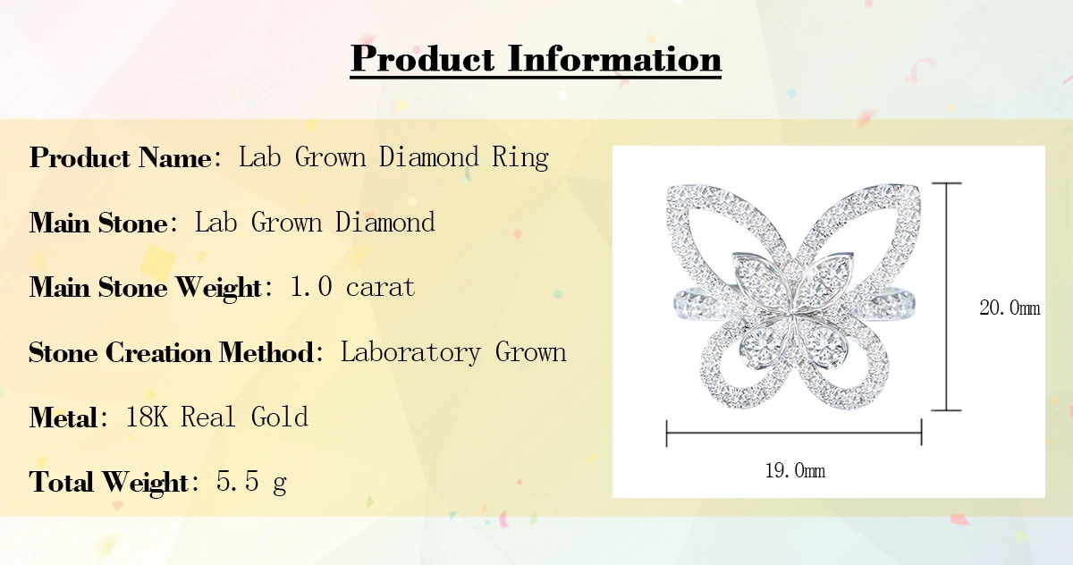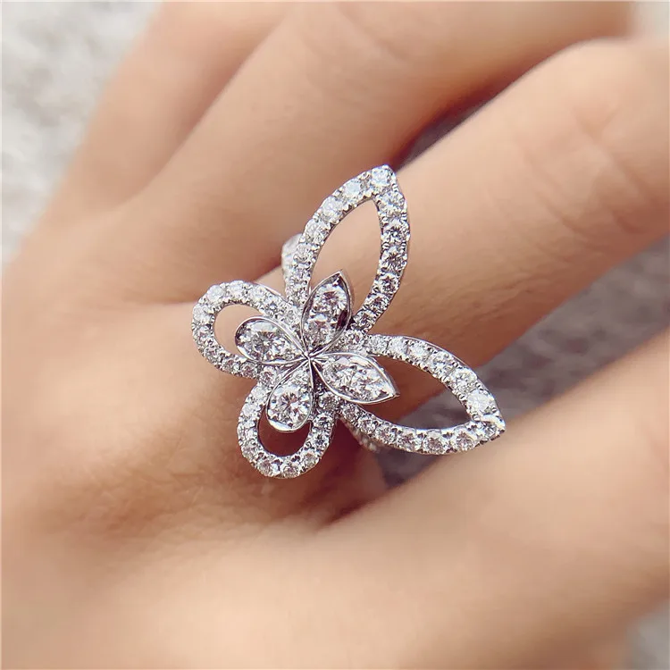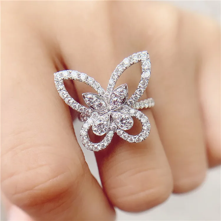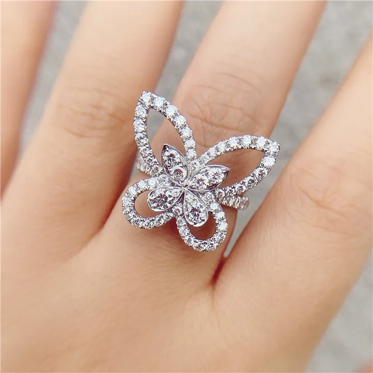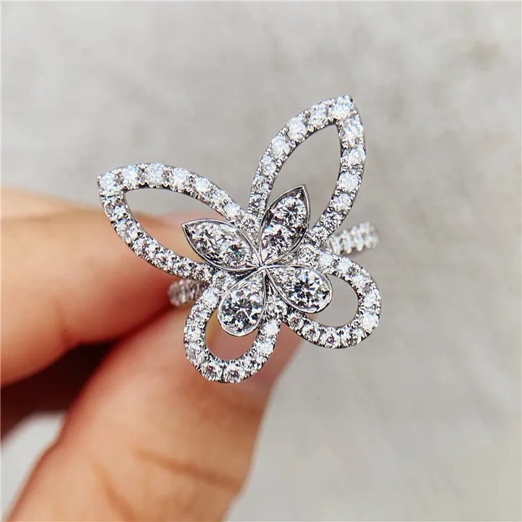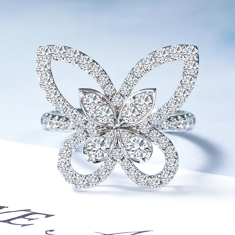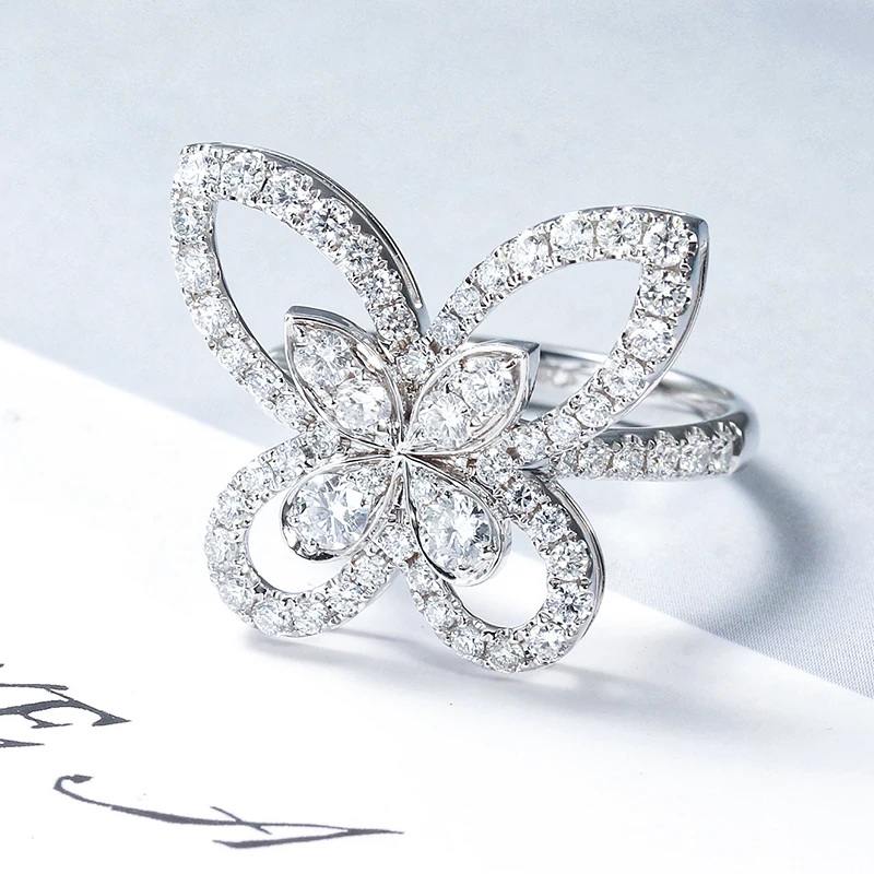 luxury jewelry 18k real gold lab grown synthetic cvd / hpht diamond butterfly women's ring