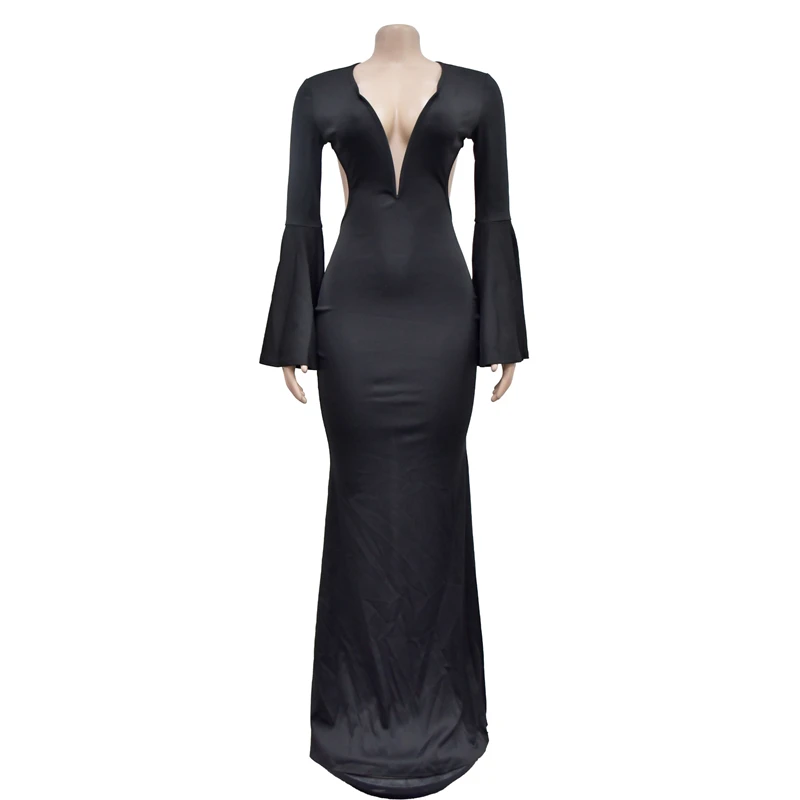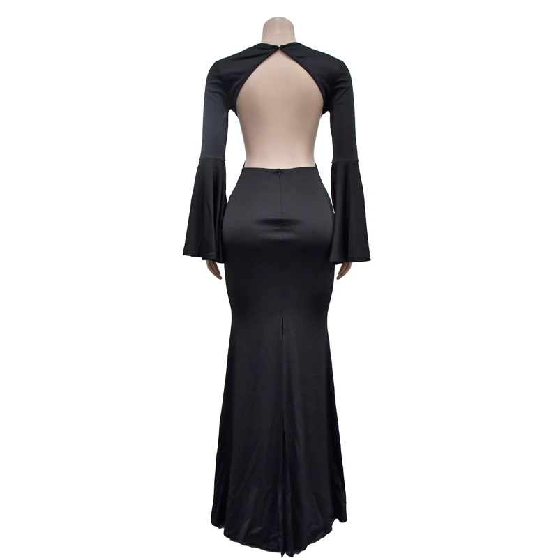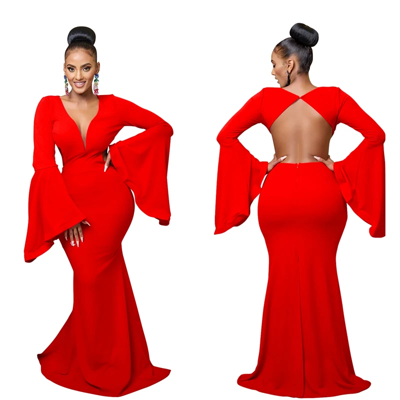 luxury ladies elegance elegant dinner backless flare long sleeve sweep train african party maxi evening gown dress for wedding