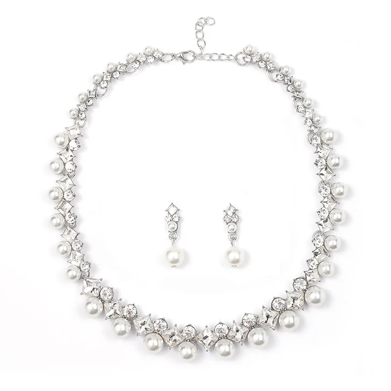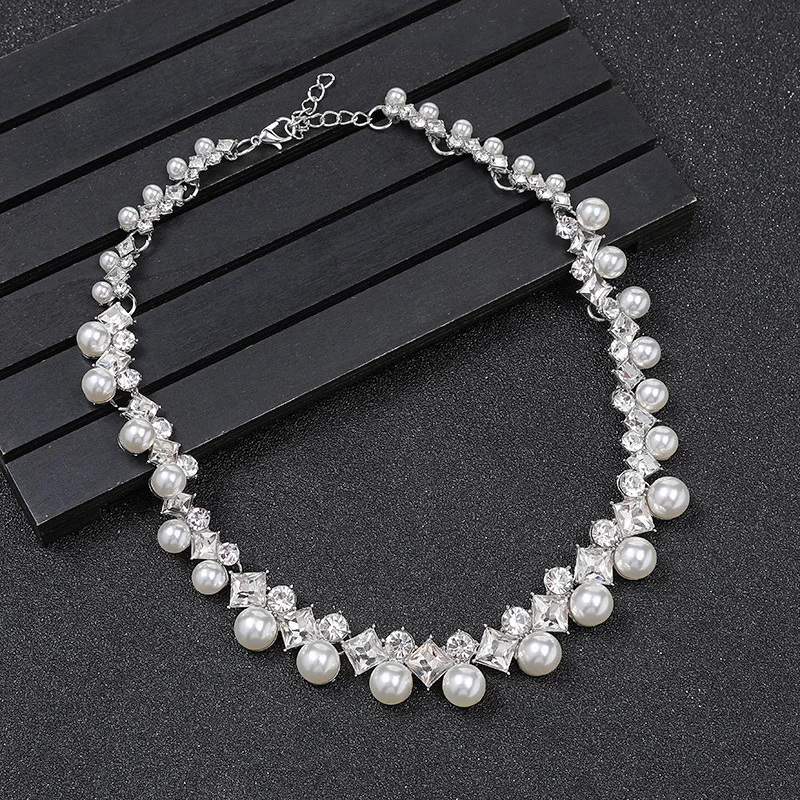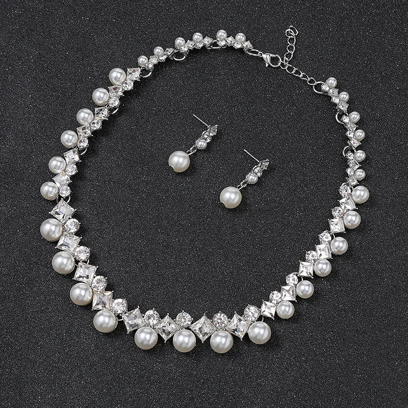 Luxury Pearls Jewelry Sets for Women Rhinestone Choker Necklace Earrings Set Wedding Bridal Evening Necklace Sets Fashion