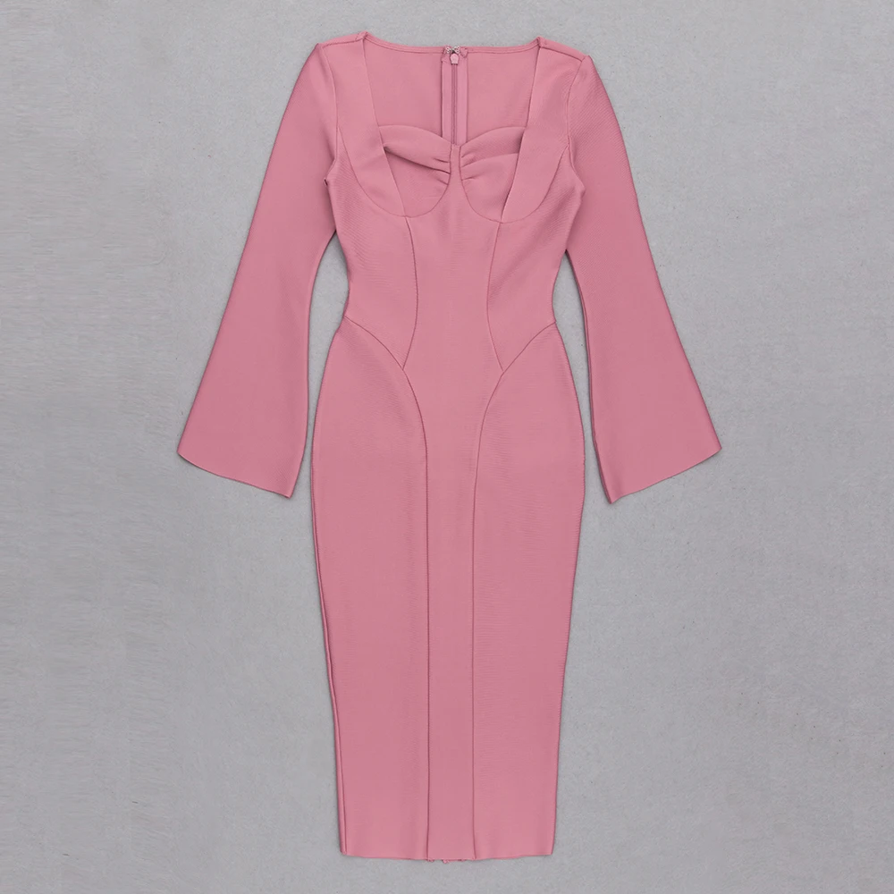Luxury Sexy Knitted Dresses Lady Elegant Midi Vestido Bandage Dress Bodycon for Women