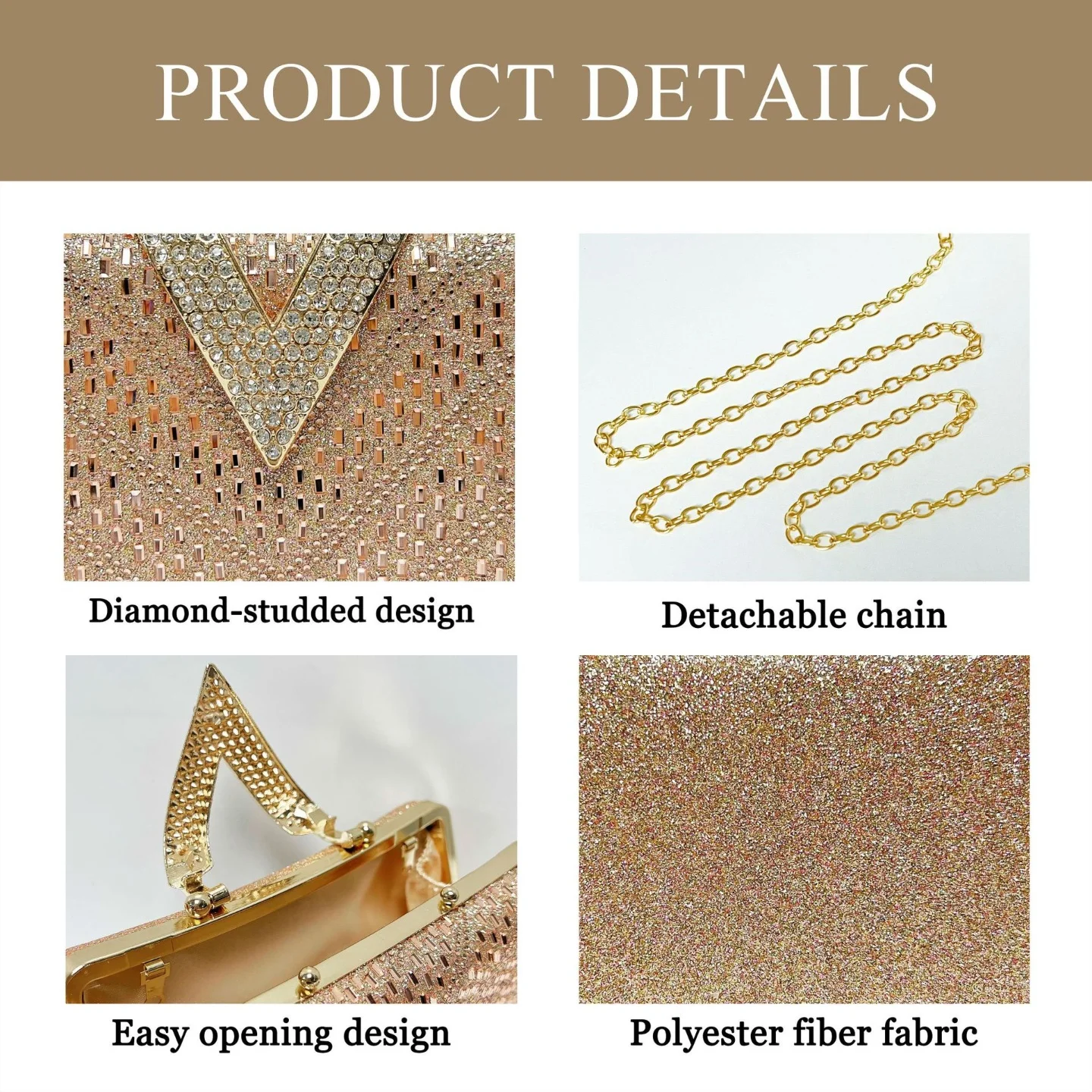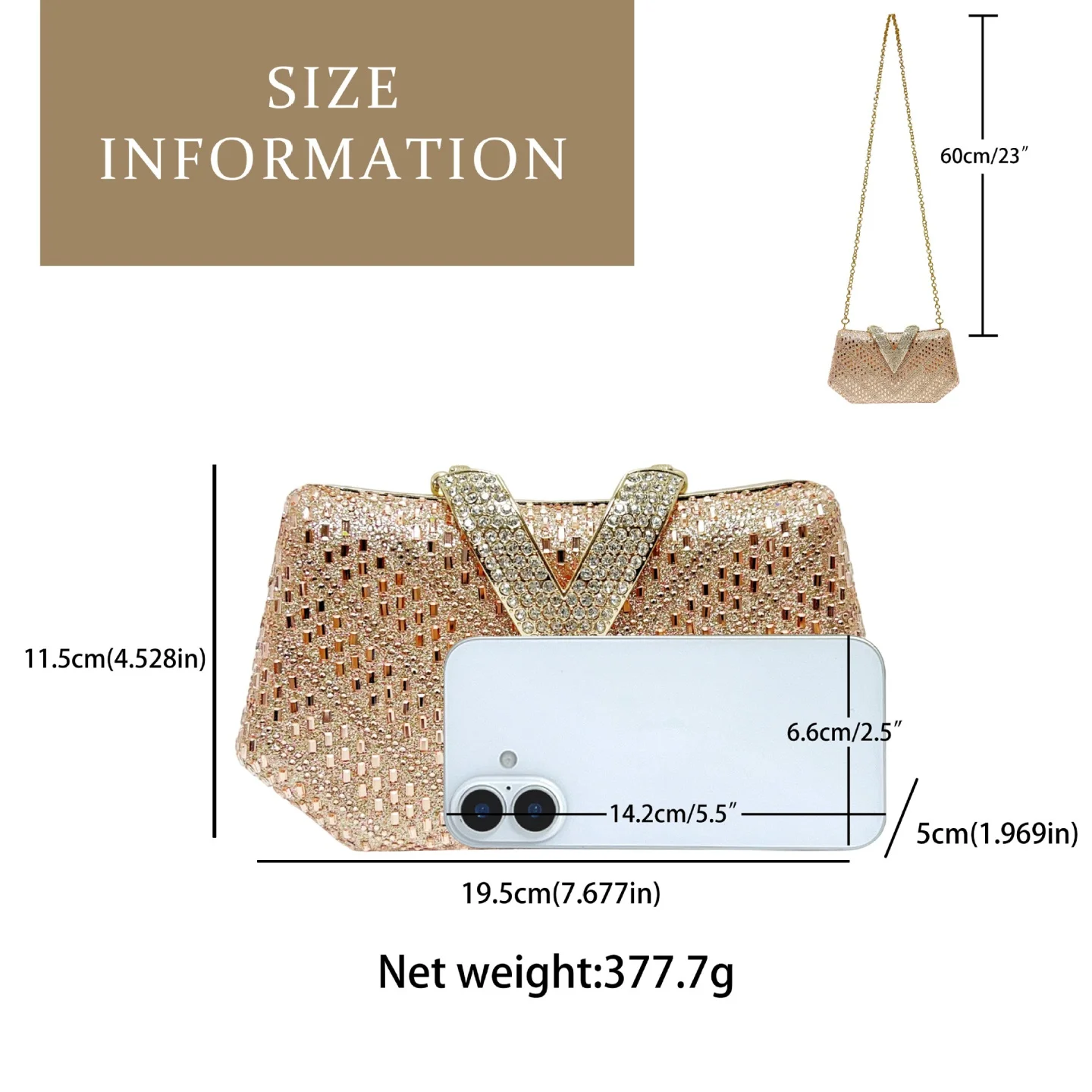Luxury Shiny Diamond Studded V Letter Evening Dress Bag for Women Brand Rhinestones Handbags Elegant Cheongsam Bag Wedding Purse