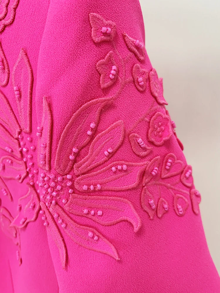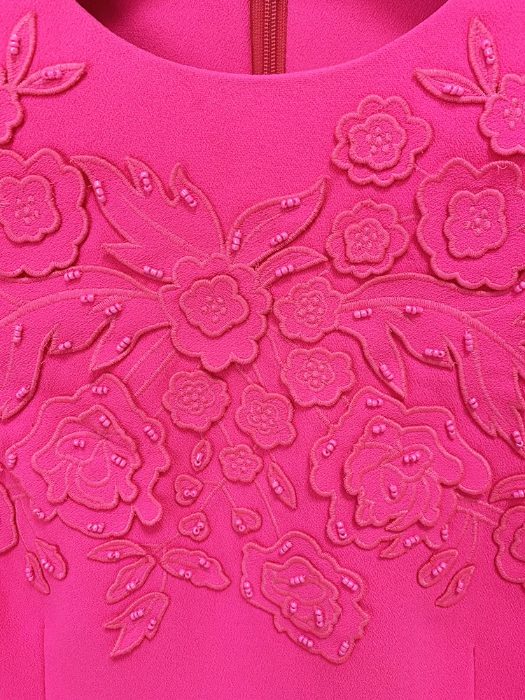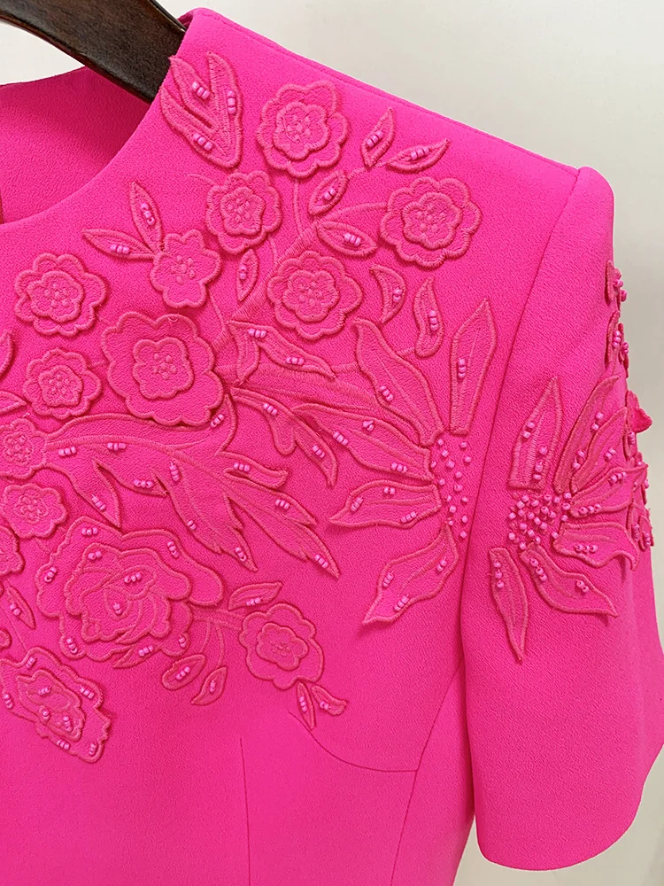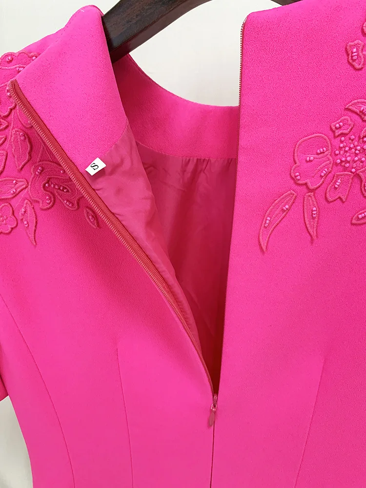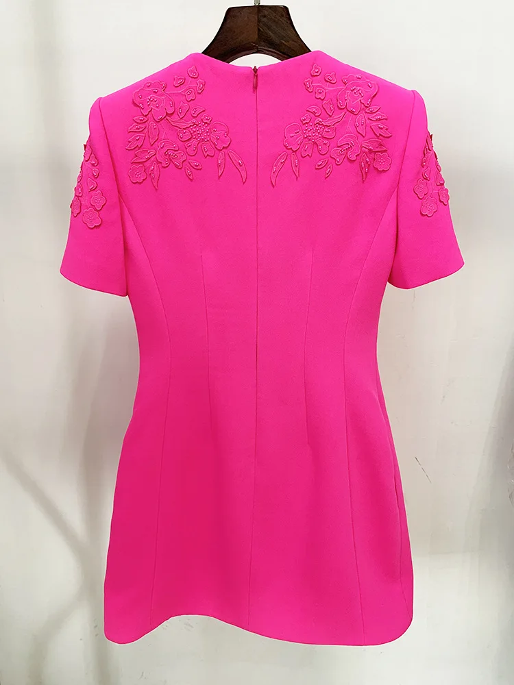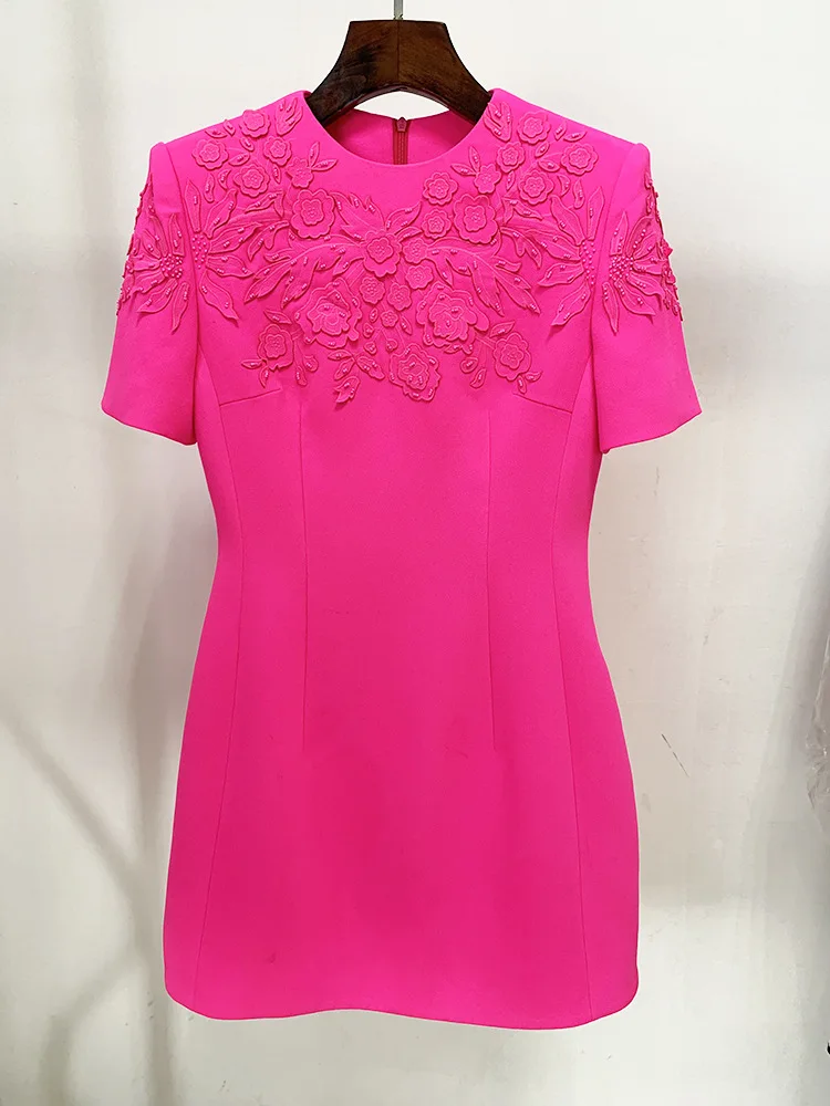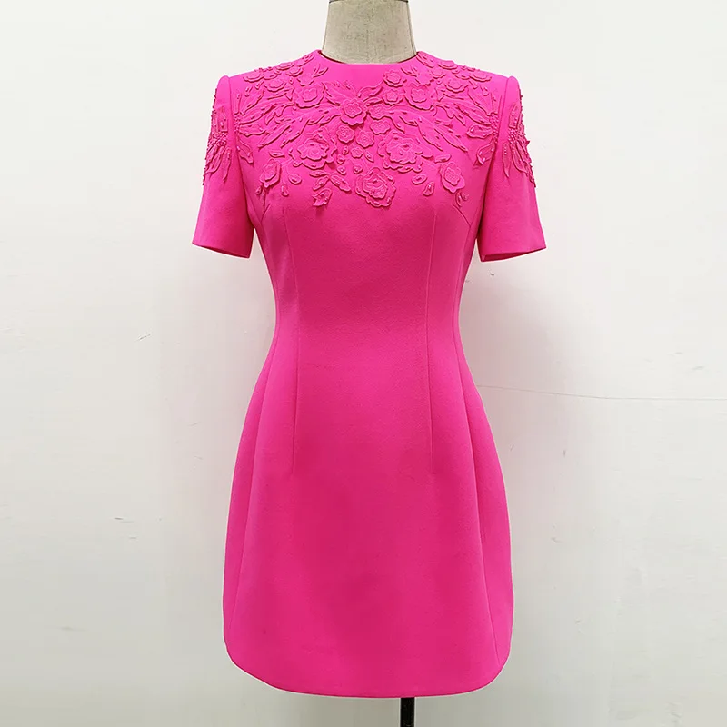 Luxury Style Beads Embroidery Office Lady Casual Wear Short Sleeve O-neckline Slim Fitted Women Mini Formal Dress