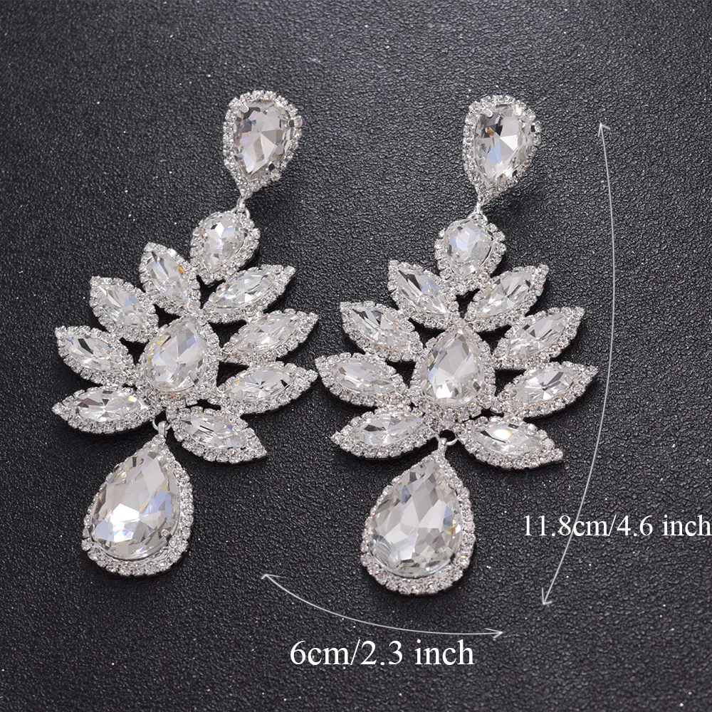 Luxury Women Crystal Large Size Drop Earrings Trendy Rhinestone Statement Earrings Jewelry Wholesale