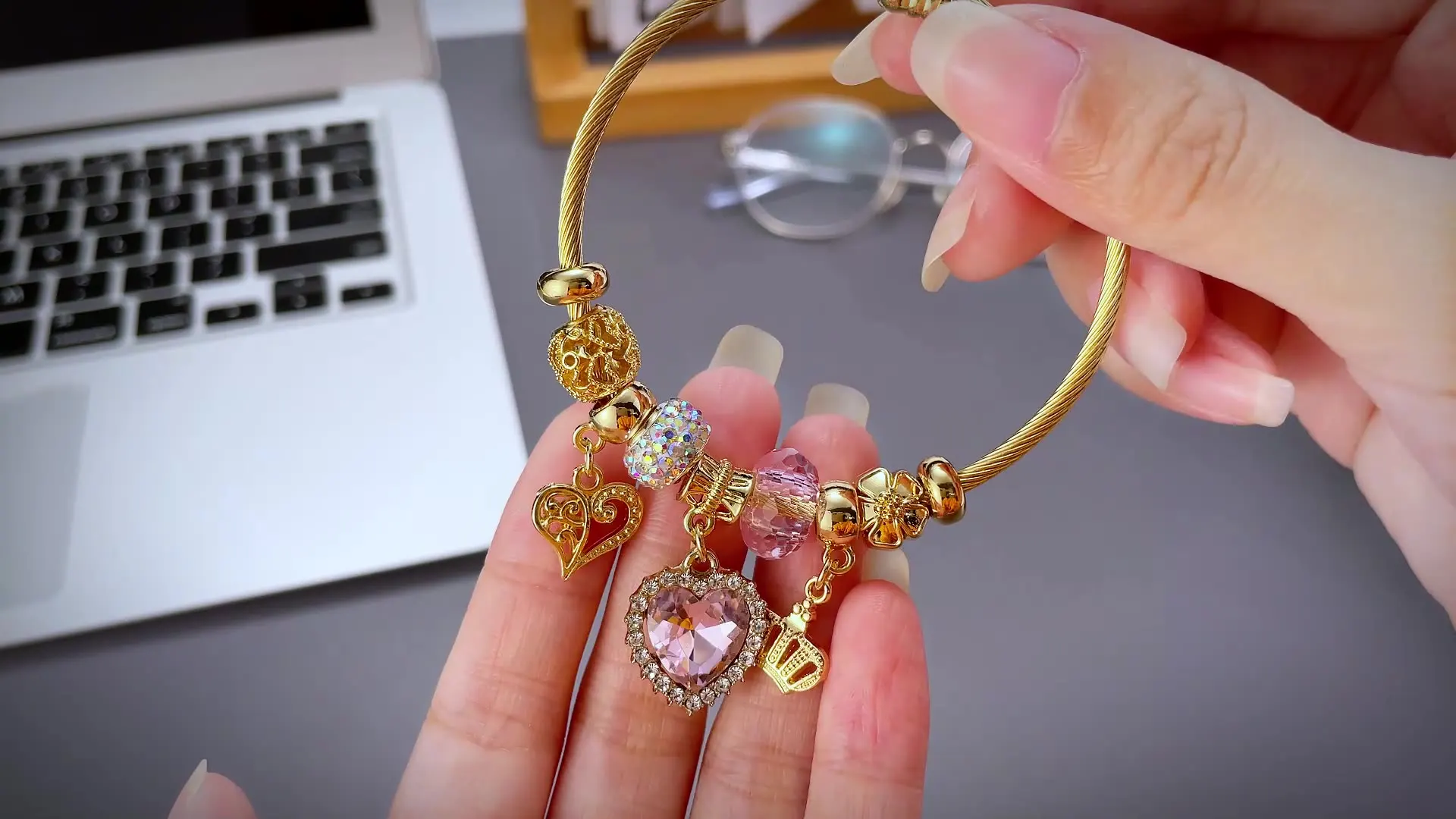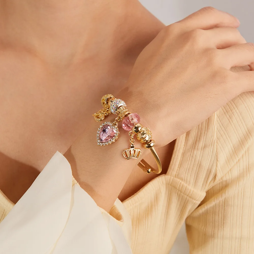 Luxury Women's Diamond Heart Bracelet Classic Gold Plated Stainless Steel Charm Bracelet for Wedding Party Fashionable Gift
