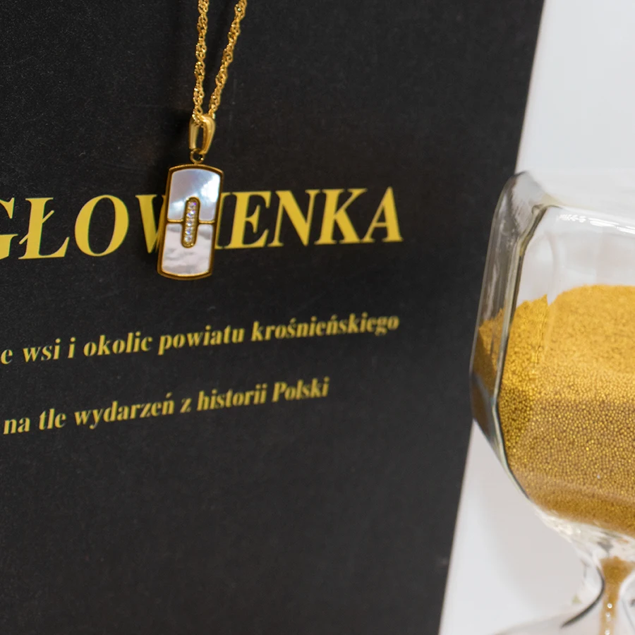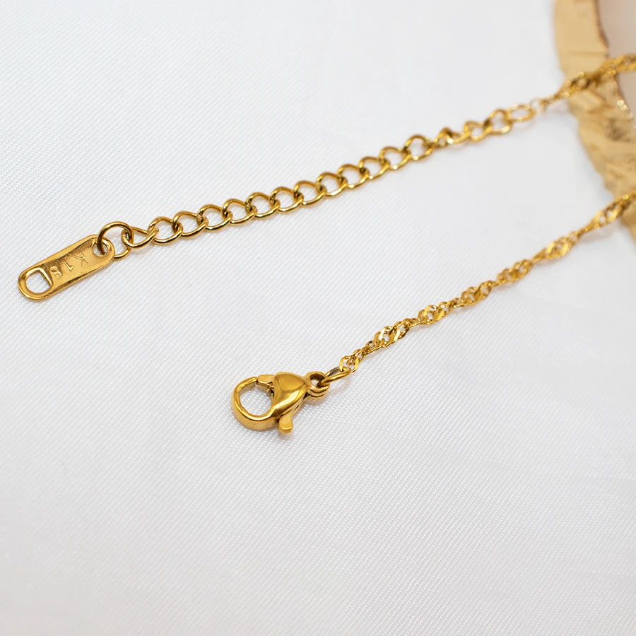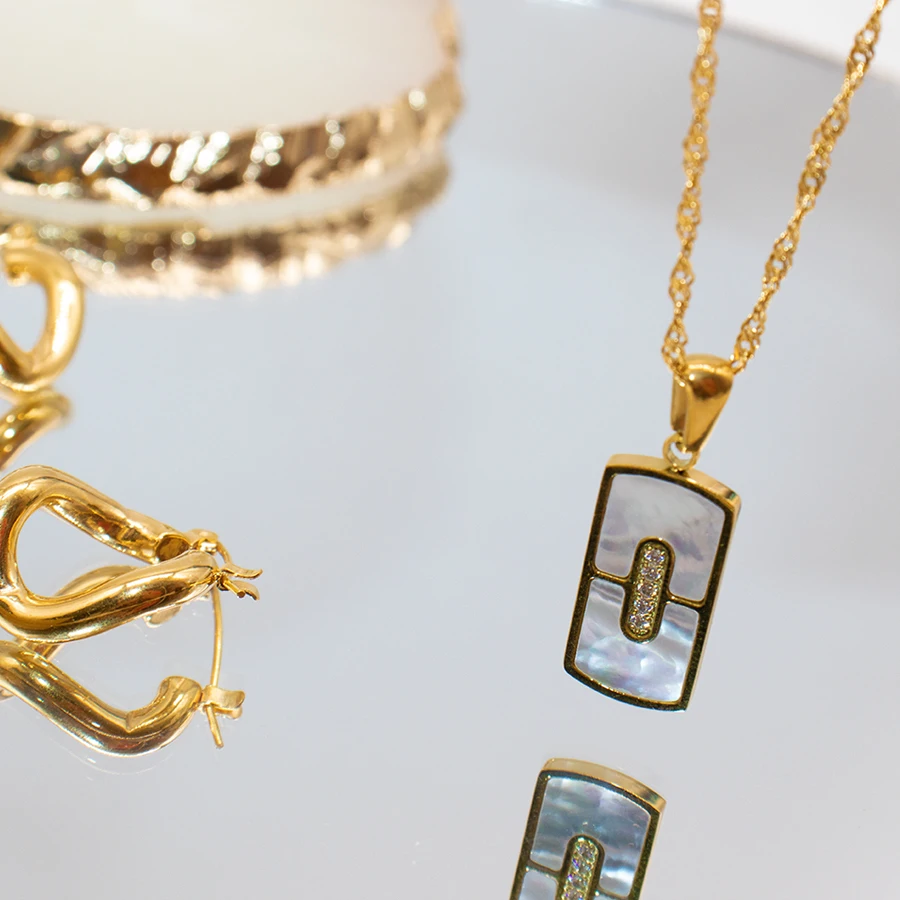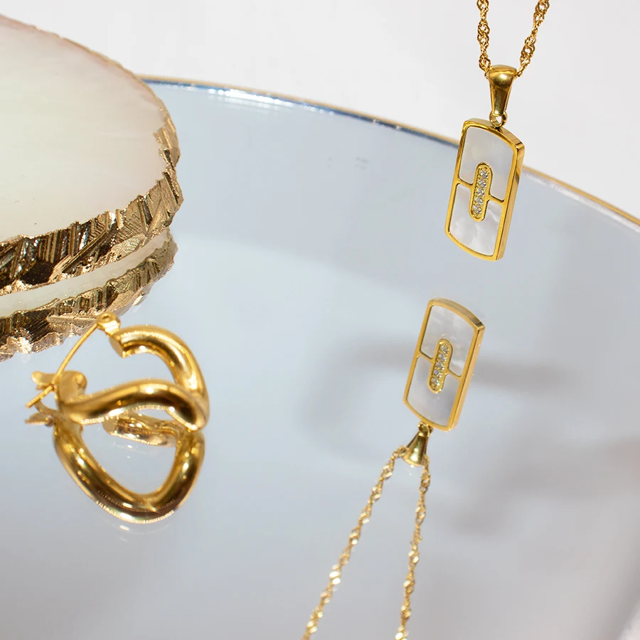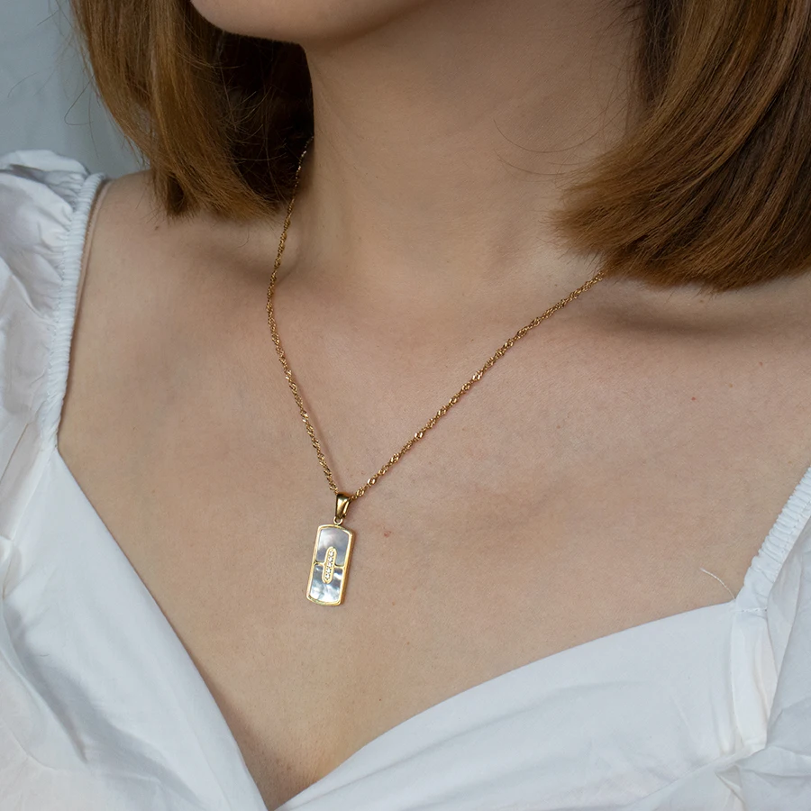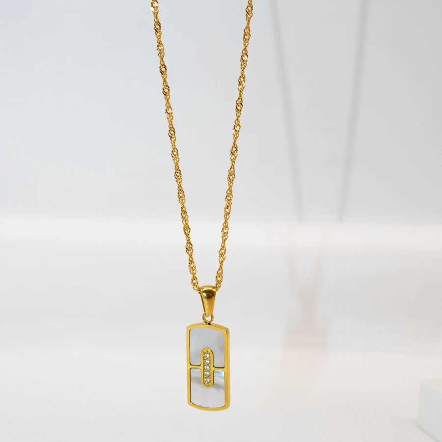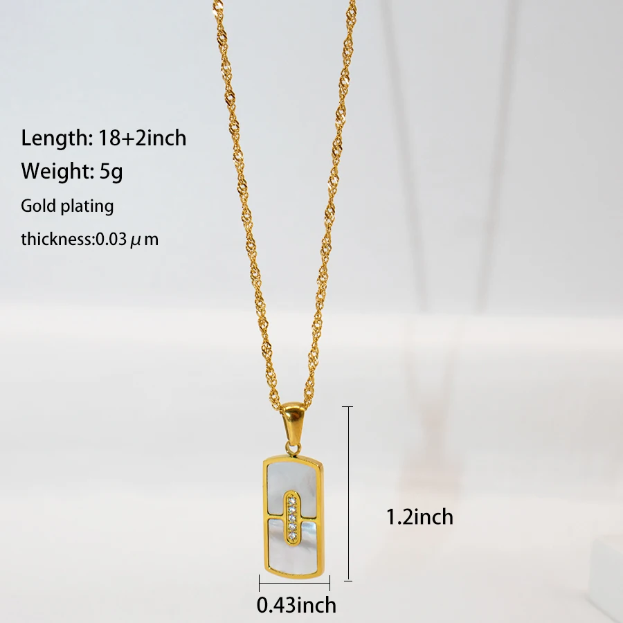 LWN41140 Fashion Zircon Paved Rectangle Mother Of Shell Pendant Versatile 18k Gold Plated Stainless Steel Long Necklace