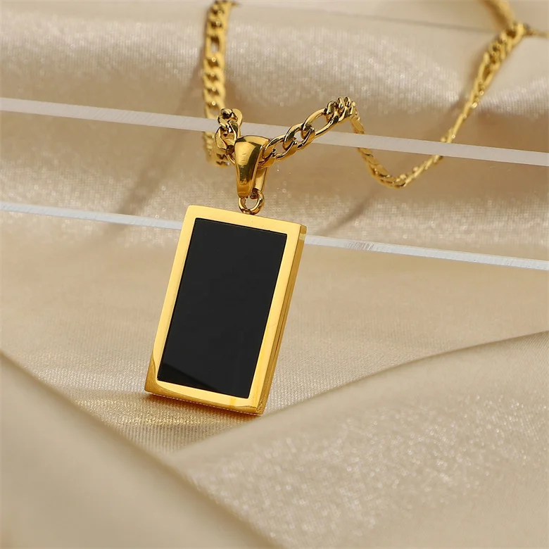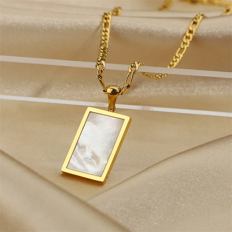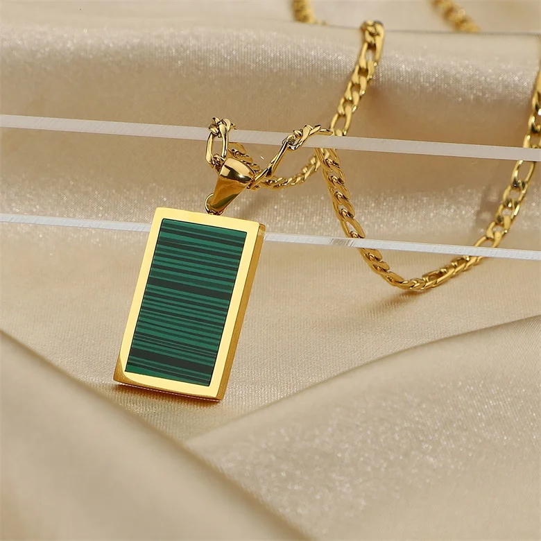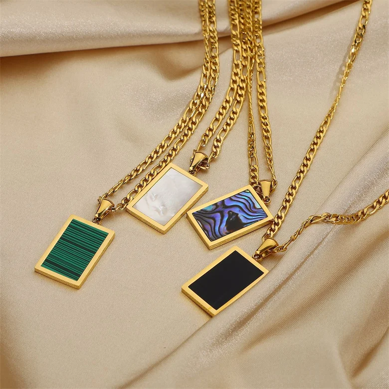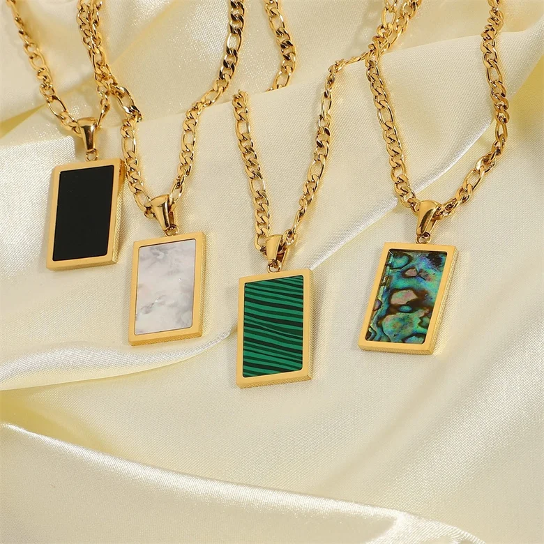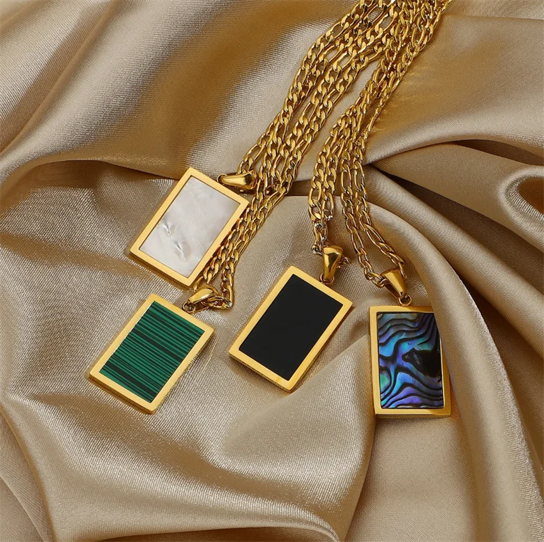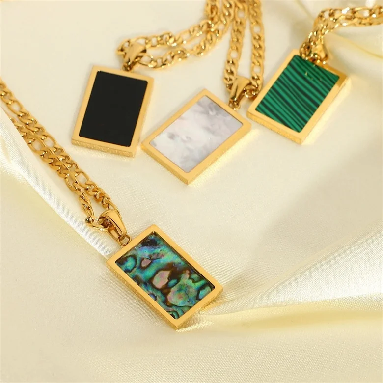 LWN41163 Dropshipping Rectangle Abalone Malachite Onyx Mother Of Shell Pendant Willow Gold Plated Stainless Chain Necklace
