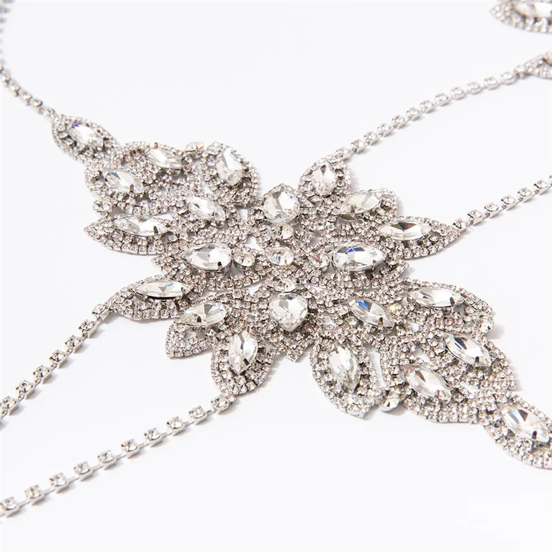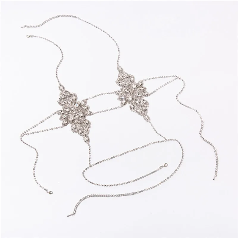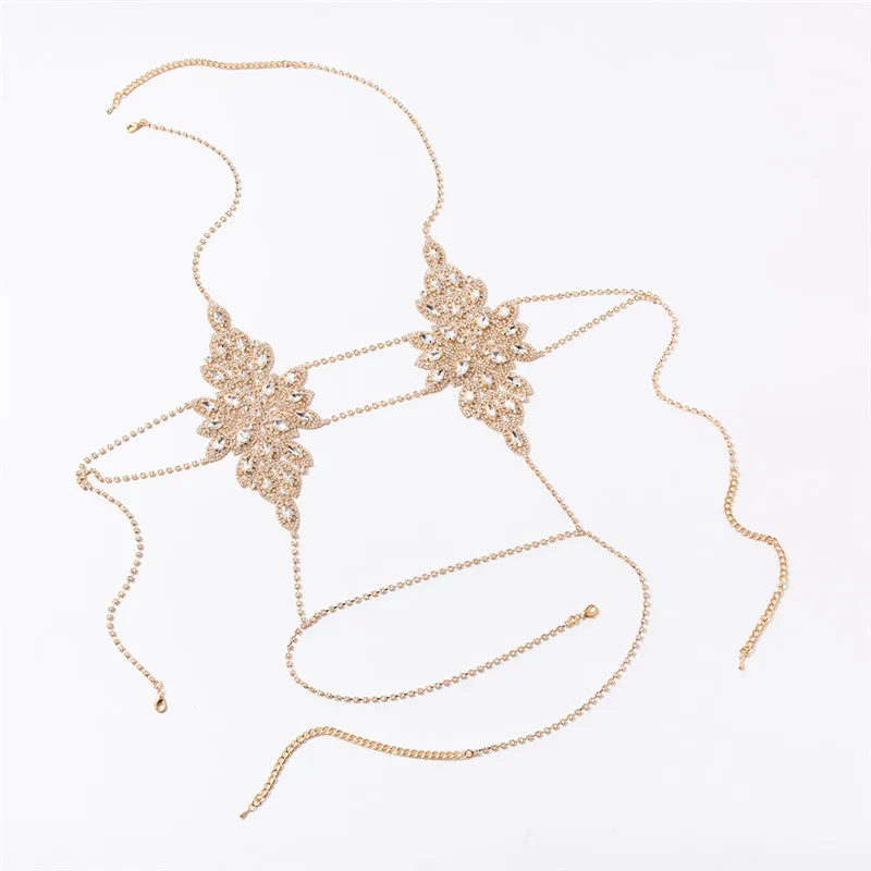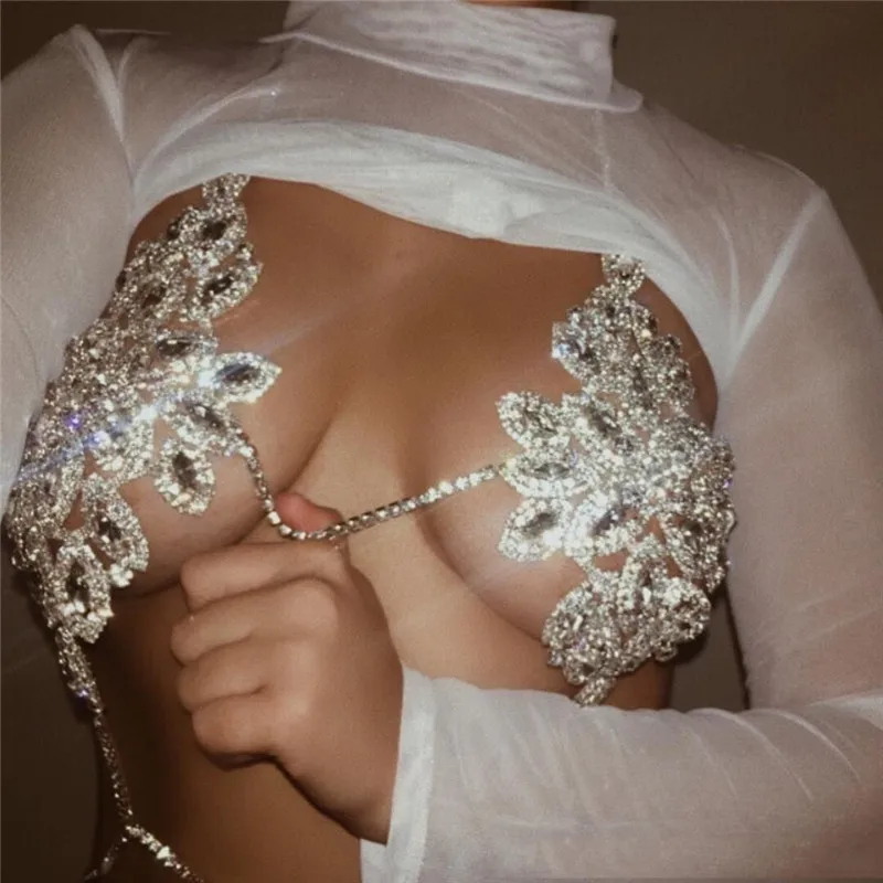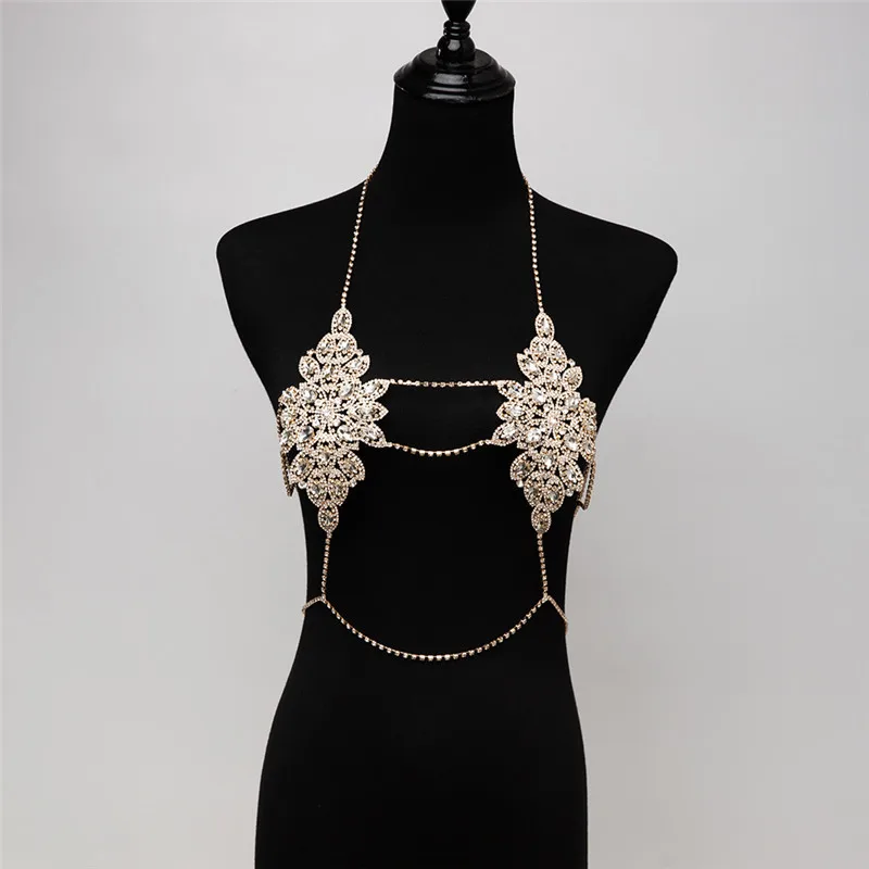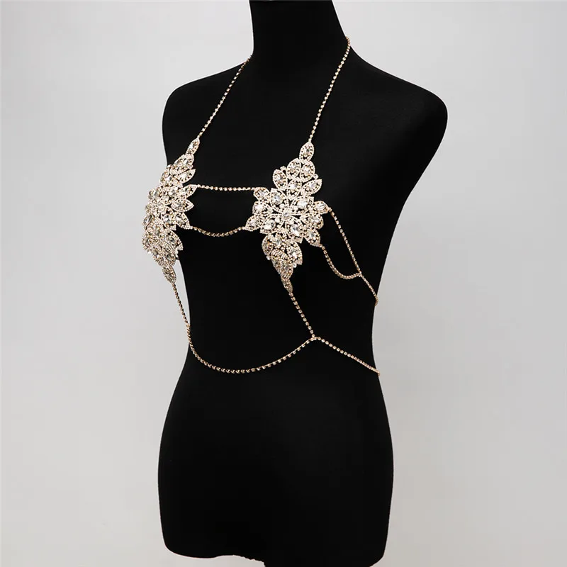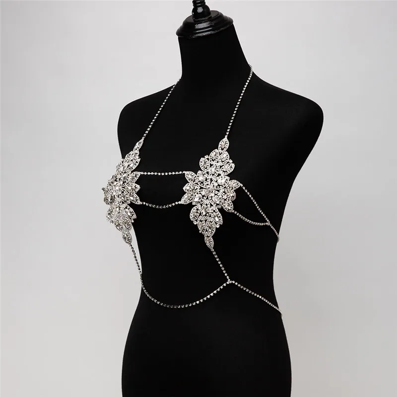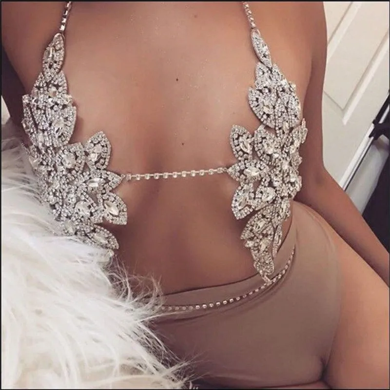 LWZ30106 Women Rhinestone Sexy lingerie Body Chain Bra Jewelry Party Night Club Shiny Diamond Metal Backless Halter Bralette Top