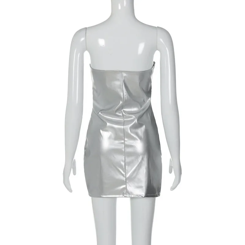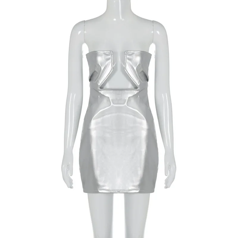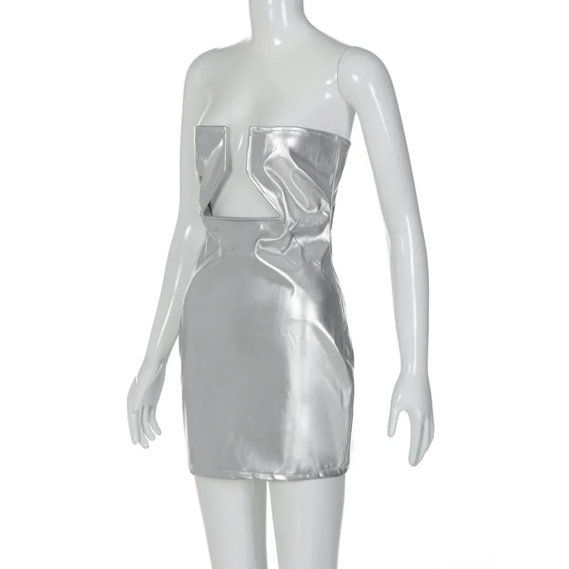 Lygens 10355 Hollow Out Pu Leather Sleeveless Sexy Mini Bodycon Solid Women Dress Fall Evening Prom Party American Clothing