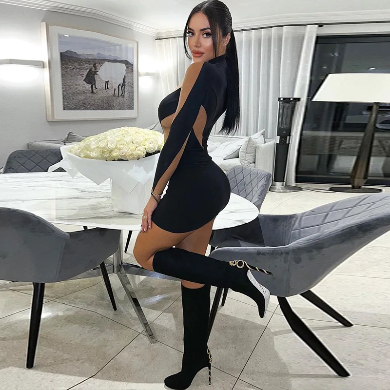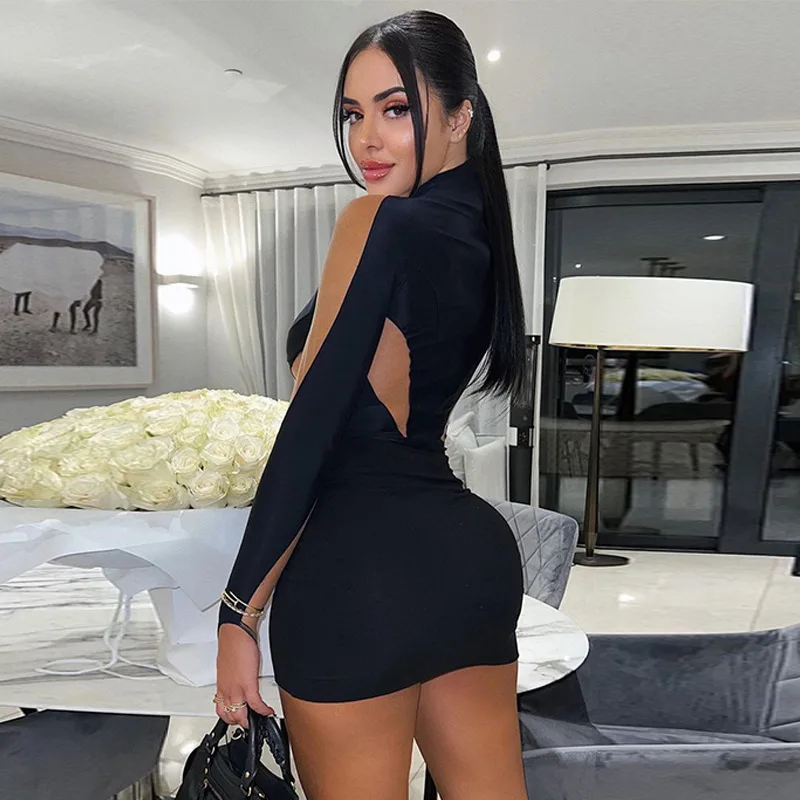 Lygens 1103 Mesh Long Sleeve Hollow Out Sexy Mini Dress 2023 New Arrival Party Club Evening Womens Clothe American Wholesale