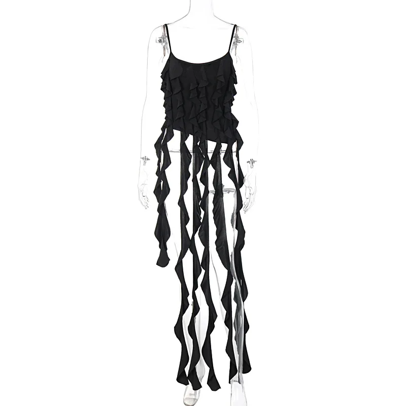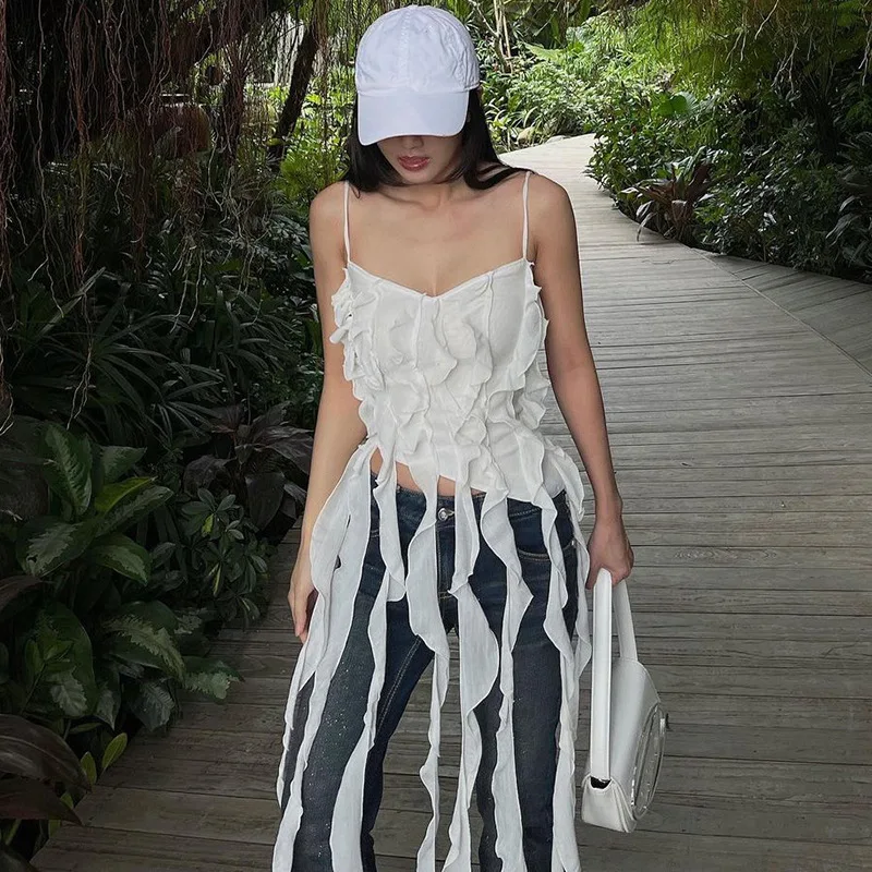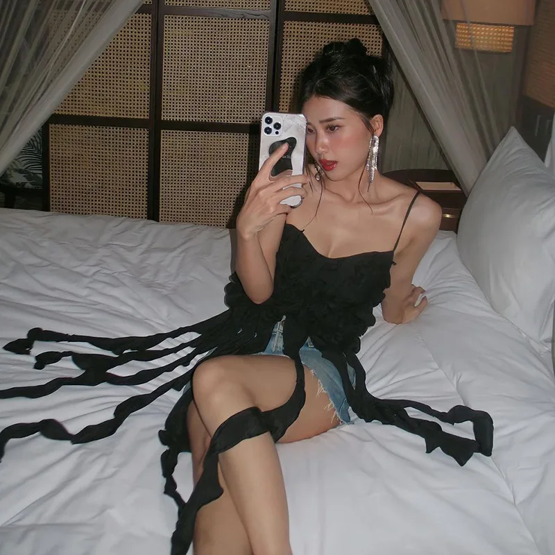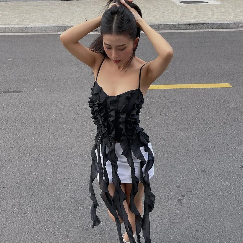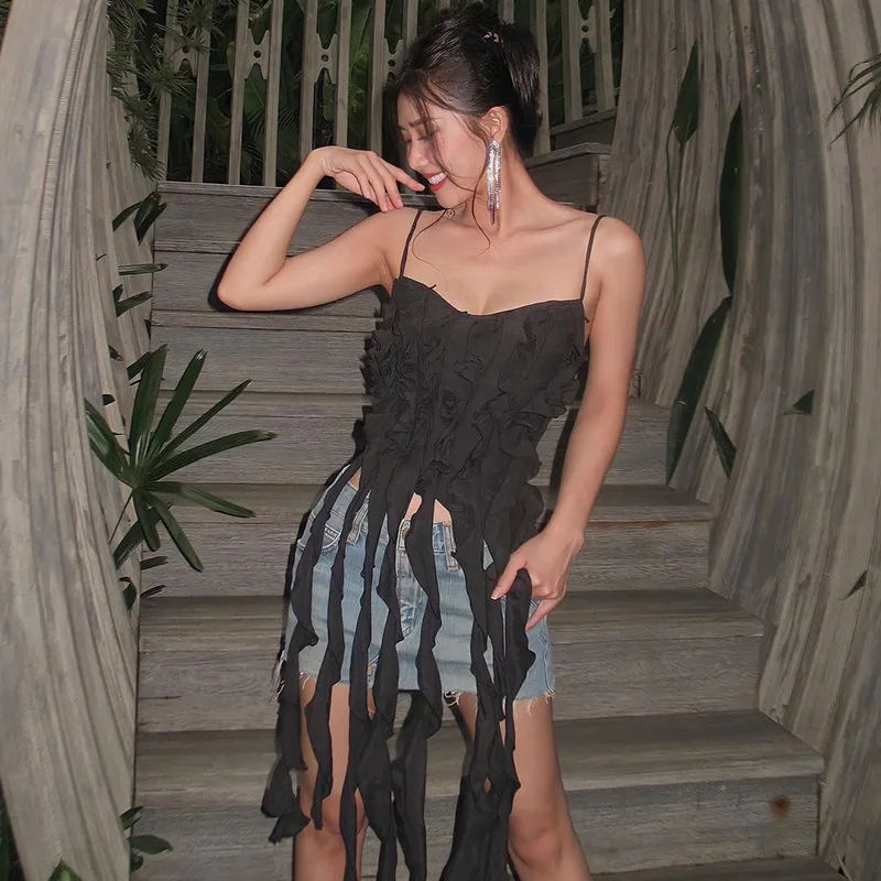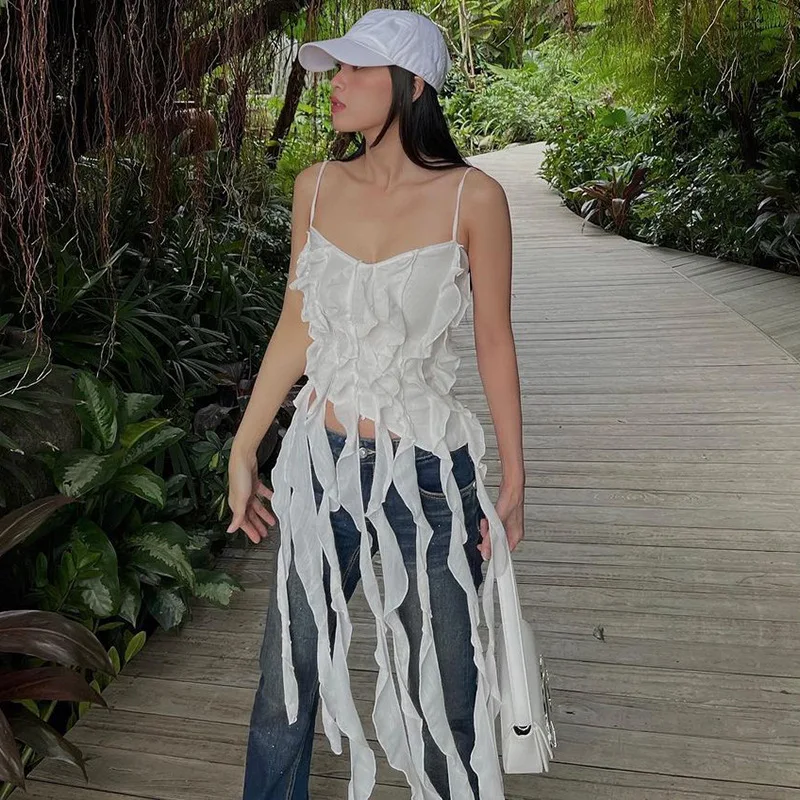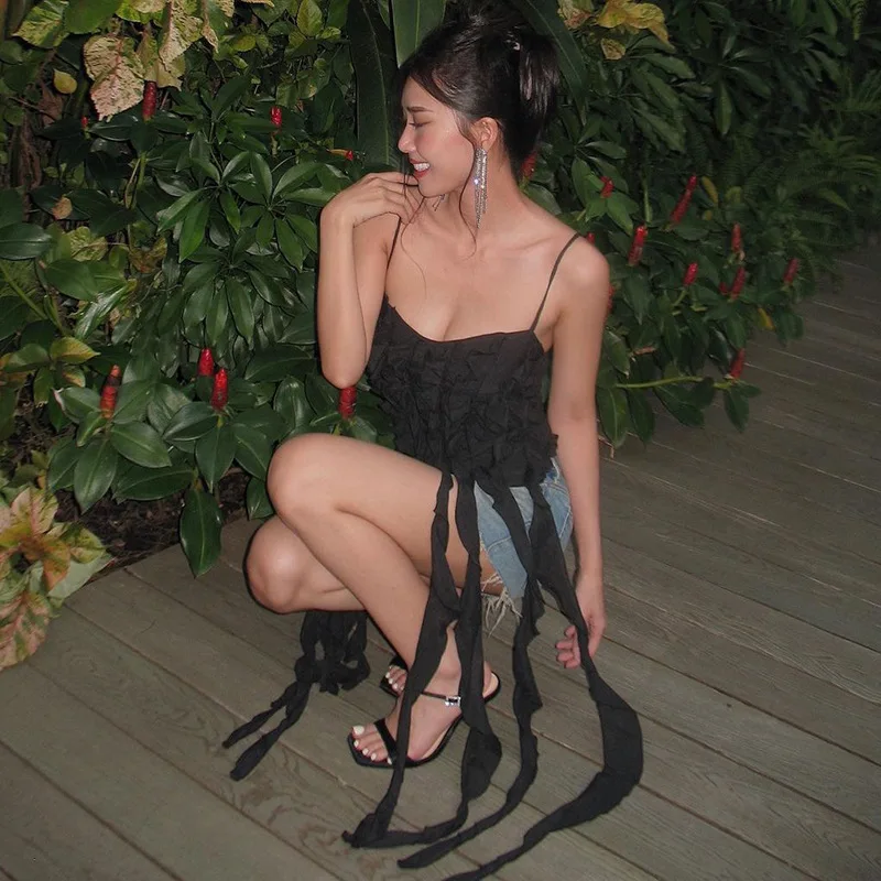 Lygens 1119 Undefined Sleeveless Lace Up Long Tassel Solid Slim Women'S T Shirt New Fashion Party Casual American Clothing