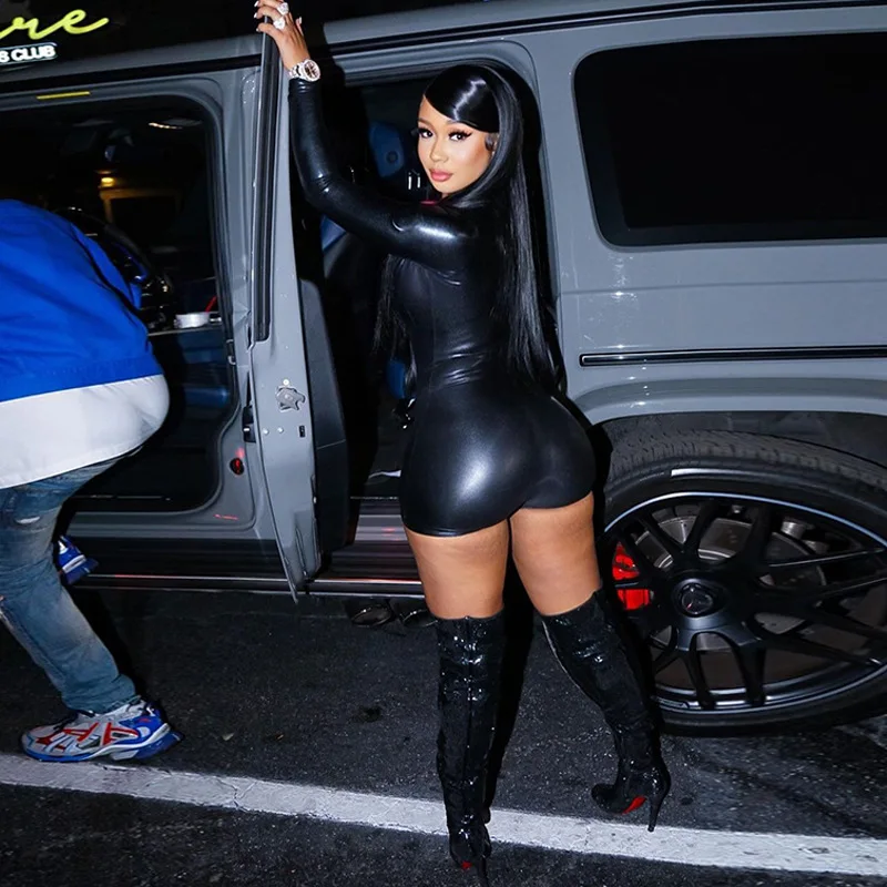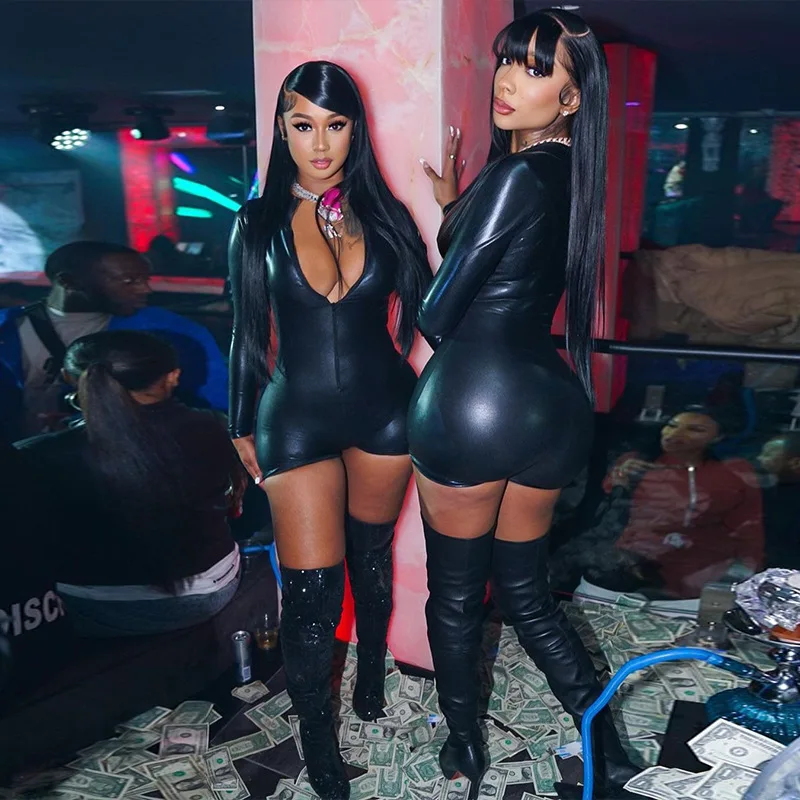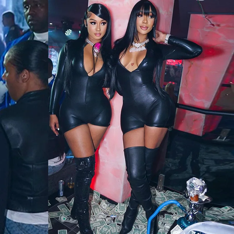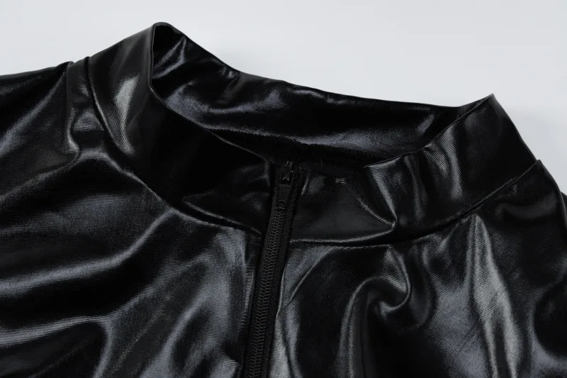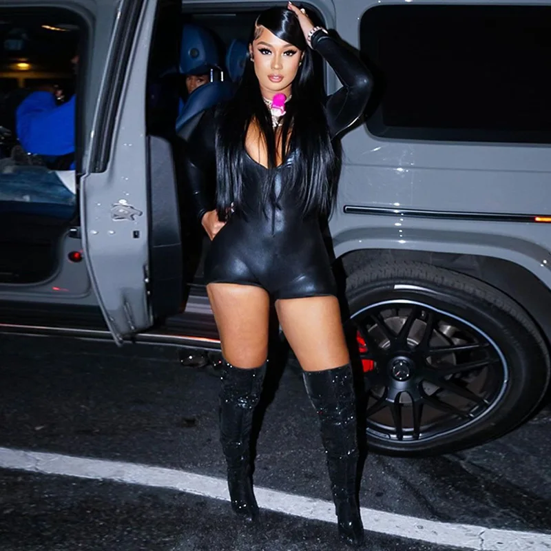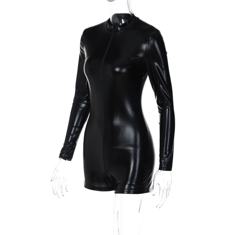 Lygens 1179 Pu Faux Leather Long Sleeve Deep V One Piece Romper 2023 New Fashion Party Club Evening Casual Jumpsuits Clothing