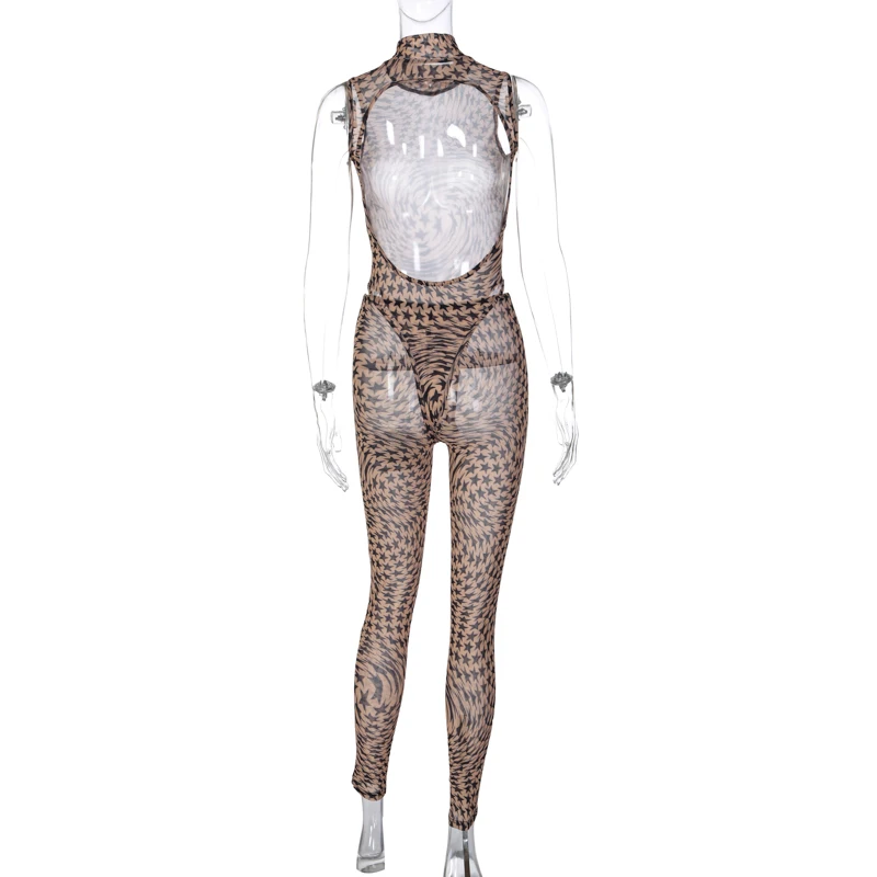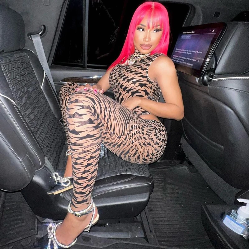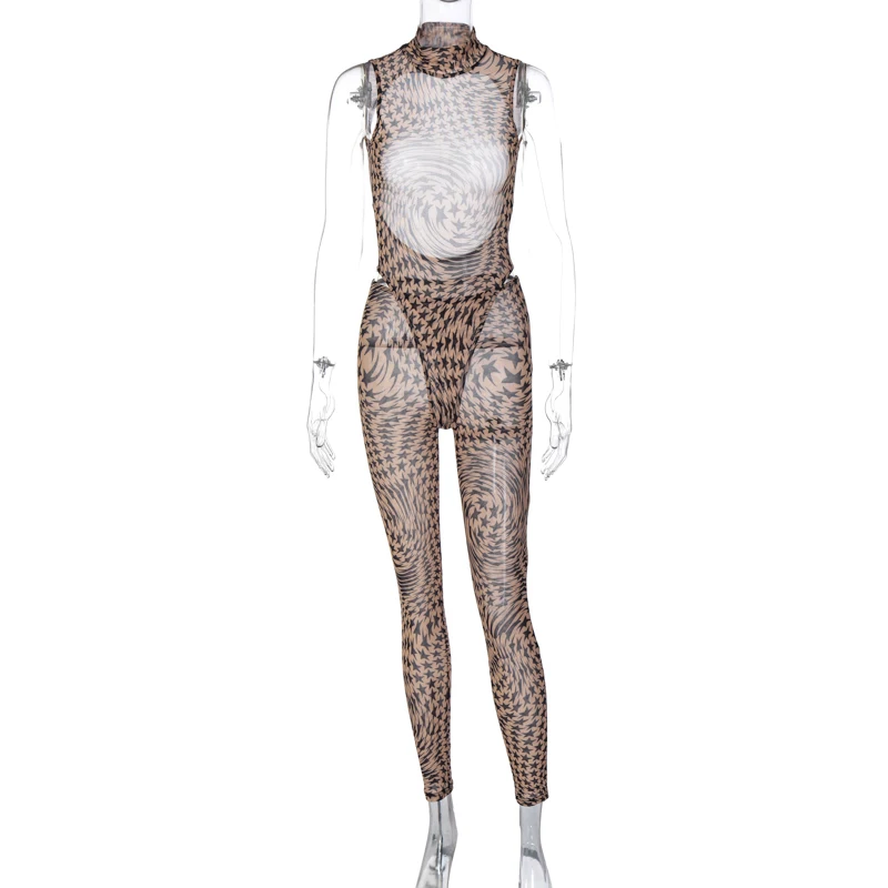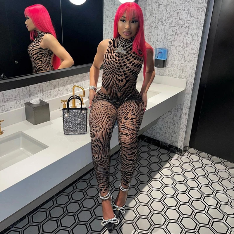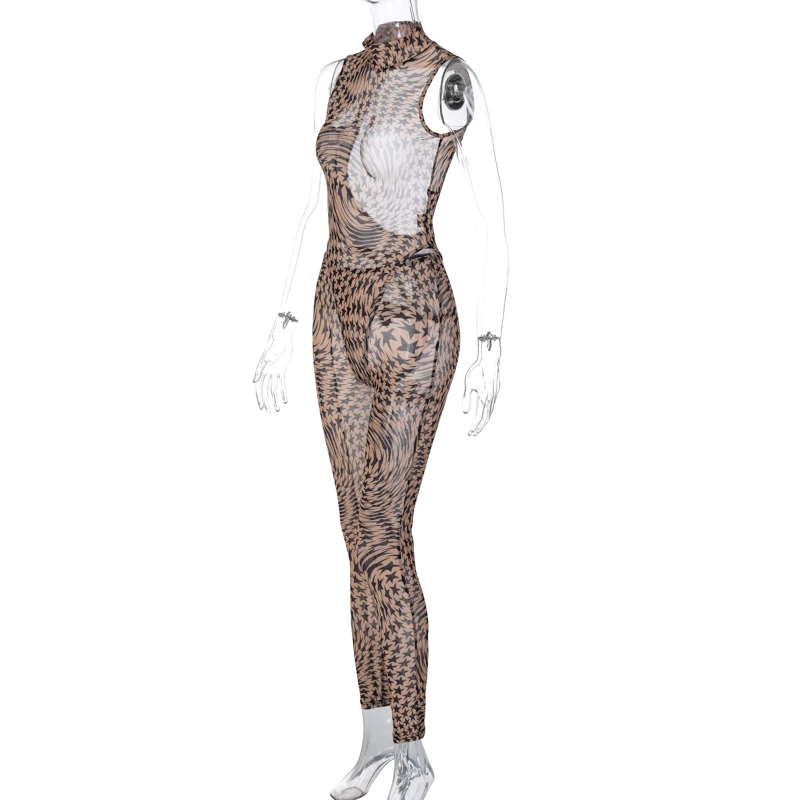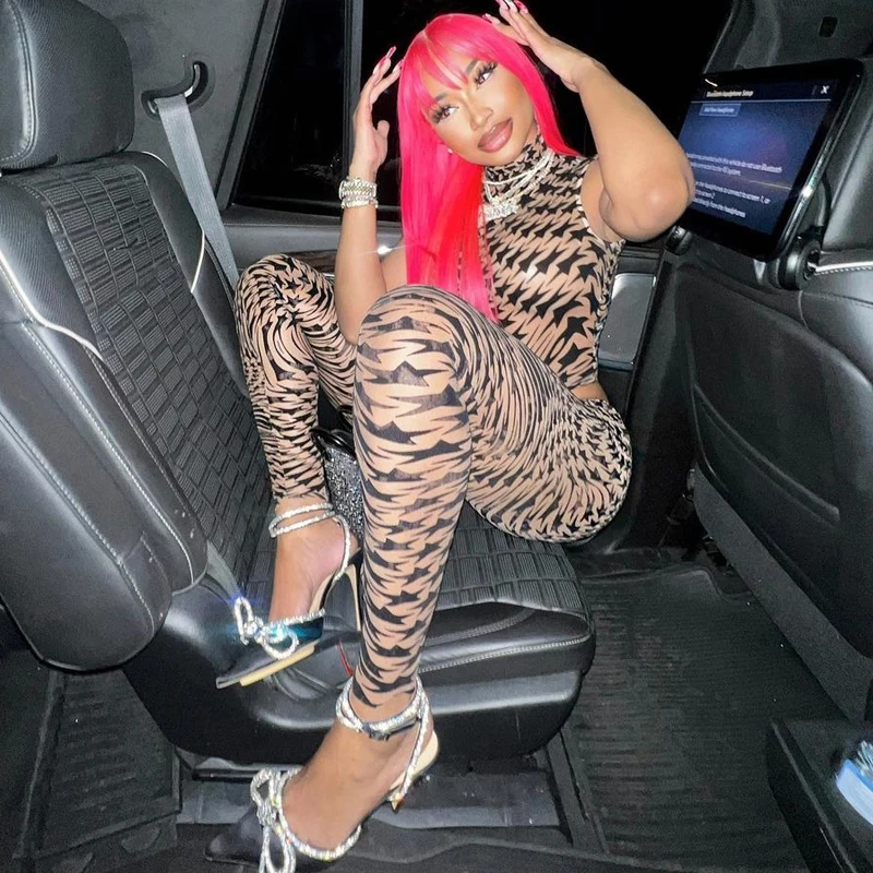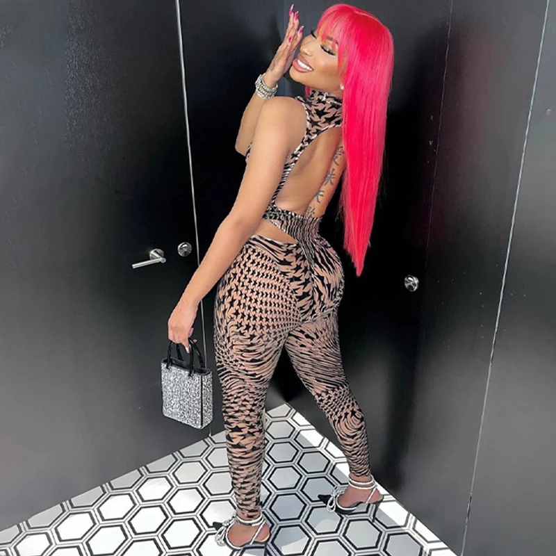 Lygens 1218 Y2K Tiger Tie Dye Print Backless Sleeveless One Piece Bodysuit Pants Women'S Sets Summer Party Casual Women Outfit