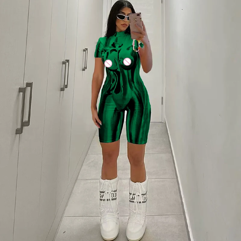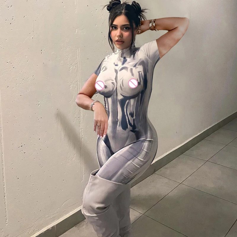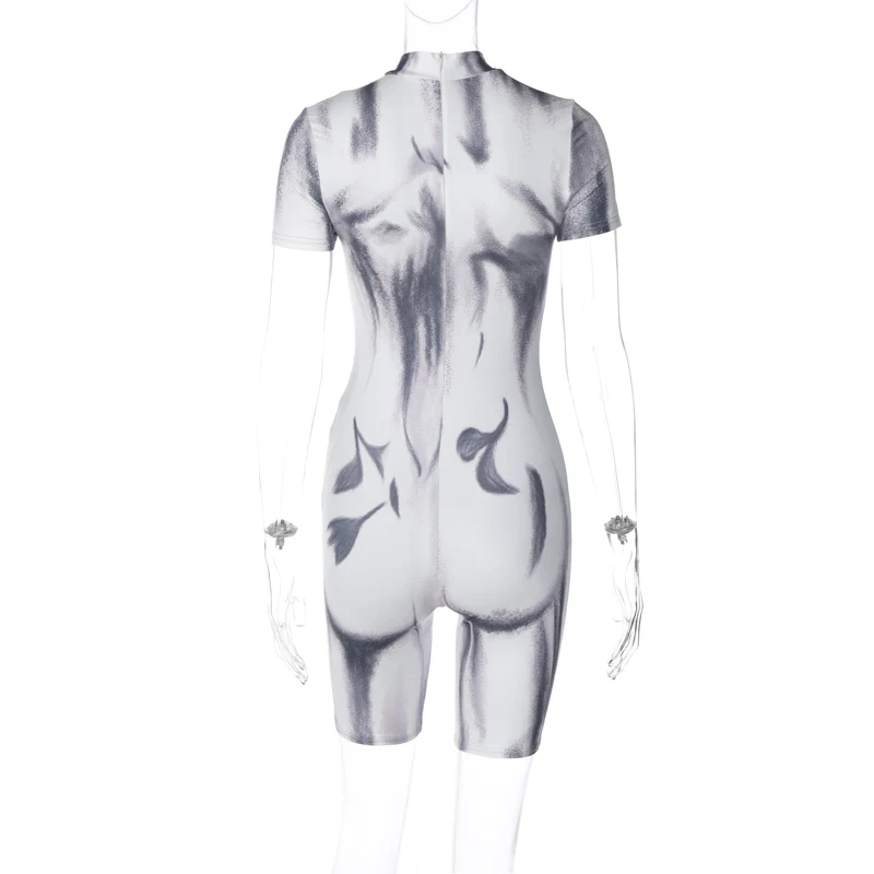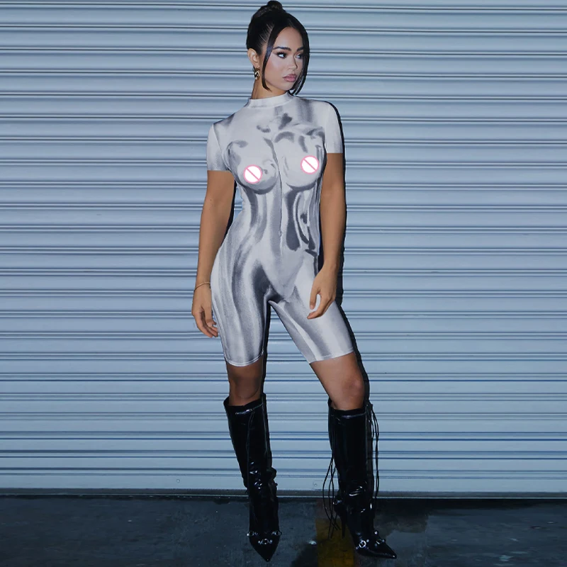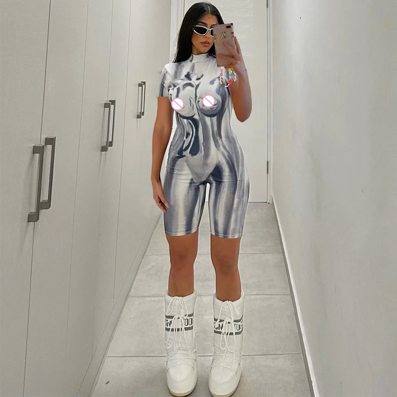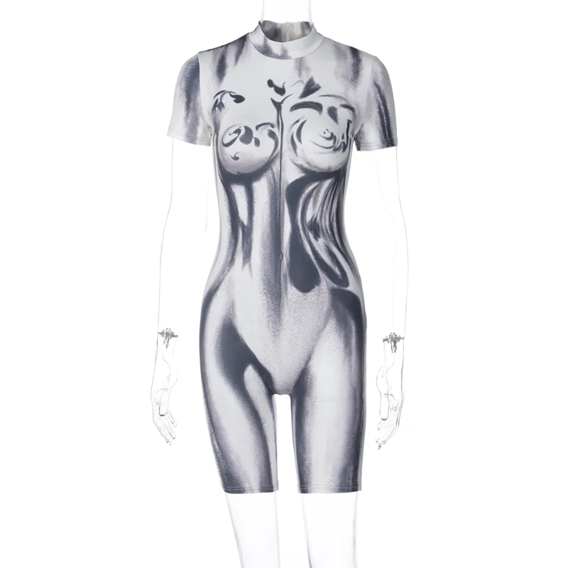 Lygens 2175 Tie Dye Print Stretchy Short Sleeve One Piece Rompers 2023 Summer Casual Streetwear Club Jumpsuits Women Clothes