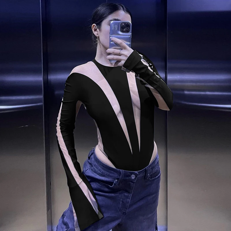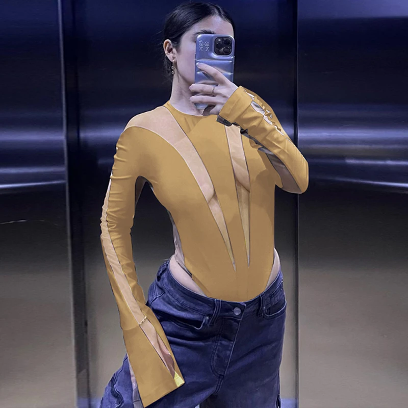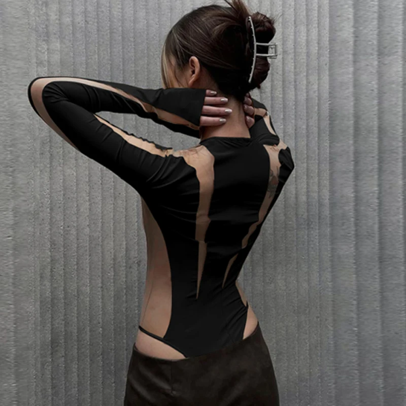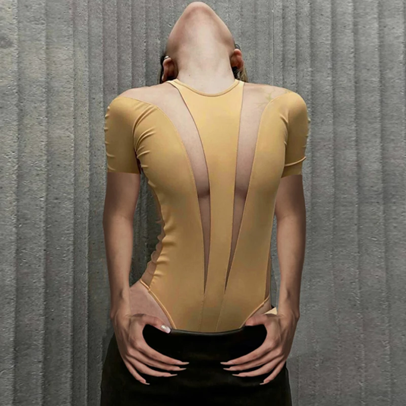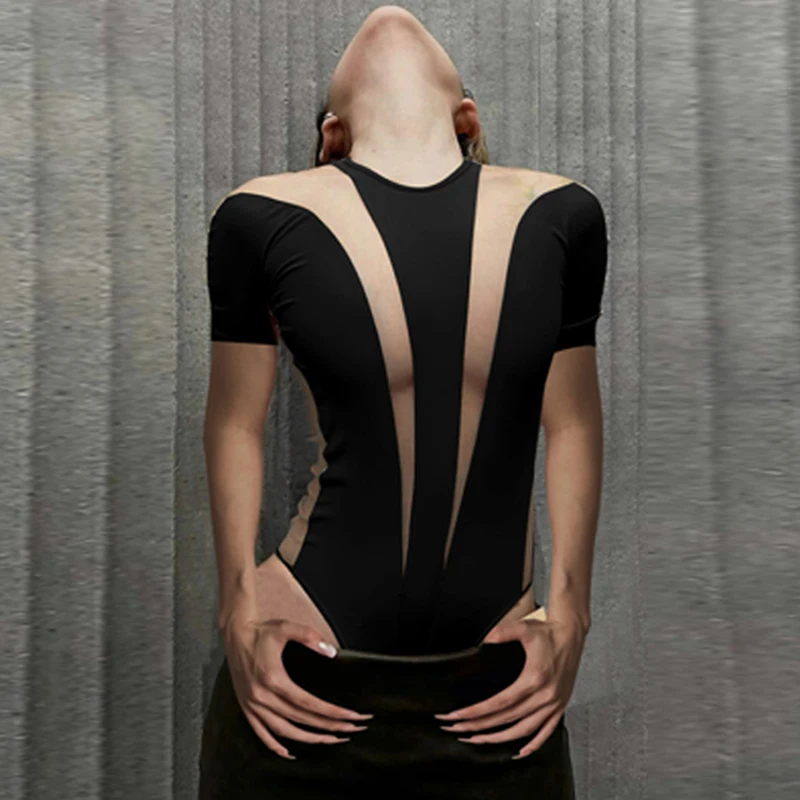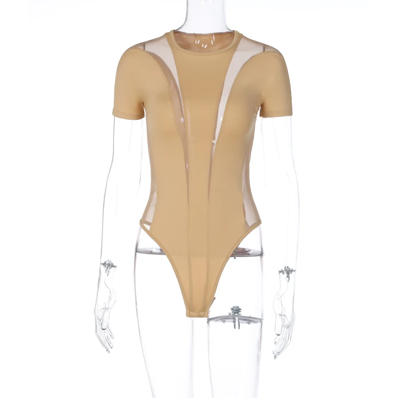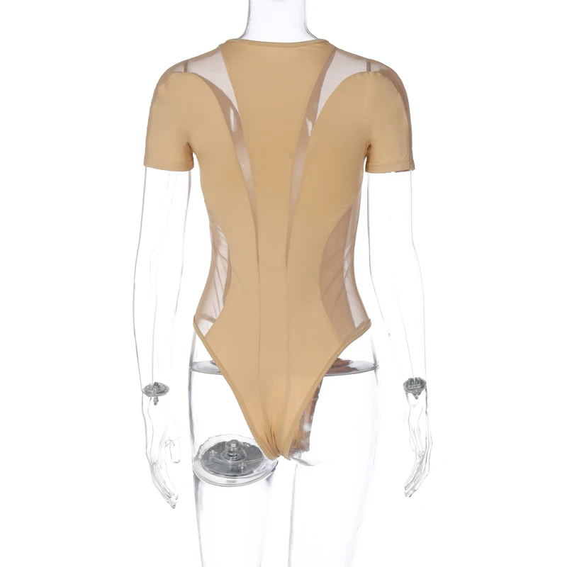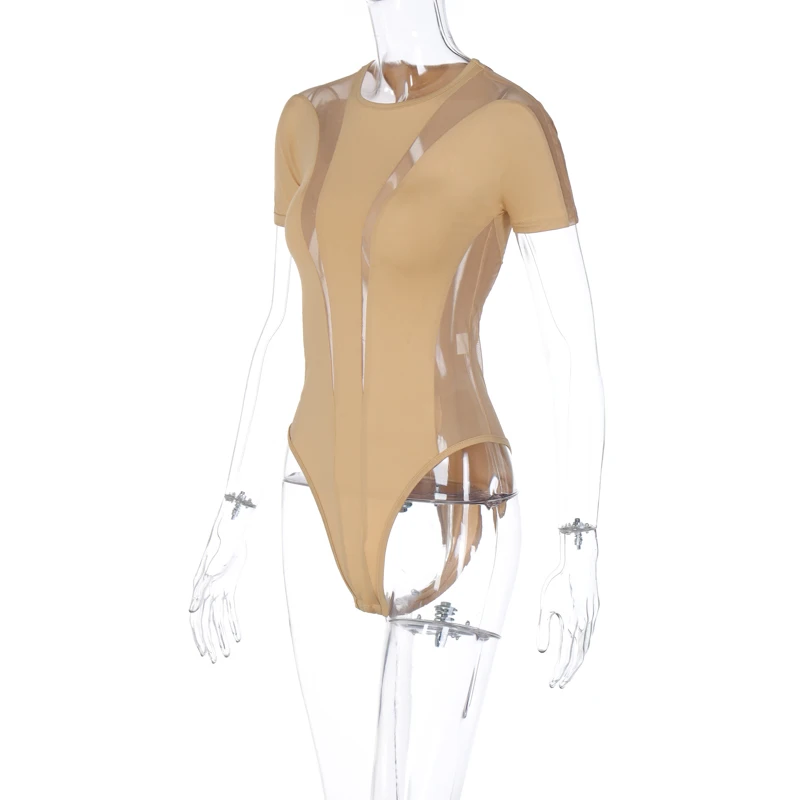 Lygens 2356 Mesh Thin Spliced Short Sleeve One Piece Bodysuit Gym Casual 2023 Siummer New Jumpsuit Rompers Lady Women'S Clothes