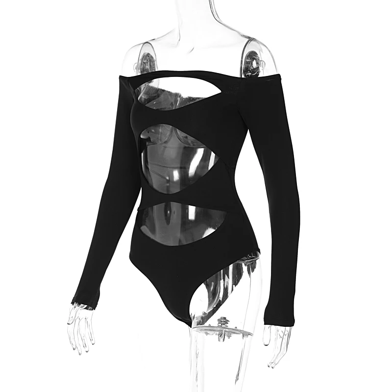 Lygens 2730 Off The Shoulder Solid Hollow Out One Piece Bodysuit Jumopsuit 2023 Summer Casual Y2K Sportsuit American Clothing