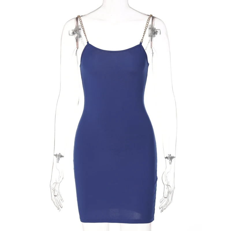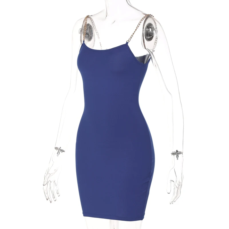 Lygens 8039 Chain Strap Solid Sexy Y2K Summer 2022 Mini Dress Women Sleeveless Fashion Elegant Apparel Wholesale Clothing