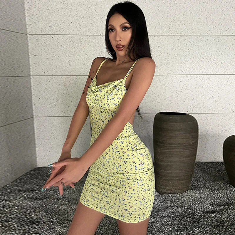 Lygens 9871 Backless Floral Print Bodycon Hot Mini Women'S Dresses 2022 New Fashion Fall Elegant Party Club Women'S Clothing