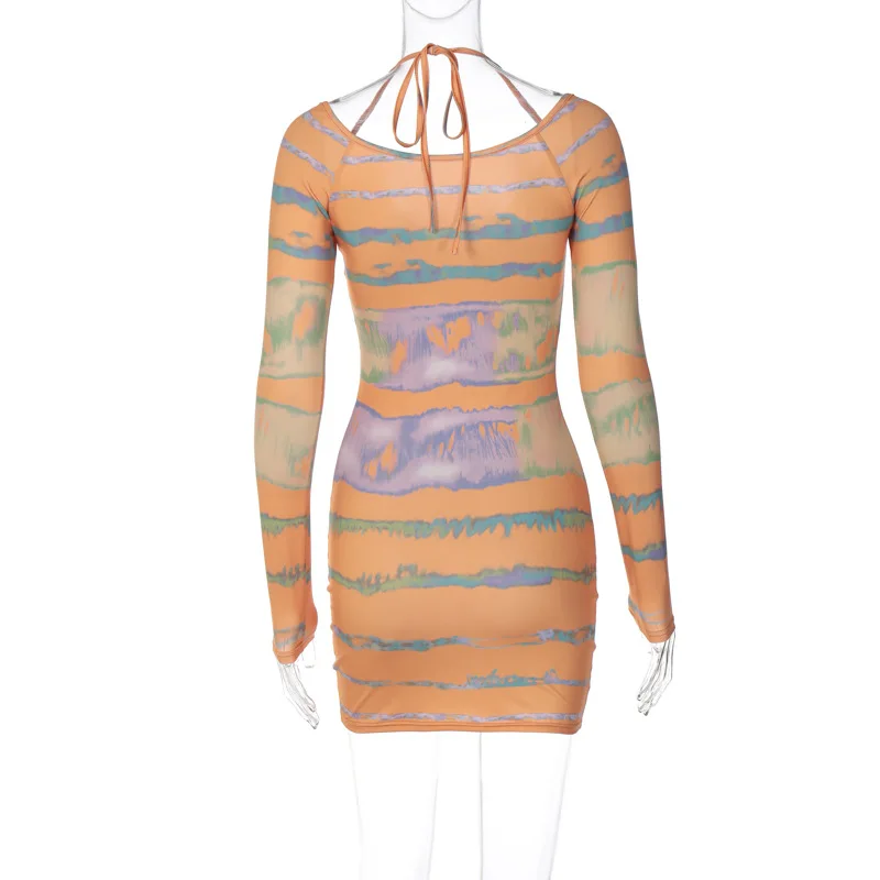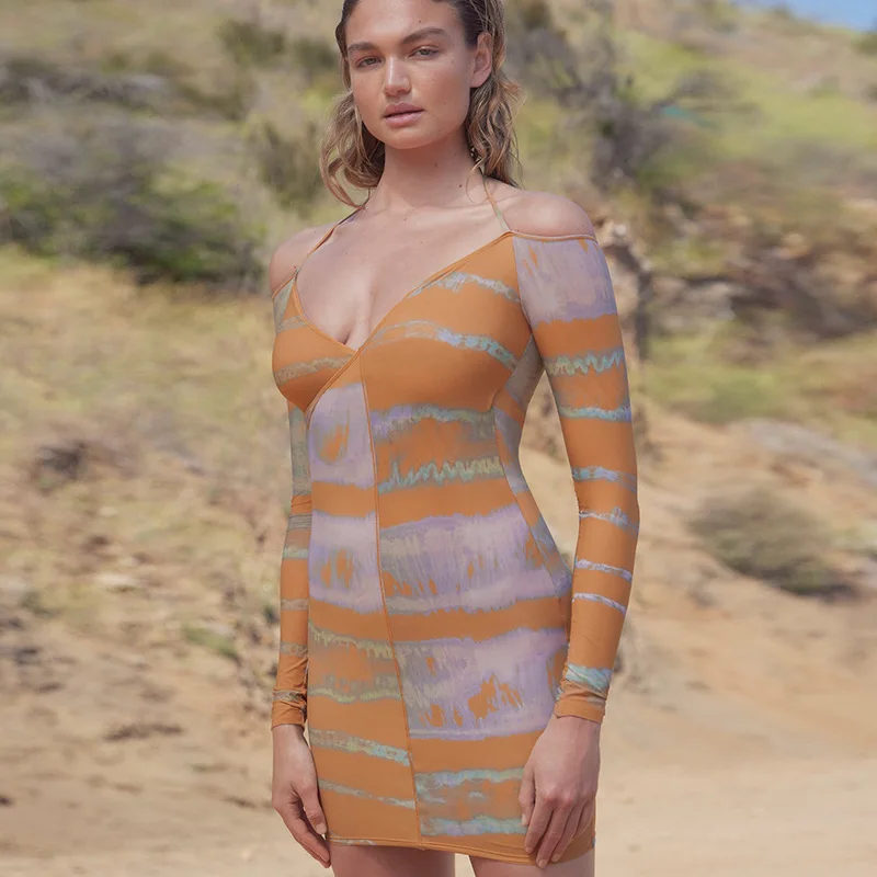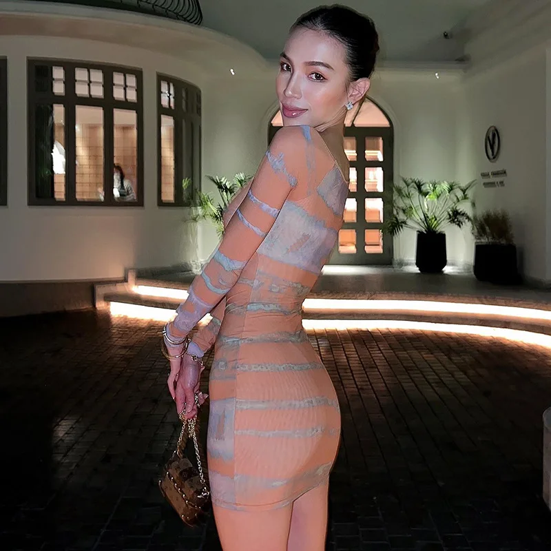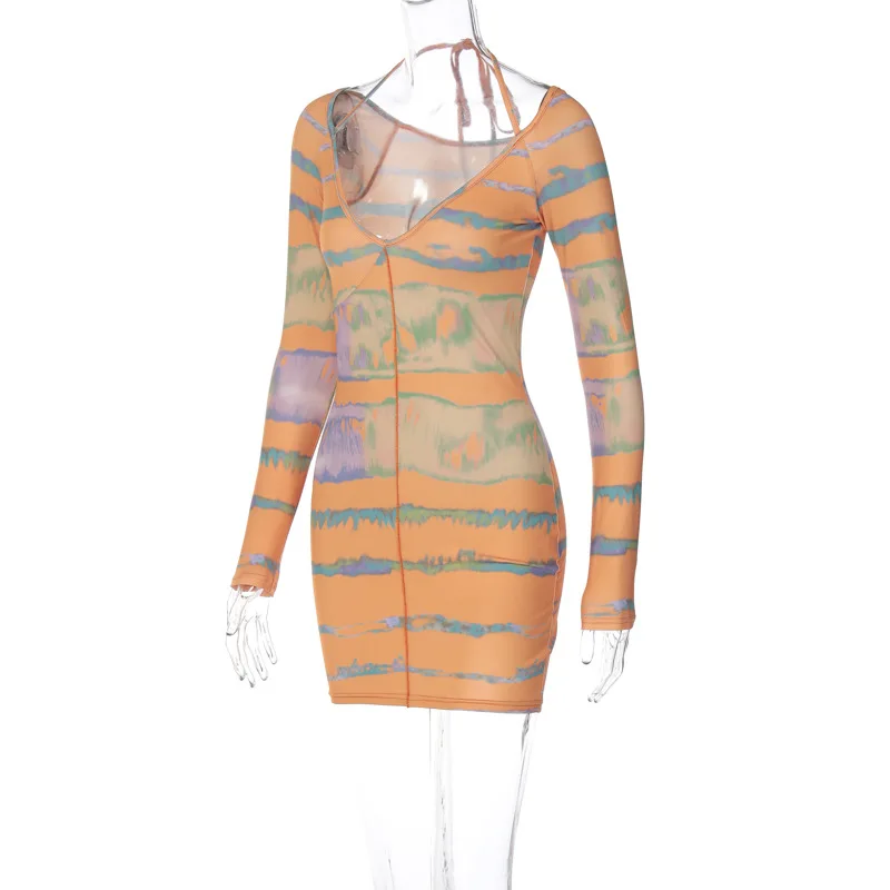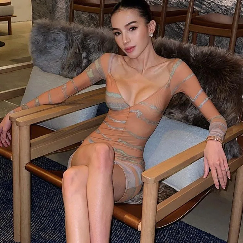 Lygens 9932 Long Sleeve V Neck Bodycon Print Sexy Women'S Dresses 2022 New Fashion Club Casual American Clothing