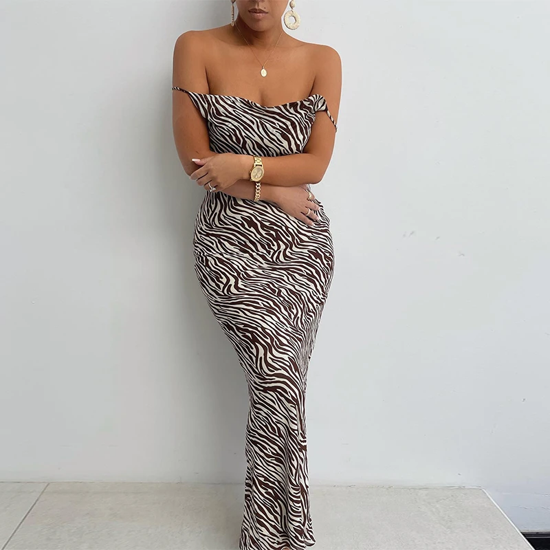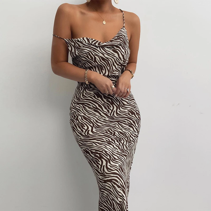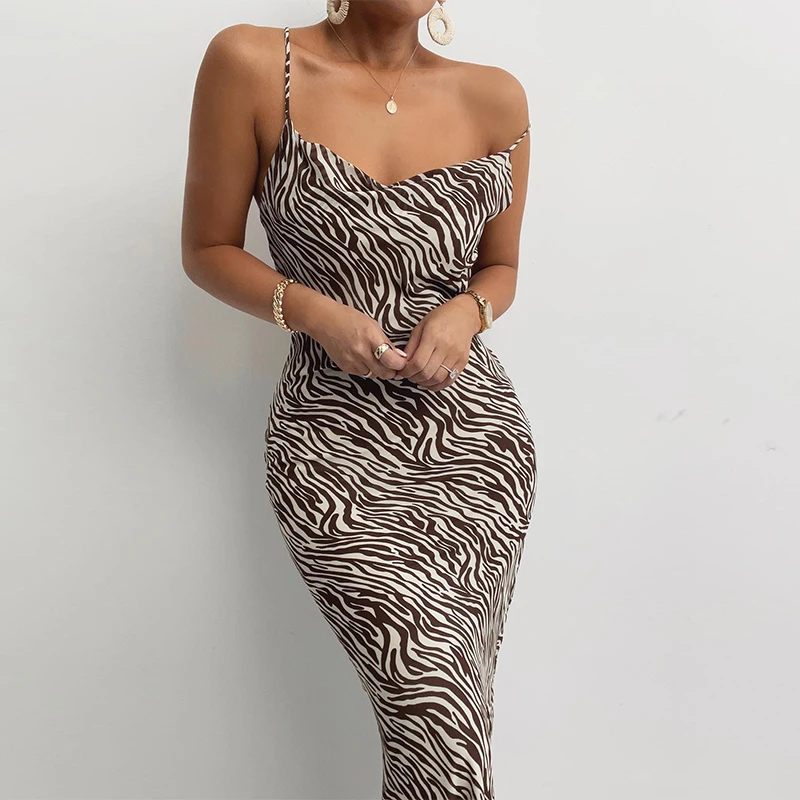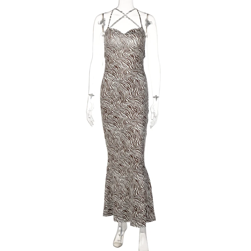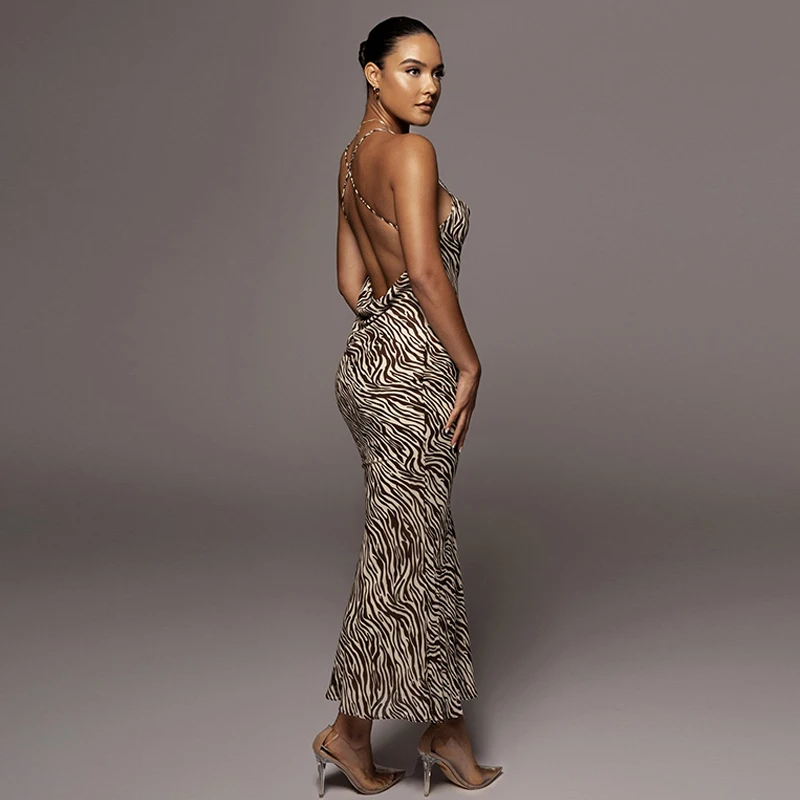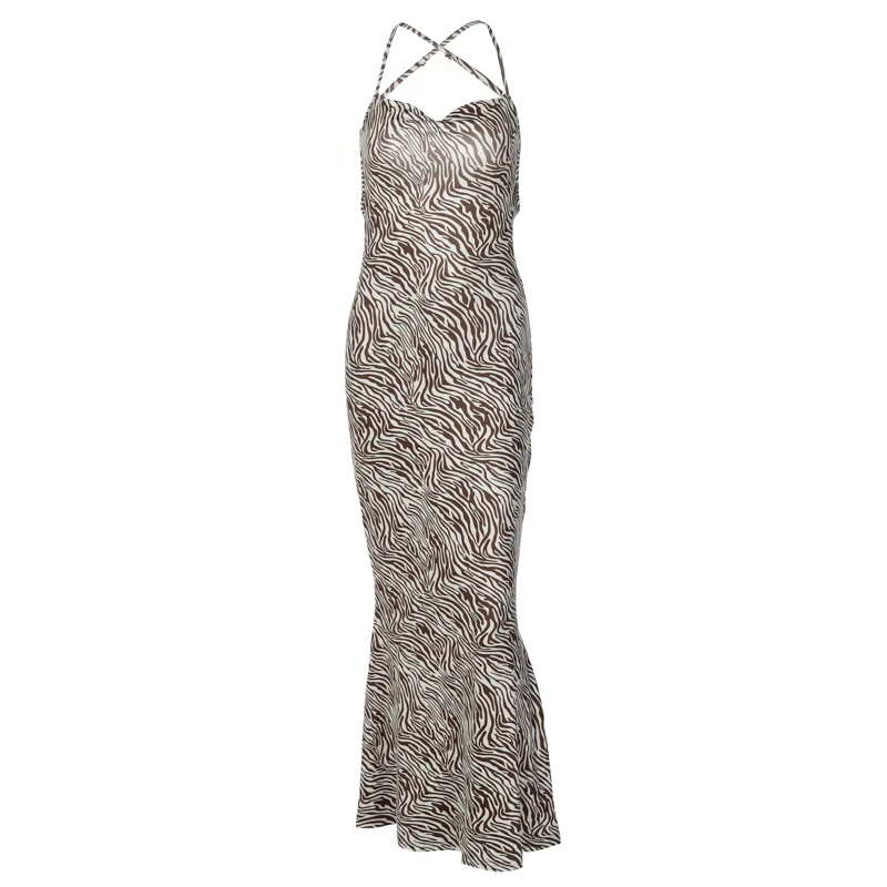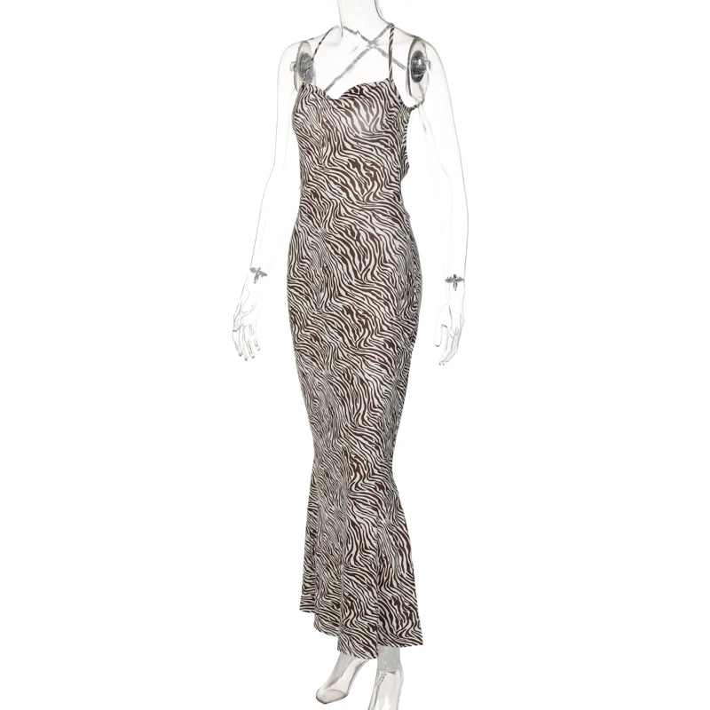 Lygens D238184G Zebra Print Swing Collar Sleeveless Sexy Maxi Prom Dress Summer Women Fashion Party Holiday Casual Outfits
