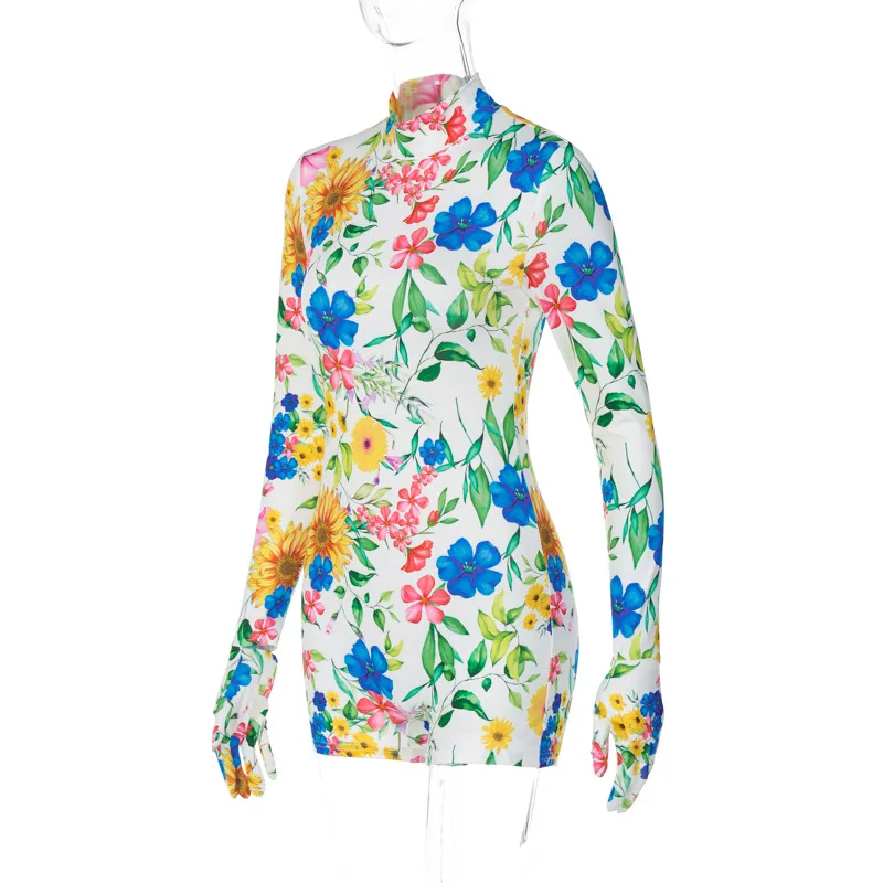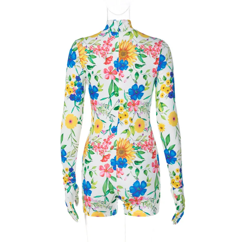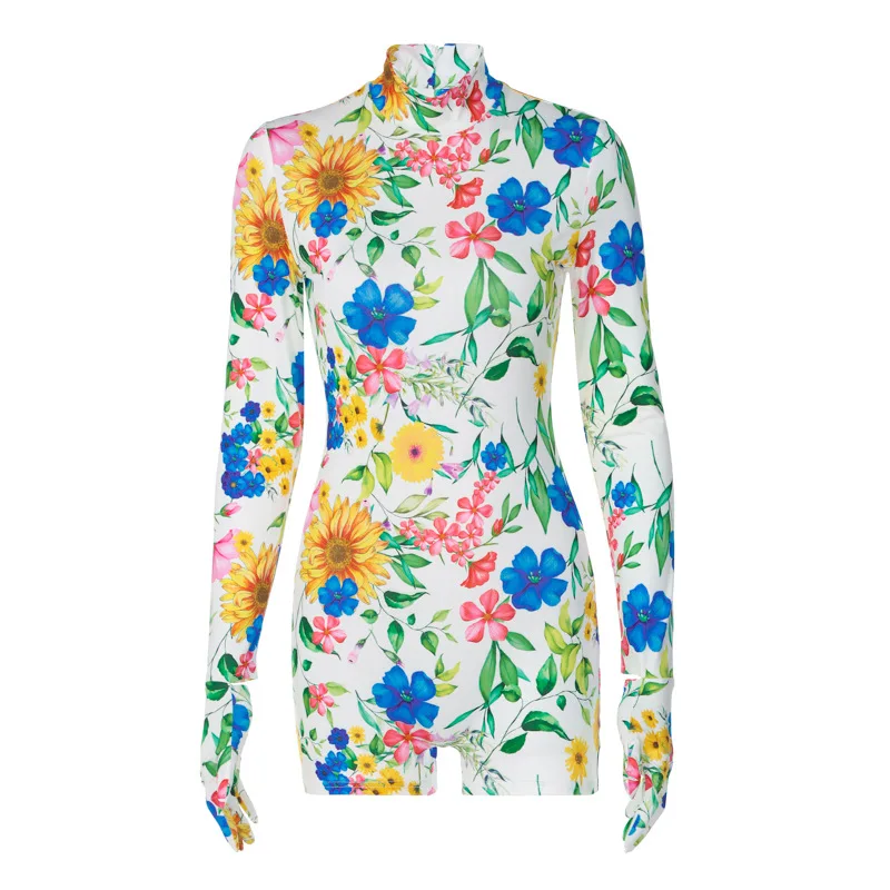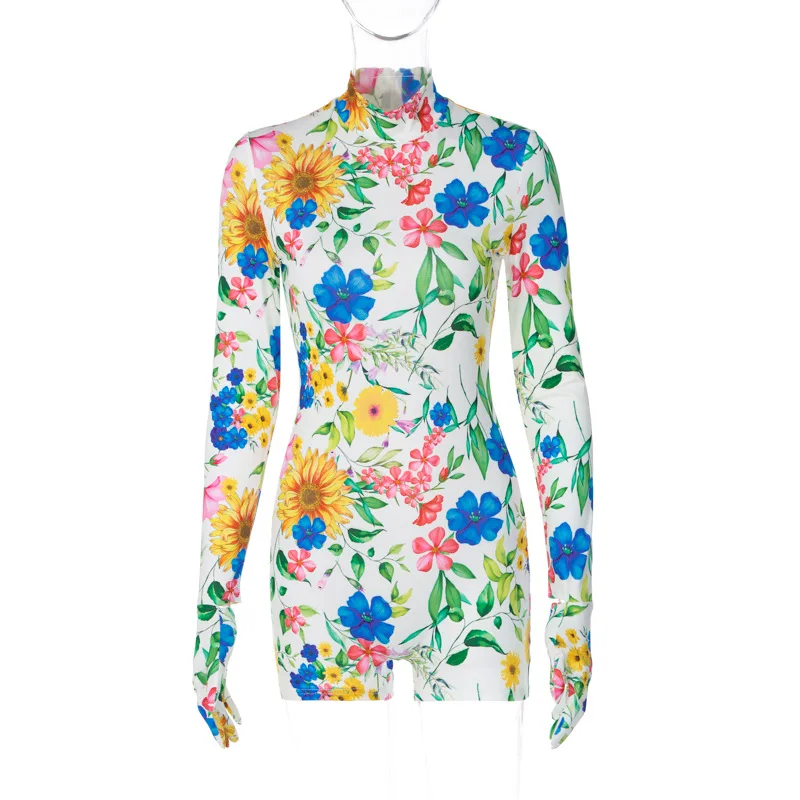 Lygens Tie Dye Floral Print 10290 Long Sleeve Sezy Bodycon Rompers 202 New Fashion Party Women Clothes