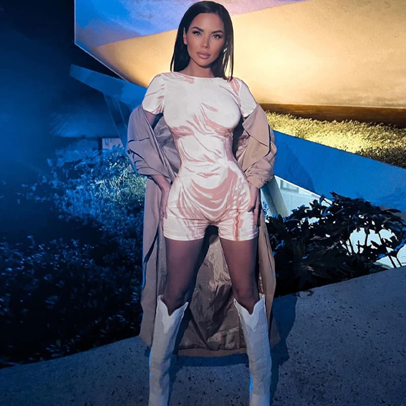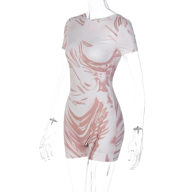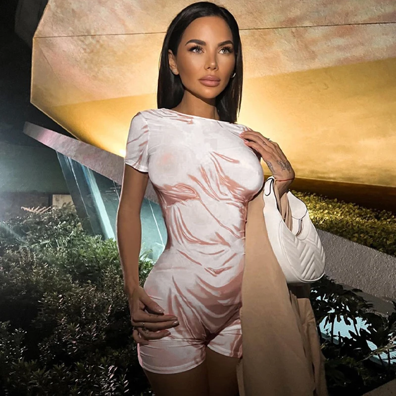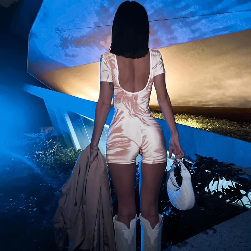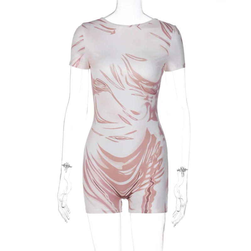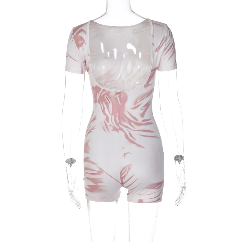 Lygens2956 Gym Tie Dye Print O Neck Backless Short Sleeve One Piece Rompers Bodysuit Jumpsuit Summer Sportsuit Casual Clothes