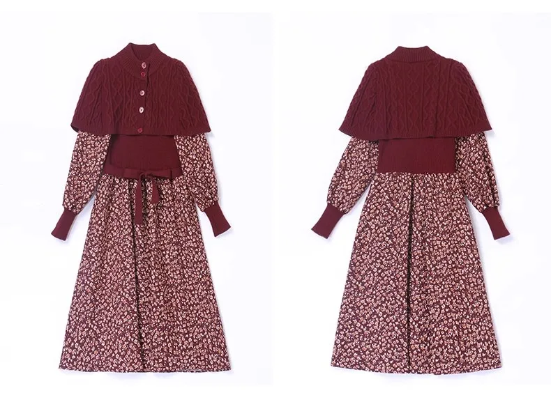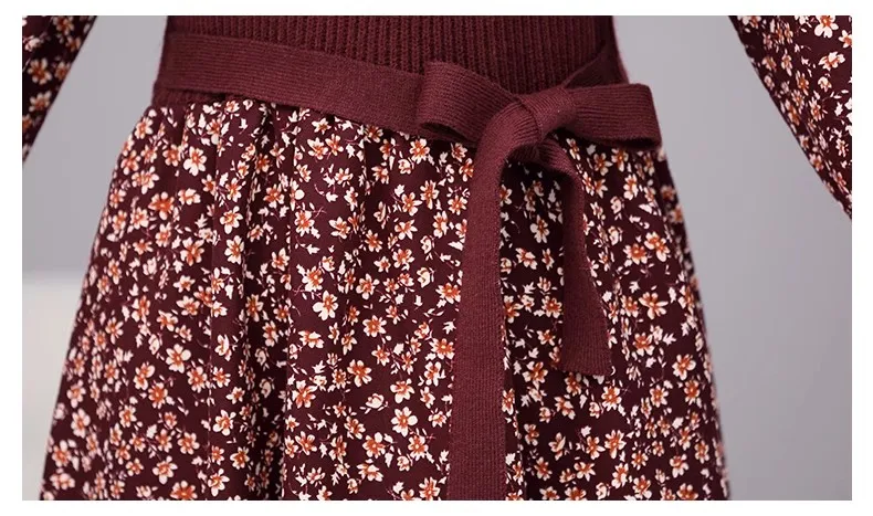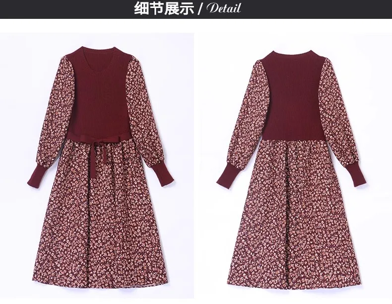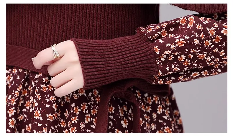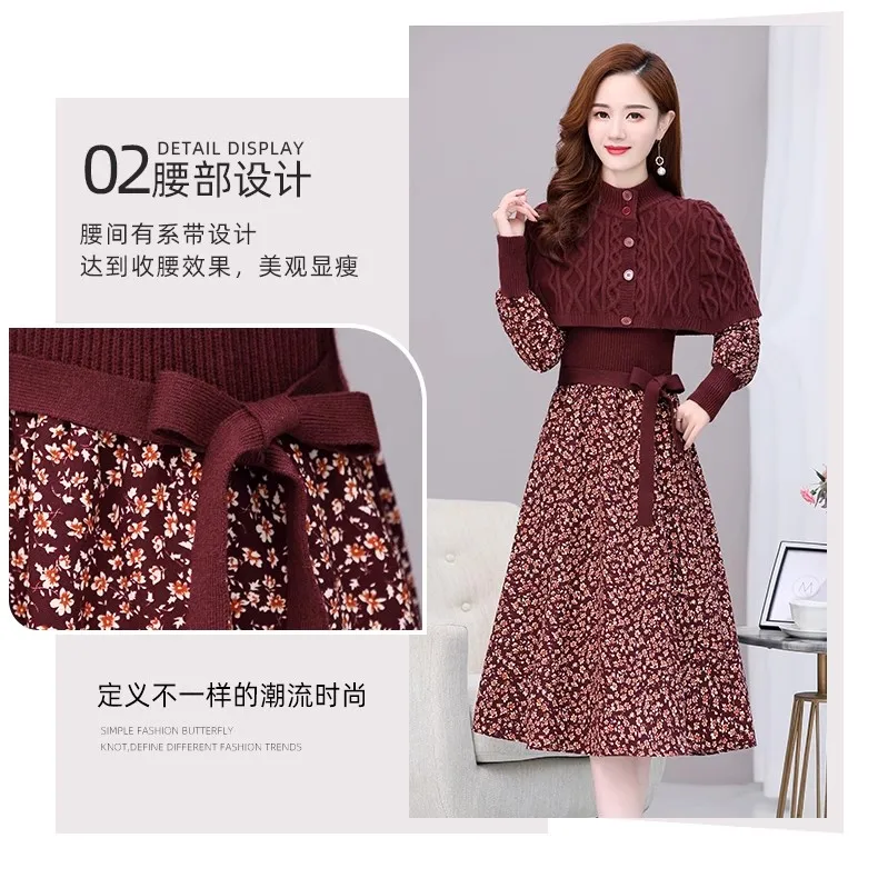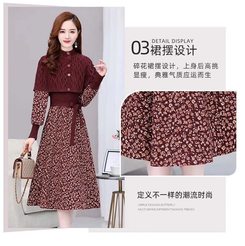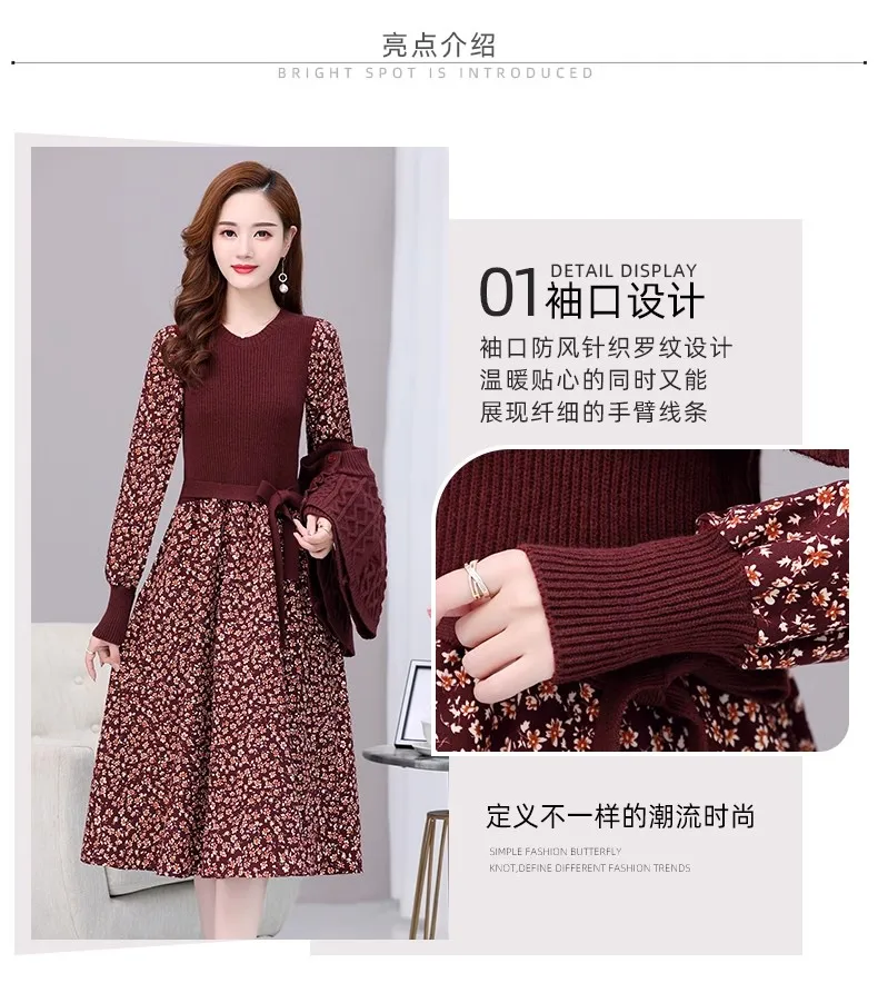M-2XL New Autumn/Winter Dress Women's mid length light cooked bottom knitted floral A-line Y2K dress