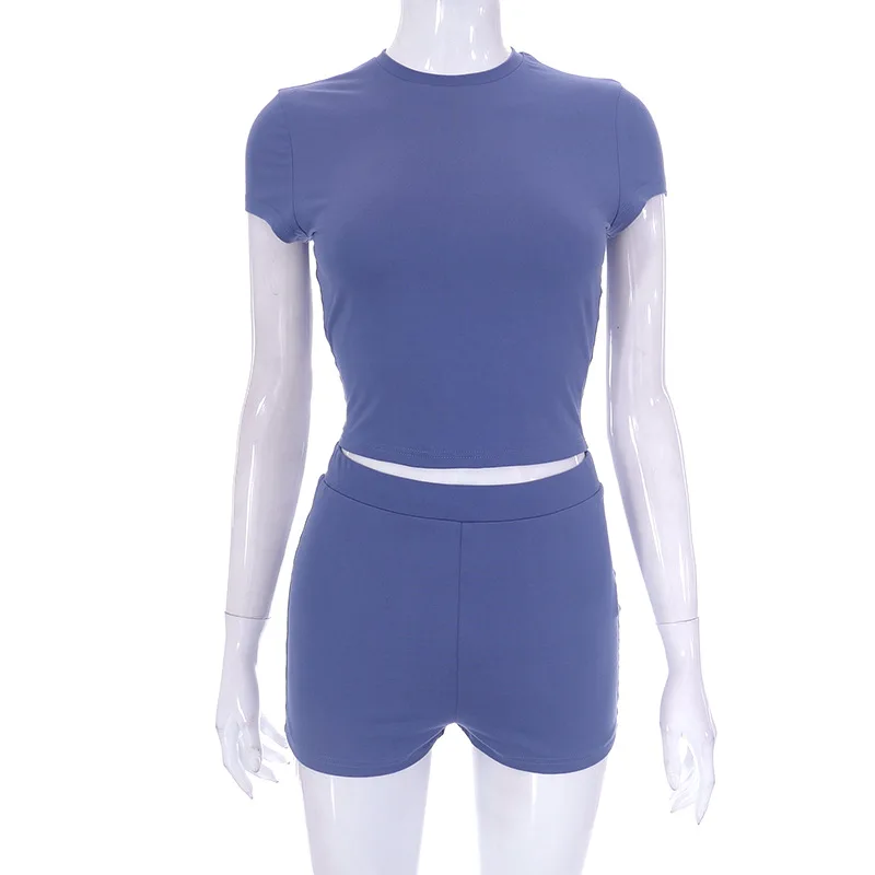 M23ST073 Women's 2023 Spring And Summer New Solid Color Short-sleeved Casual Shorts Suit Two Piece Set