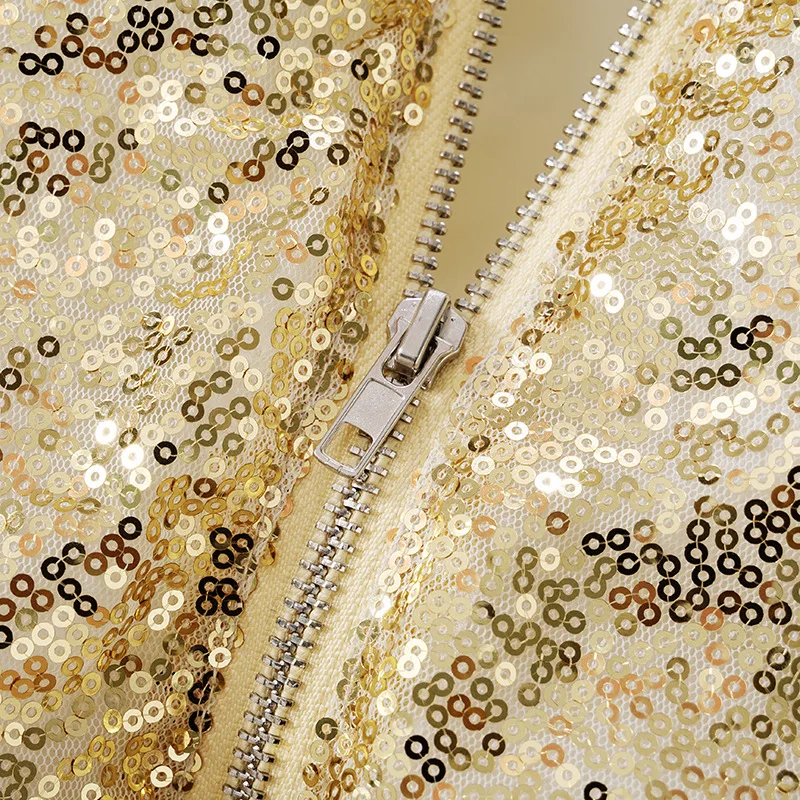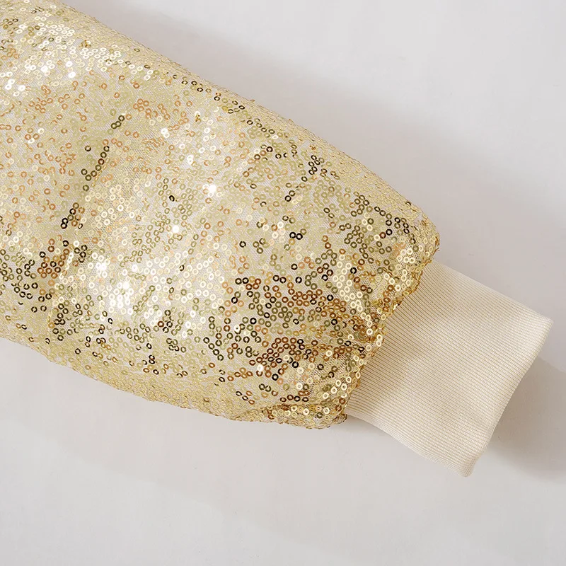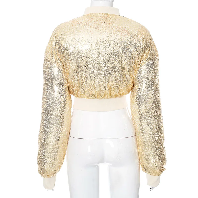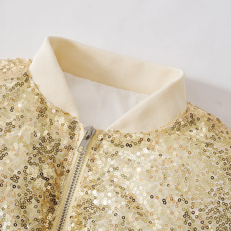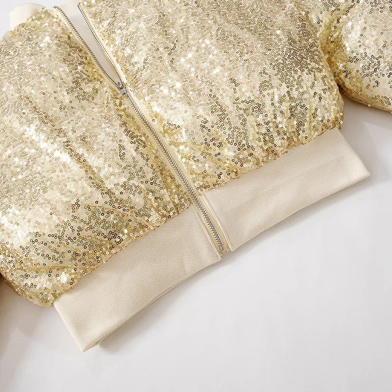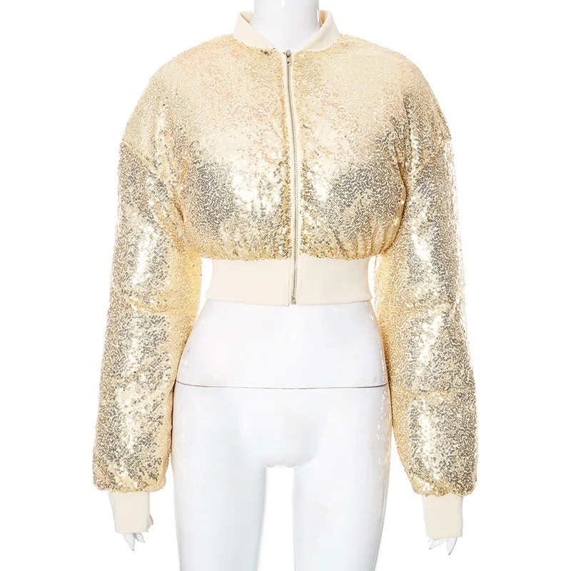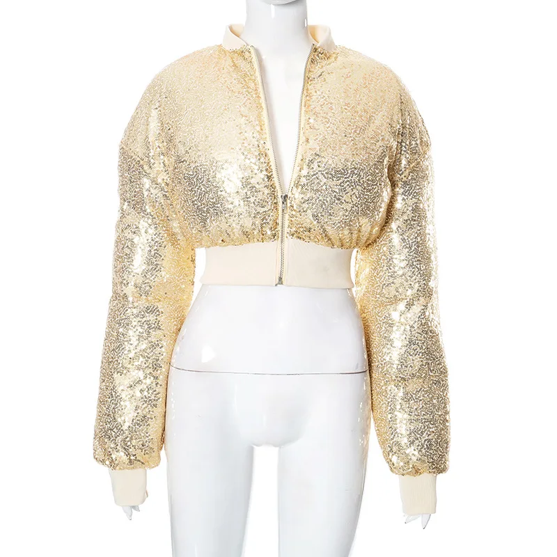 M23tp427 New 2024 Winter Sequin Long Sleeve Stand Collar Jacket Thick Coat Solid Loose Zipper Short Coat For Women Lady