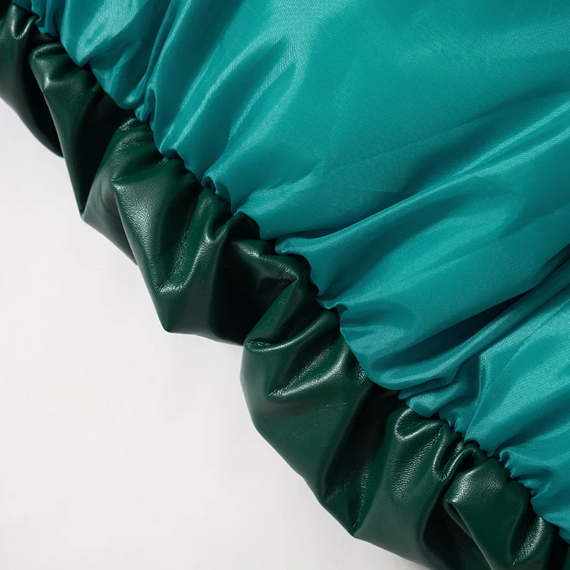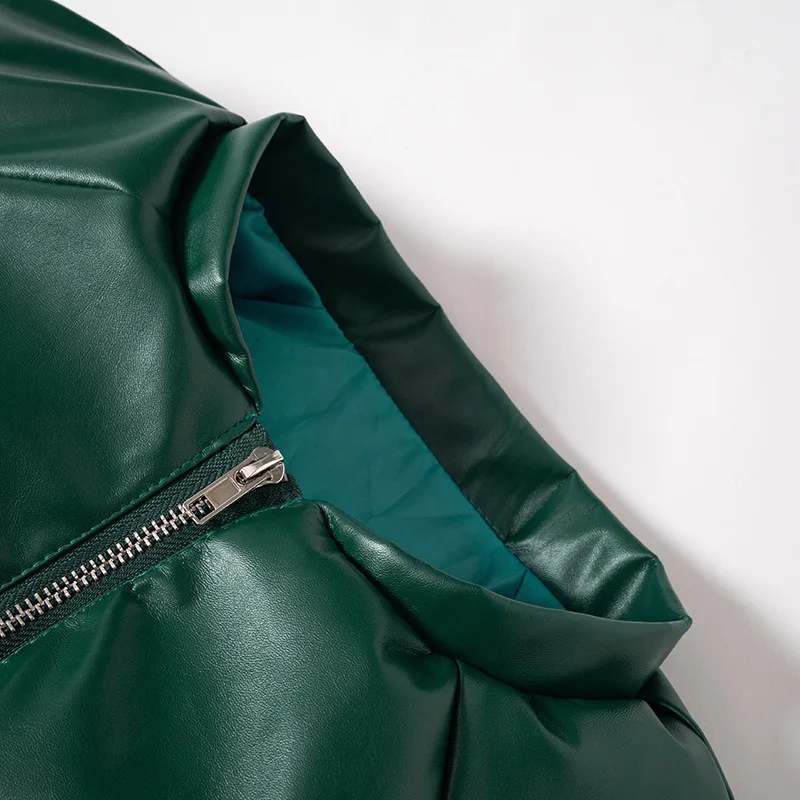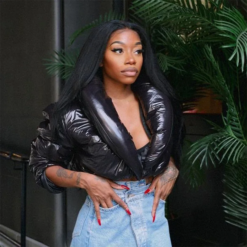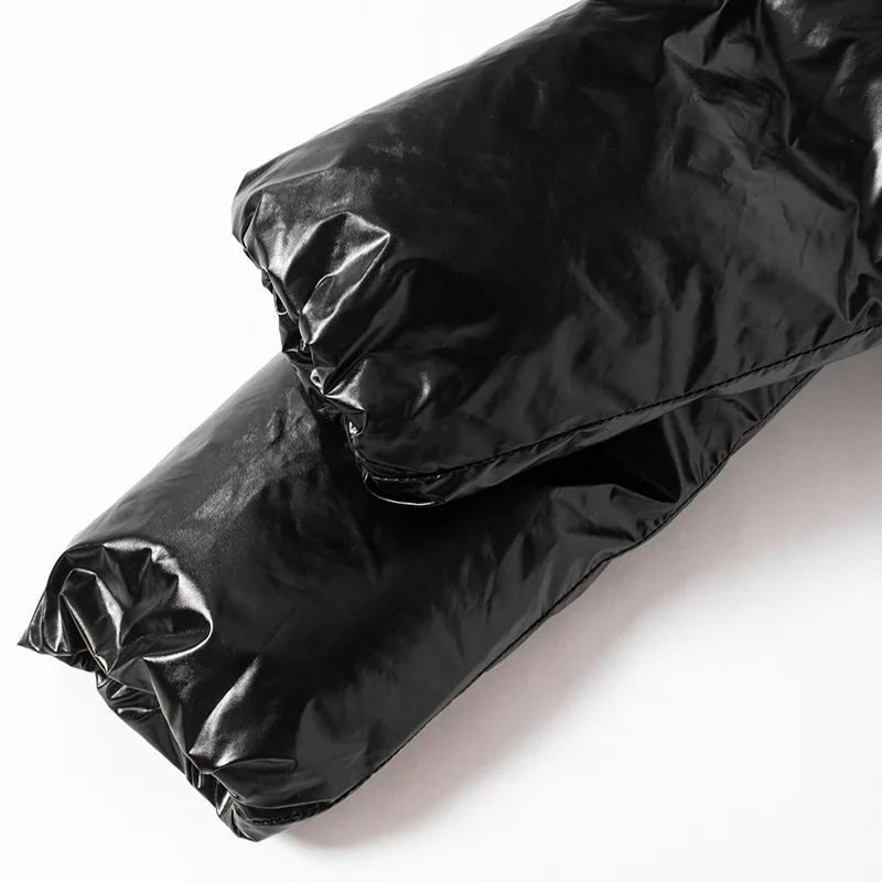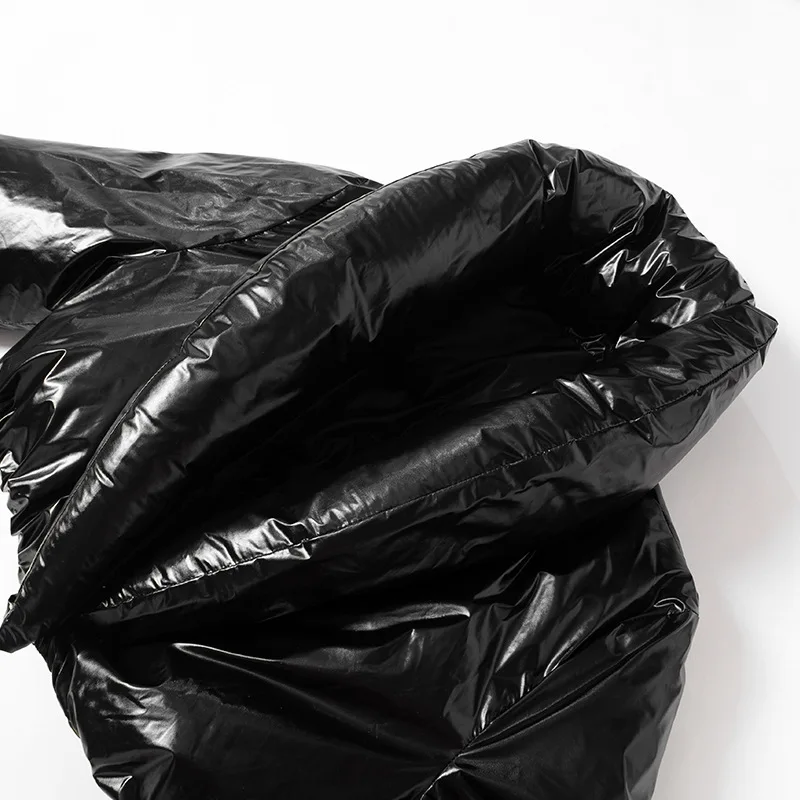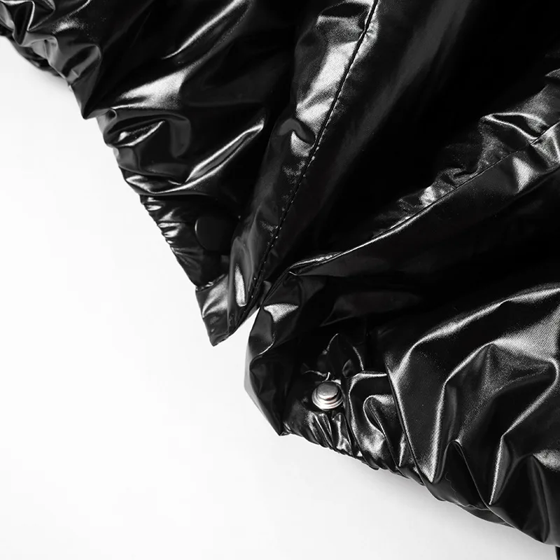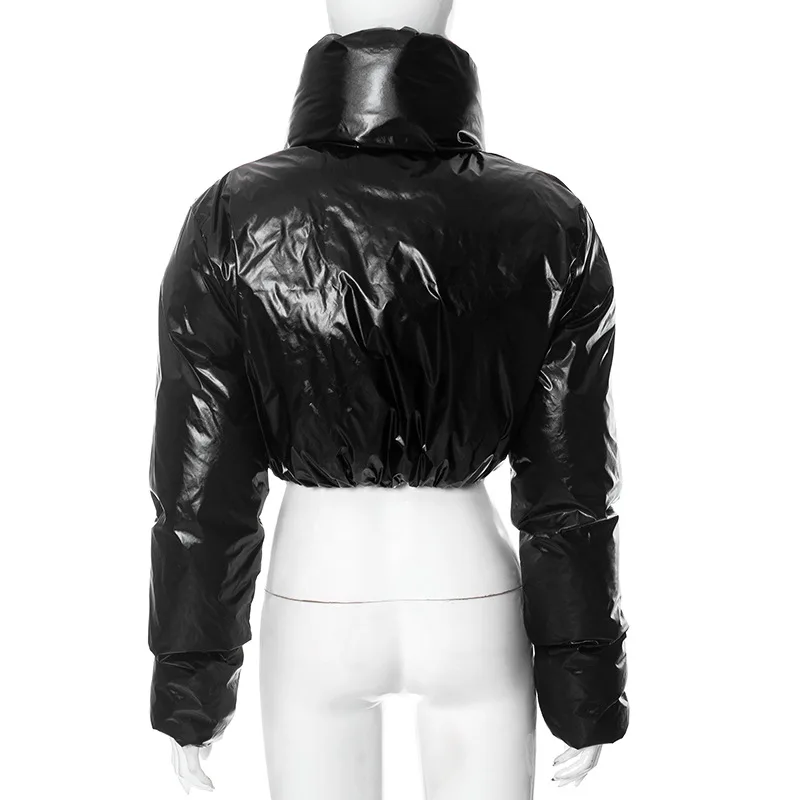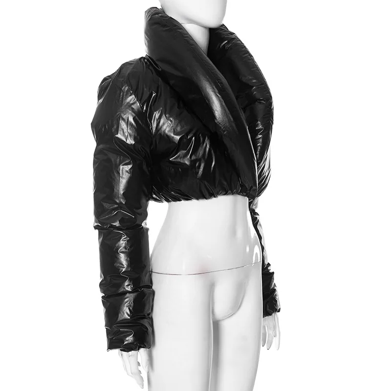 M23Tp456 Winter Fashion Motorcycle Black Jacket Ladies Bubble Cardigan V Neck Hollow Out Short Crop Jacket Warm Puffer Down Coat