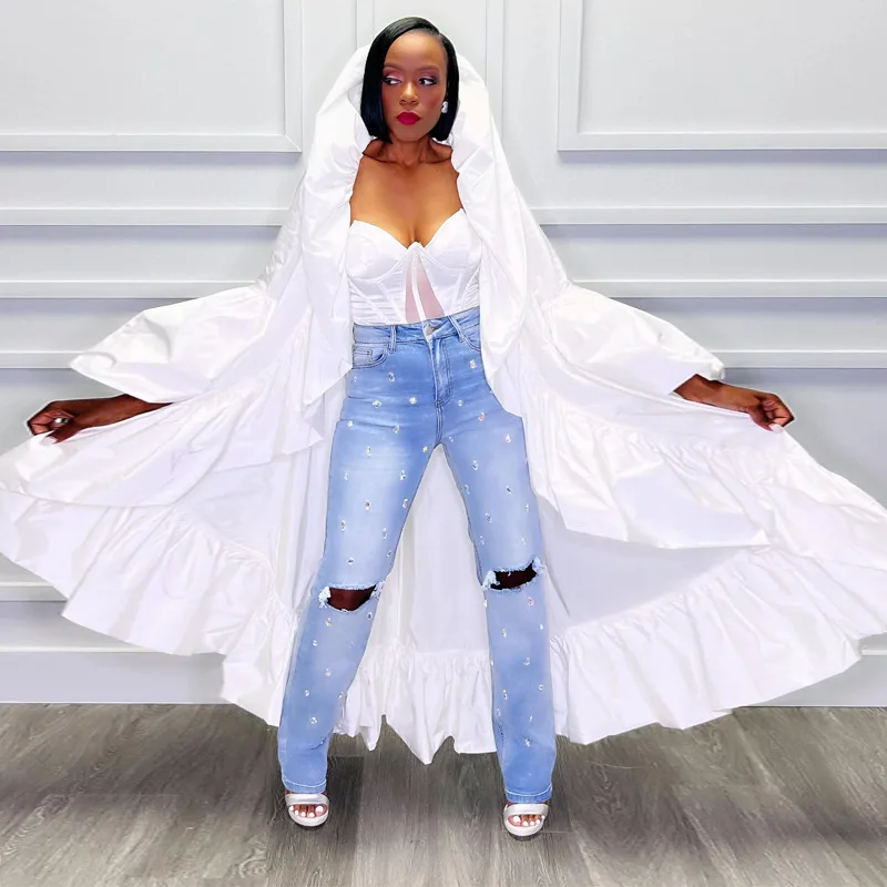 M7971 New Solid Color Ruffled Shawl Jacket Fashion Winter Clothes Lady Long Jacket