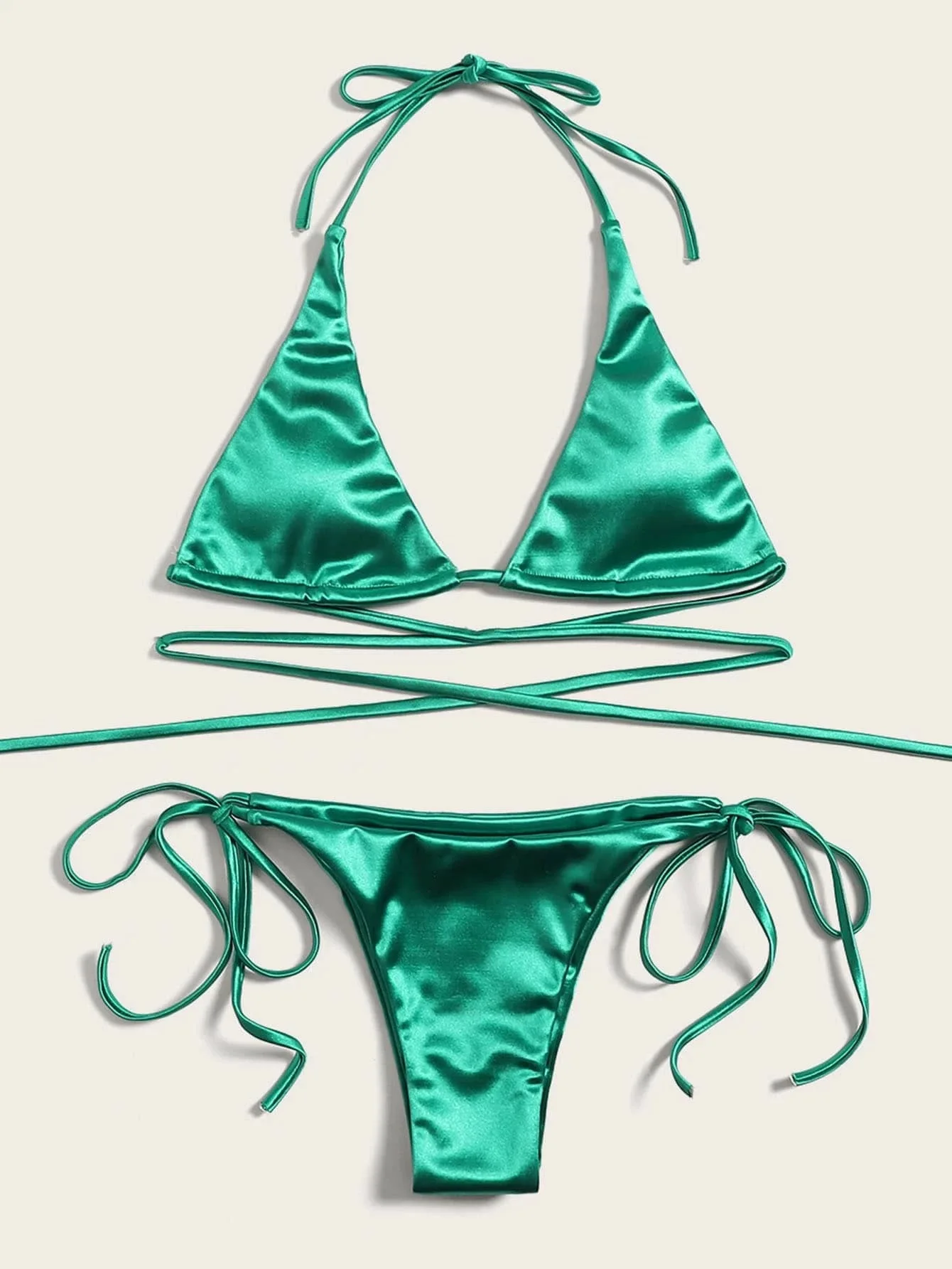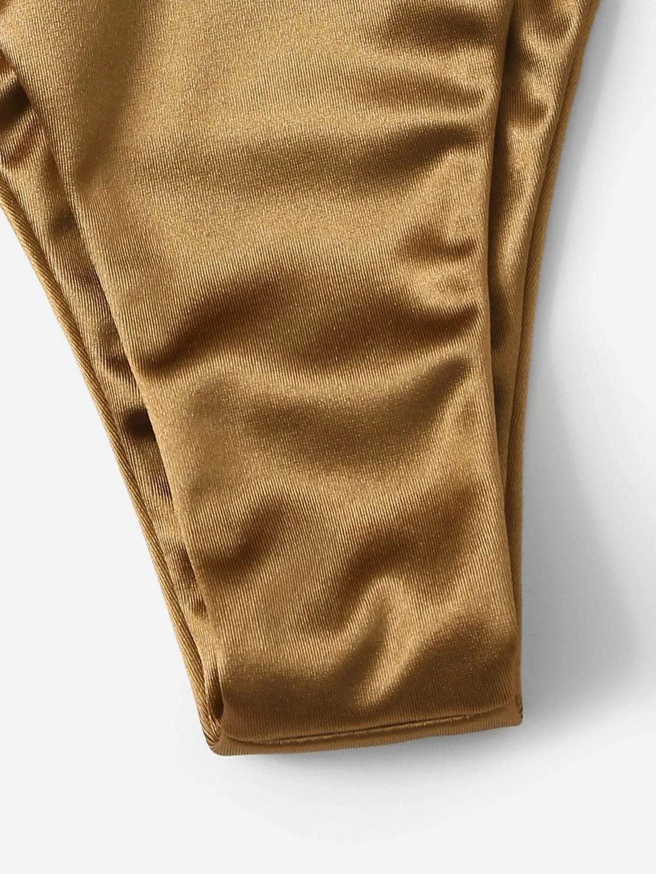 Manufacturer custom swimsuits bikini sets for 2023 women luxury satin shiny string bathing suit brazilian gold shiny bikinis