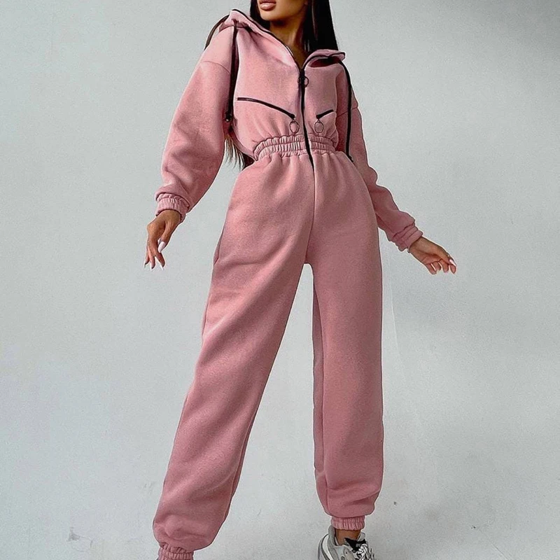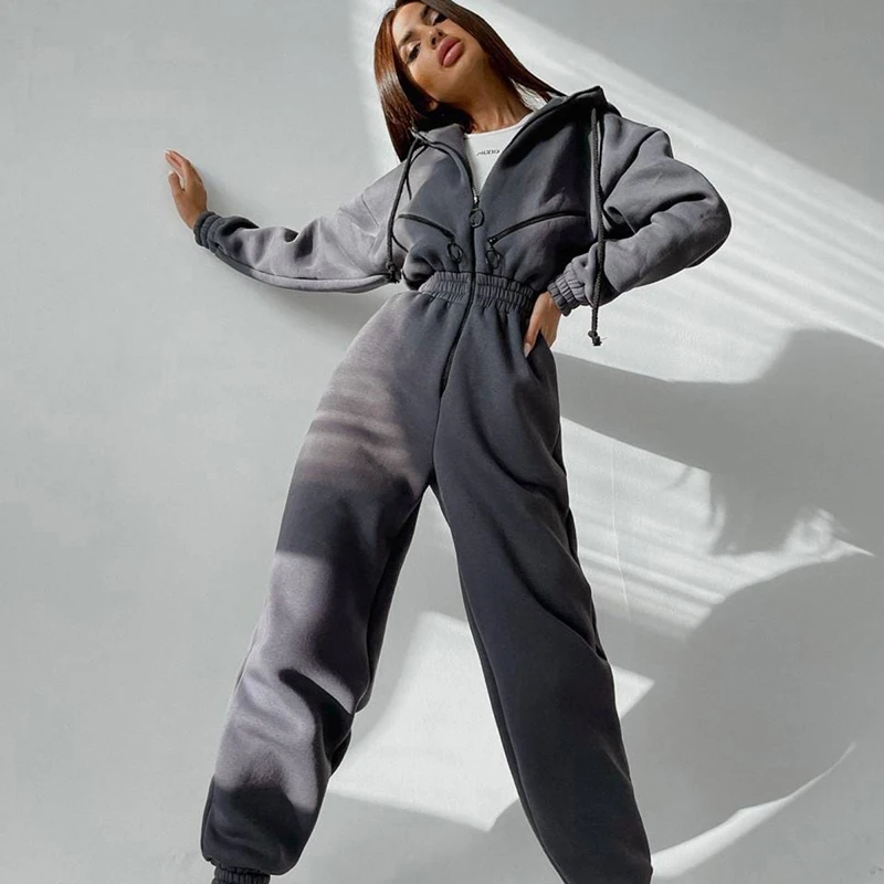 Manufacturer High Quality Women Sportswear Jumpsuits Autumn Winter Zipper Hooded Sweatshirt Playsuits for Woman Fashion Overalls