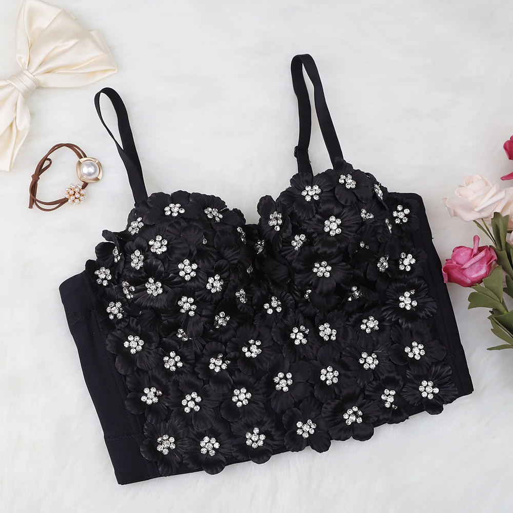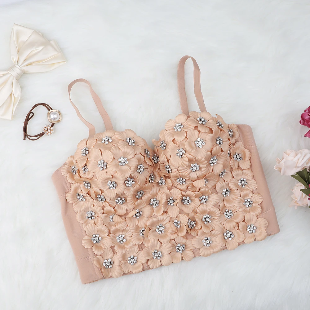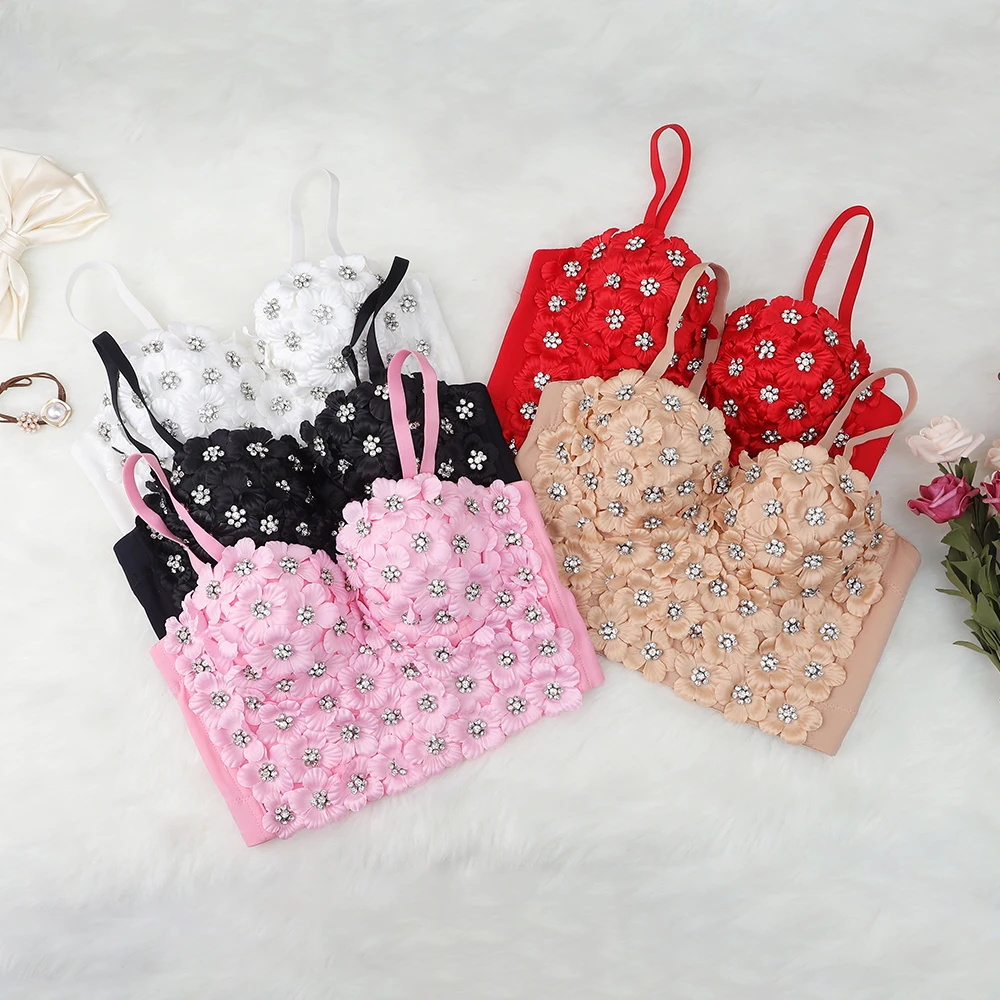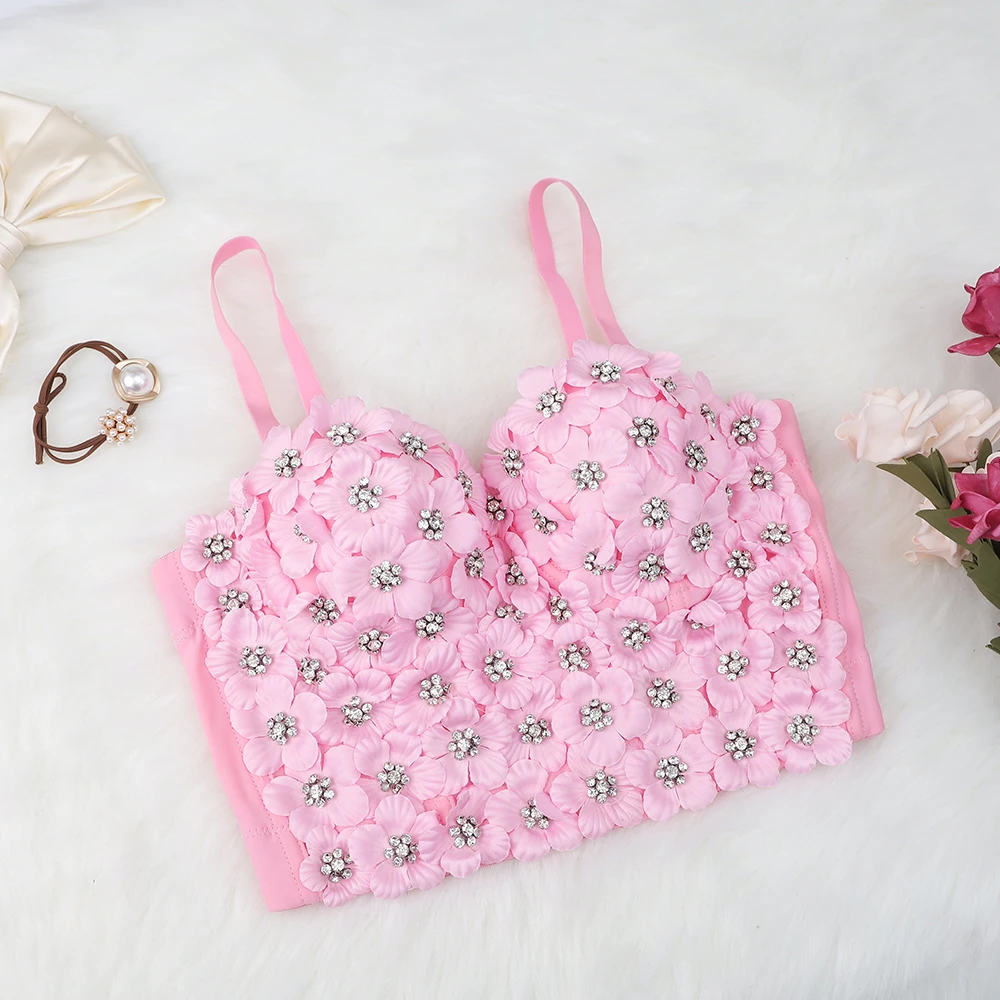 Manufacturer Wholesale spot wholesale flowers rhinestone pink women's tights bustier top