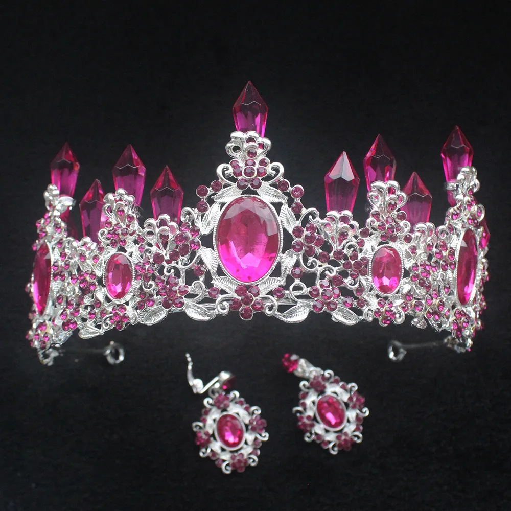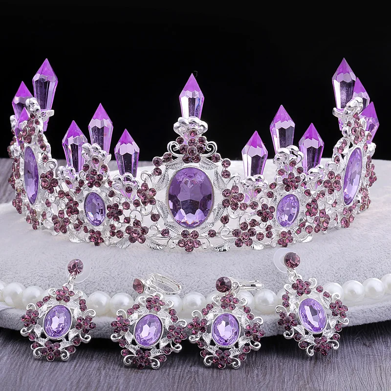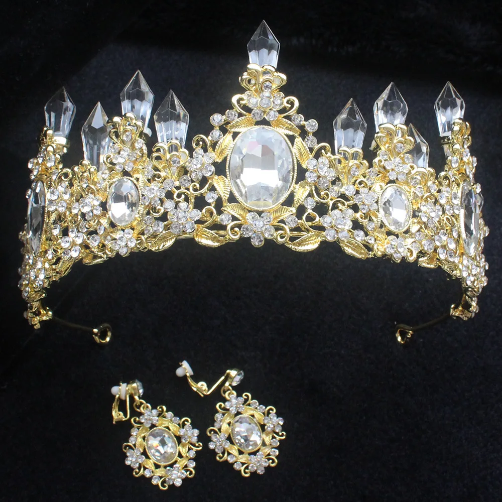 Manufacturer Wholesale Wedding Bride Jewelry Rhinestone Baroque Crystal Column Crown Alloy Hair Accessories Tiara Sets