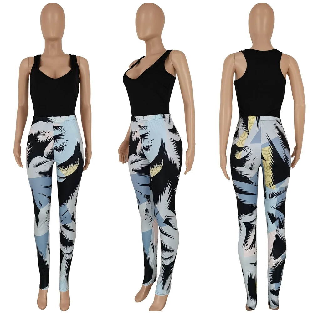 MD-2023 New Arrivals Women Ladies Crop Tank Top Sleeveless Mujer Print Long Fitness Pants Ladies Summer Short Two Piece Outfits
