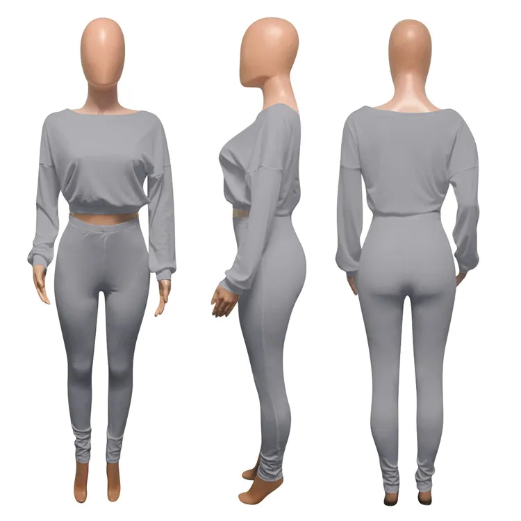 MD-2023 new09090701 Sexy Lady 2 PCS Plus Size Outfits Tracksuit Rib Long Sleeve Tops Leggings Pants Fall Women Clothing Two Piece Set