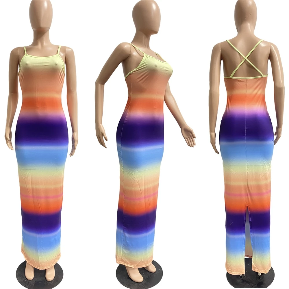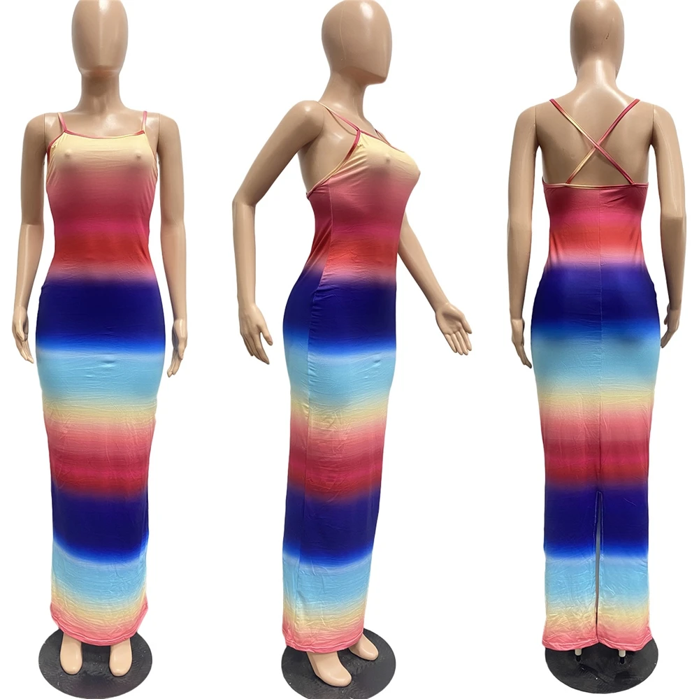 MD-202sundresses women summer2023 Clothing Casual Dresses Elegant Tie Dye Tight Halter Sexy Maxi Long Bodycon Slip Tie Dye Dress
