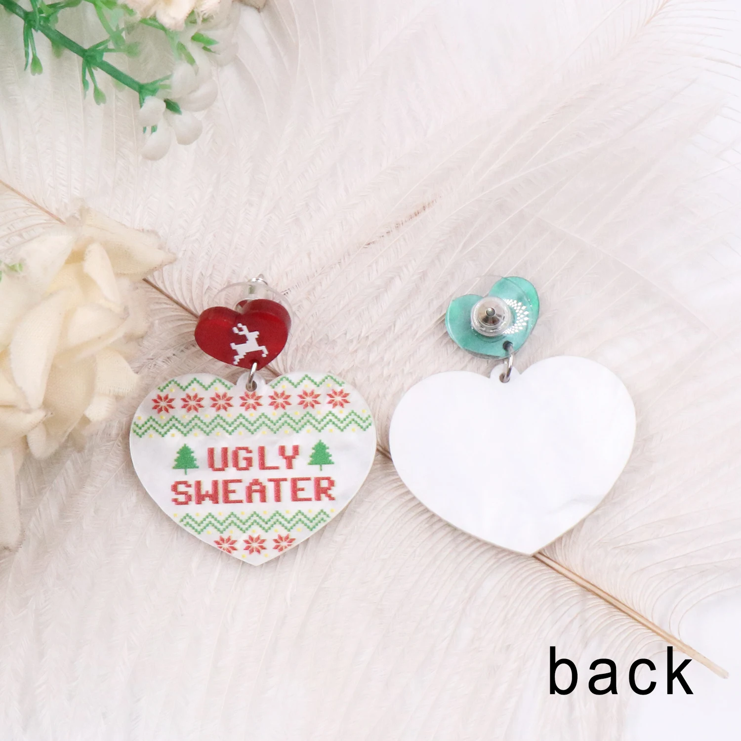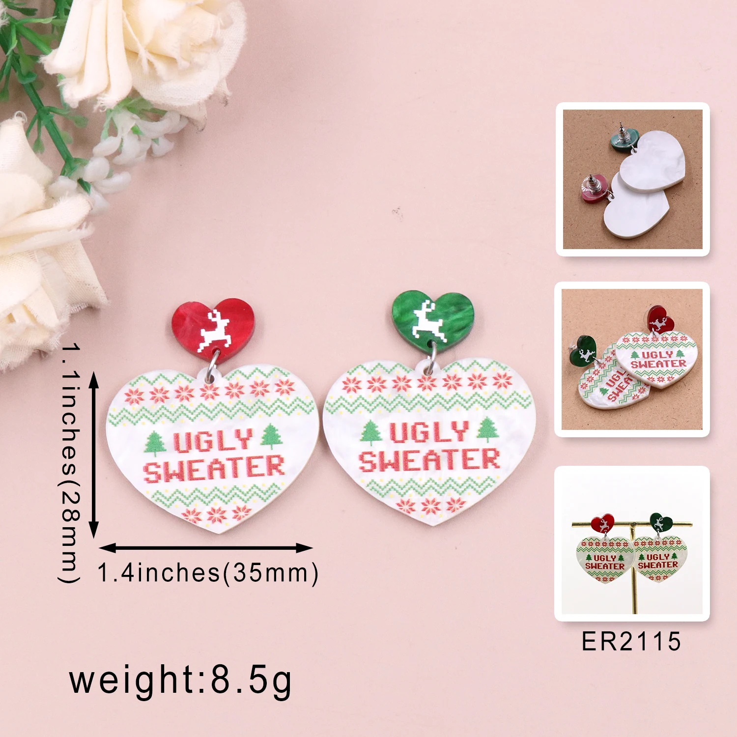 MD141ER2115 1pair New product CN Drop heart ugly sweater TRENDY christmas Acrylic earrings Jewelry for women