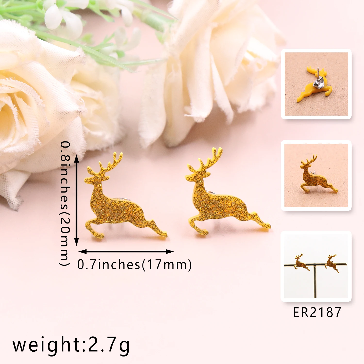 MD146ER2187 1Pair New product CN Stud deer cute christmas Acrylic stainless steel Jewelry For Women