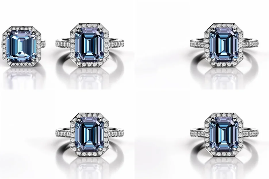 MEDBOO 14K White Gold Fashion Wedding Ring 3CT Blue Moissanite Princess Cut Diamond Ring Fine Jewelry for Woman