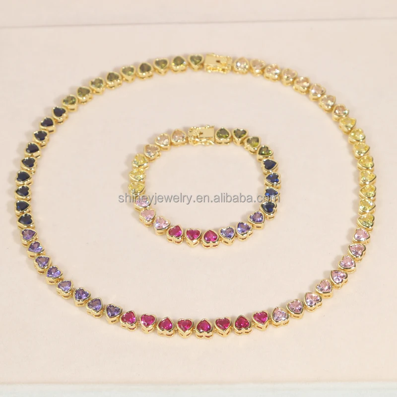 Micro Pave 5A Black White Red CZ Enamel Heart Necklace Bracelet Earring For Women Fashion Jewelry Set