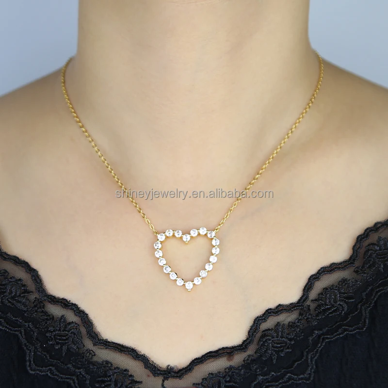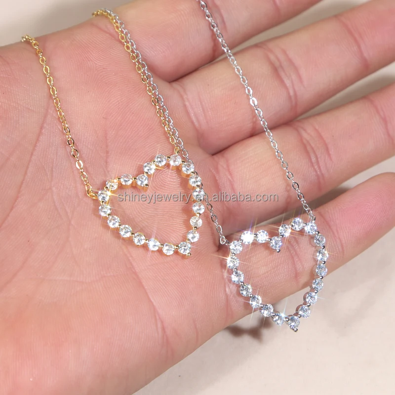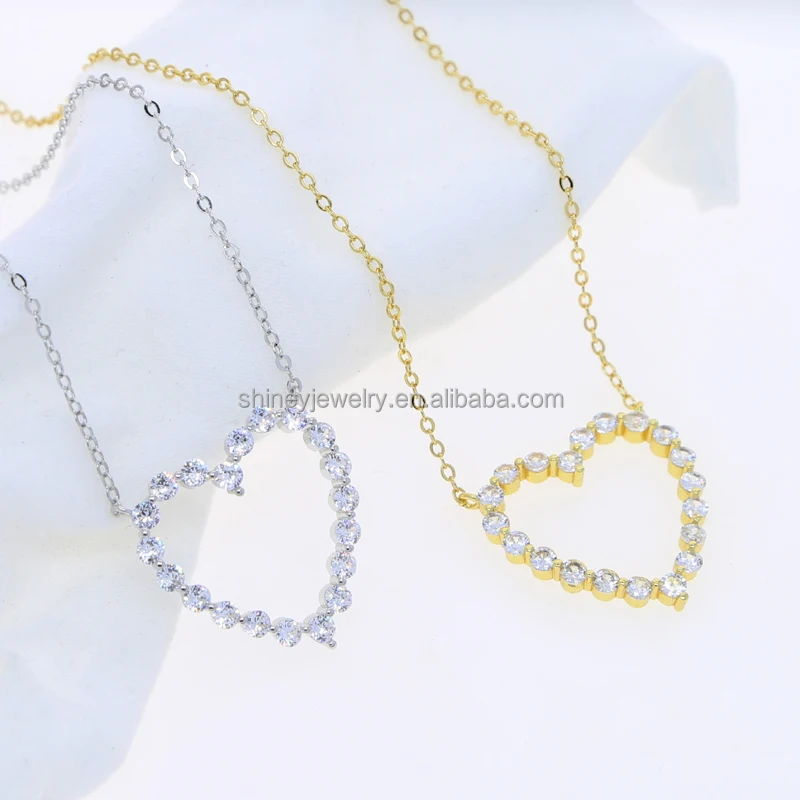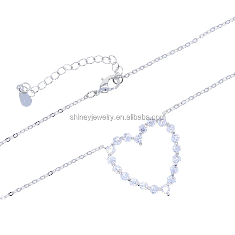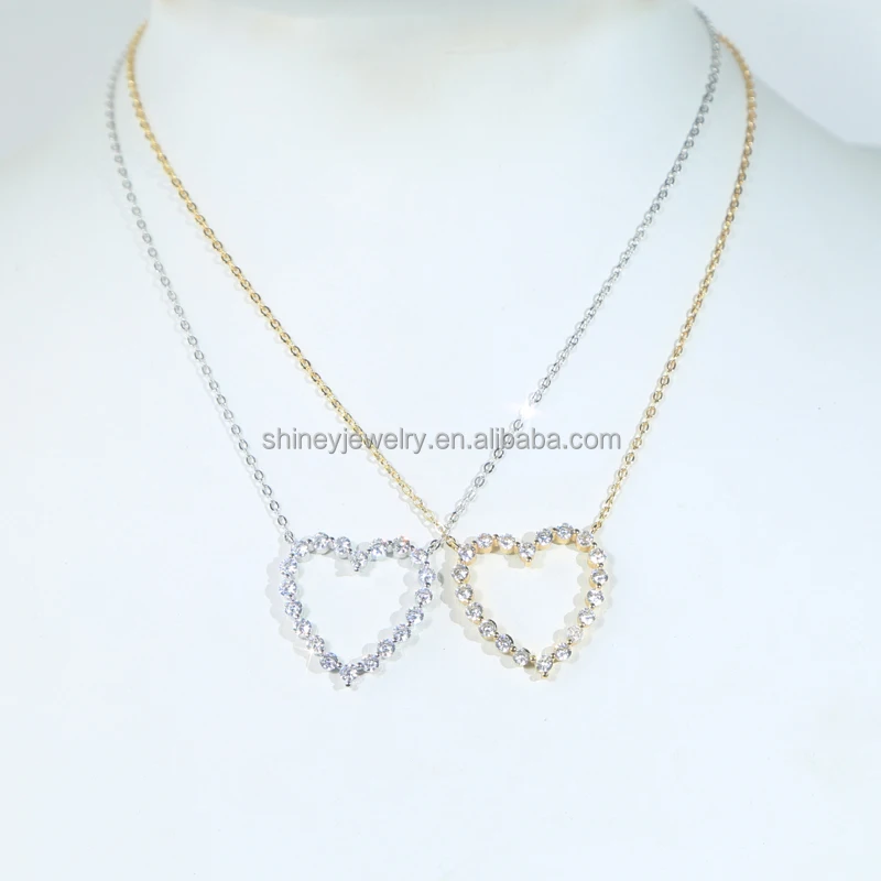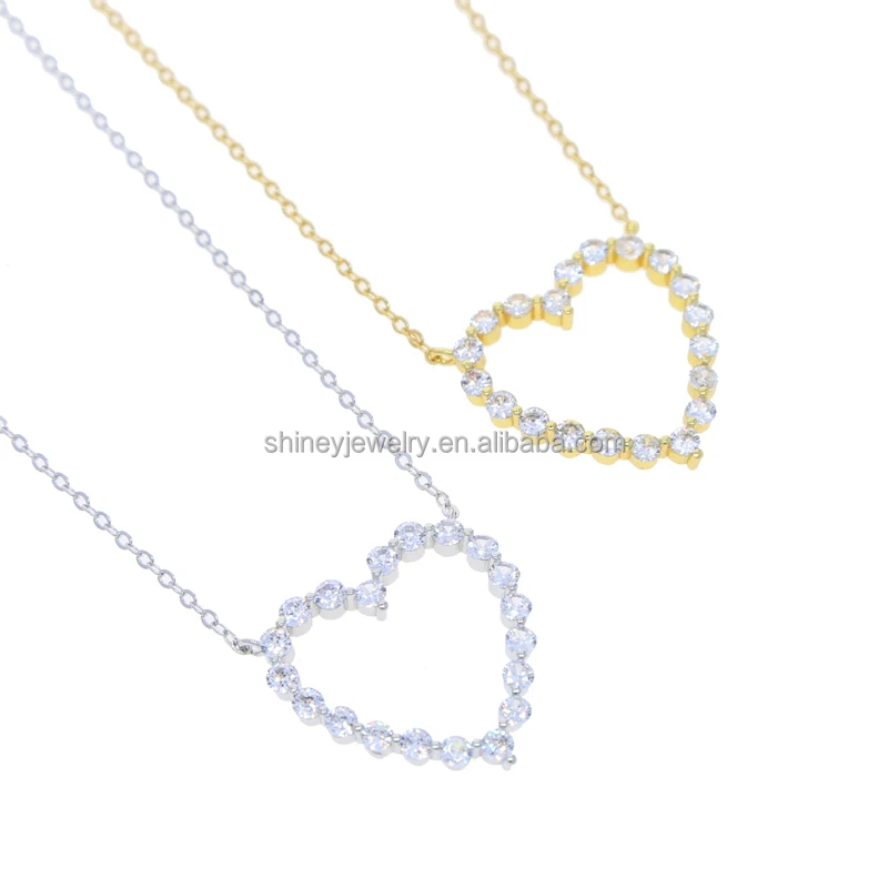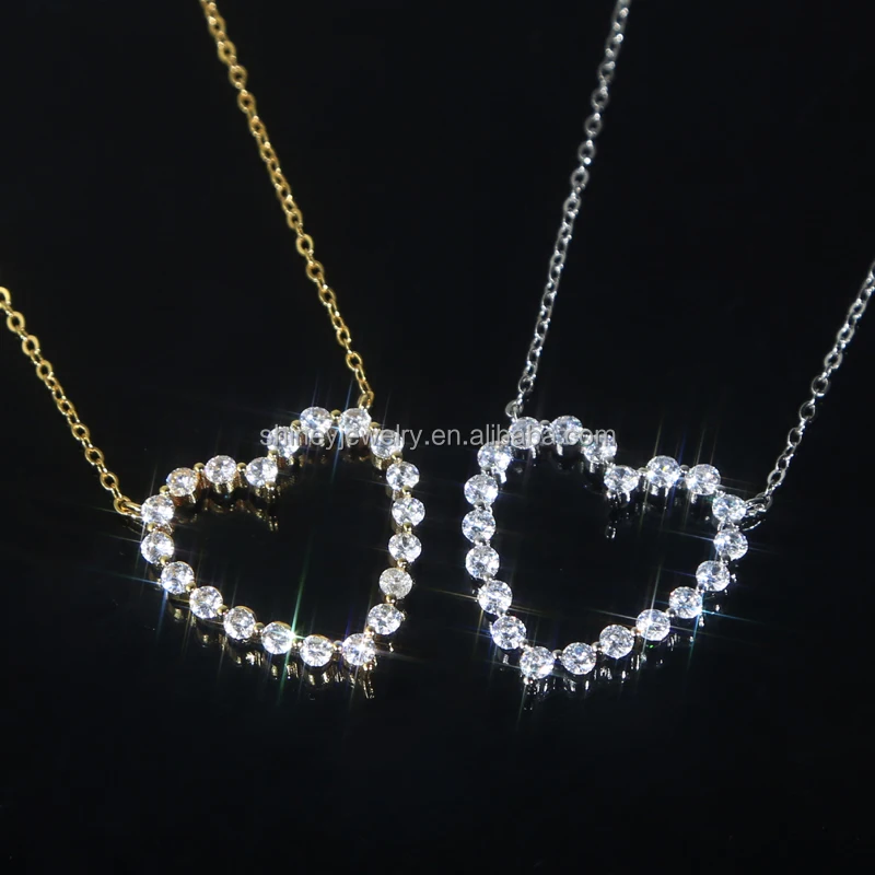 Micro Pave 5A CZ Hollow Heart Pendant Necklace For Women Bling Charm Link Chain Jewelry
