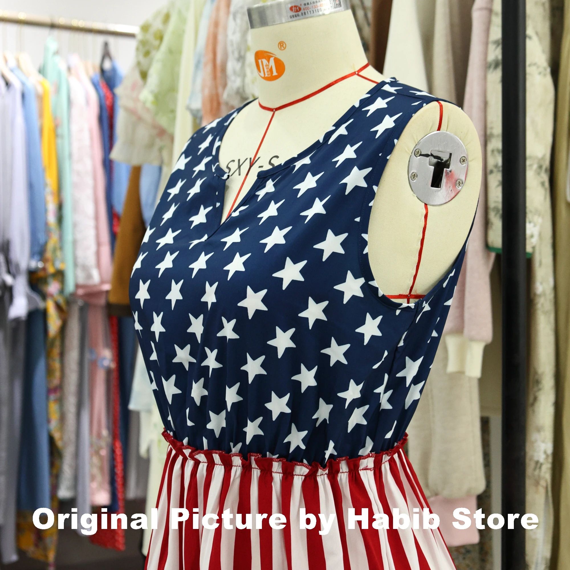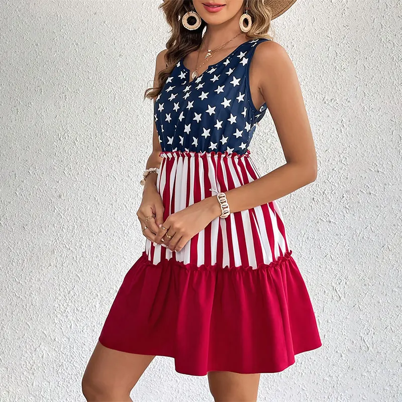 Midi Dress High Waist Ruffle Casual Sleeveless Women American Flag Star Mini Summer Girl Beach Female Vest Dress Gyaru Clothes