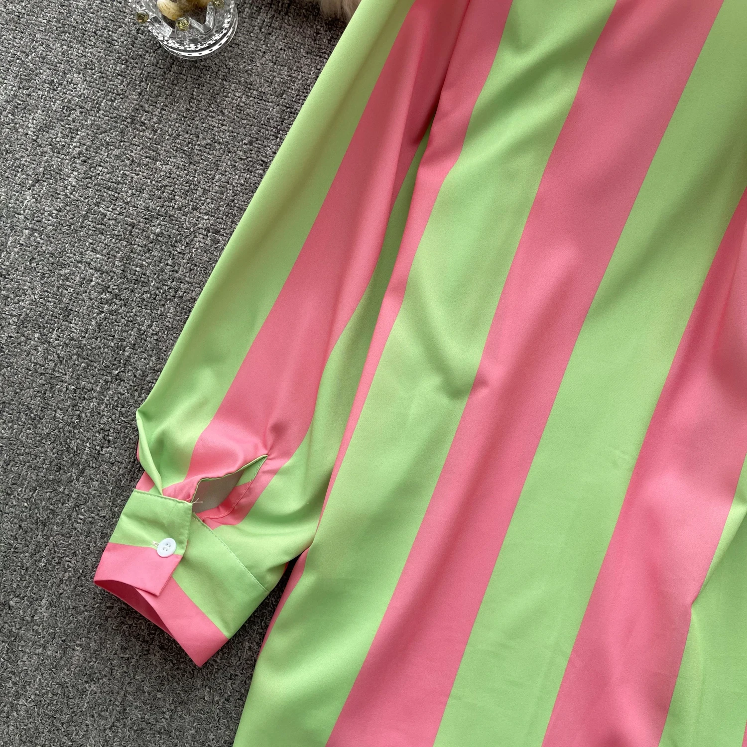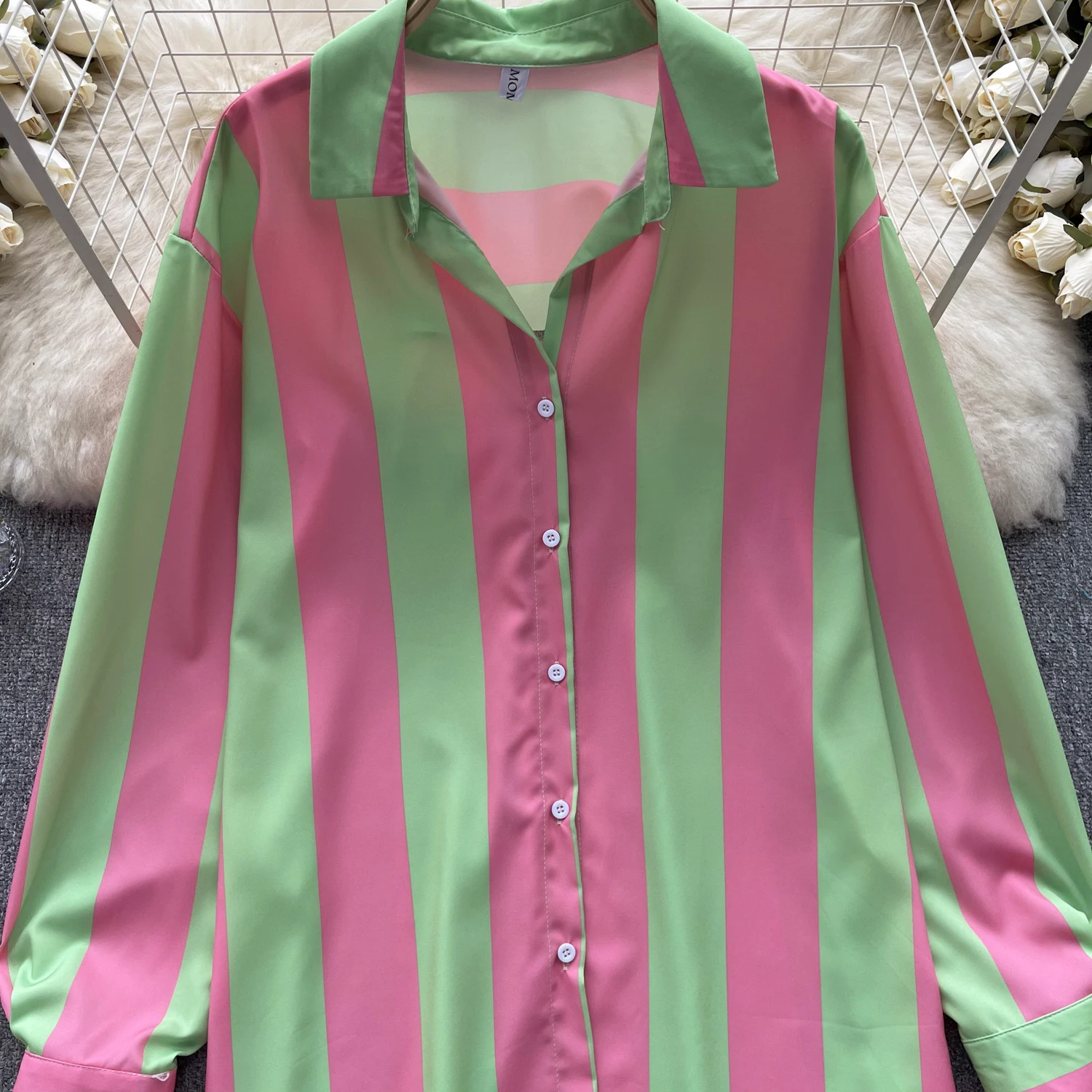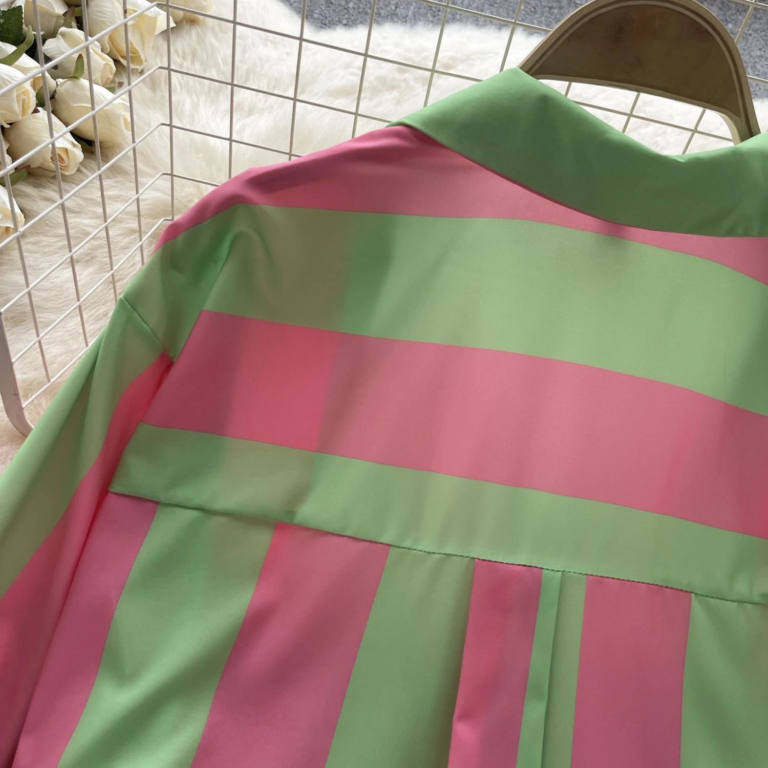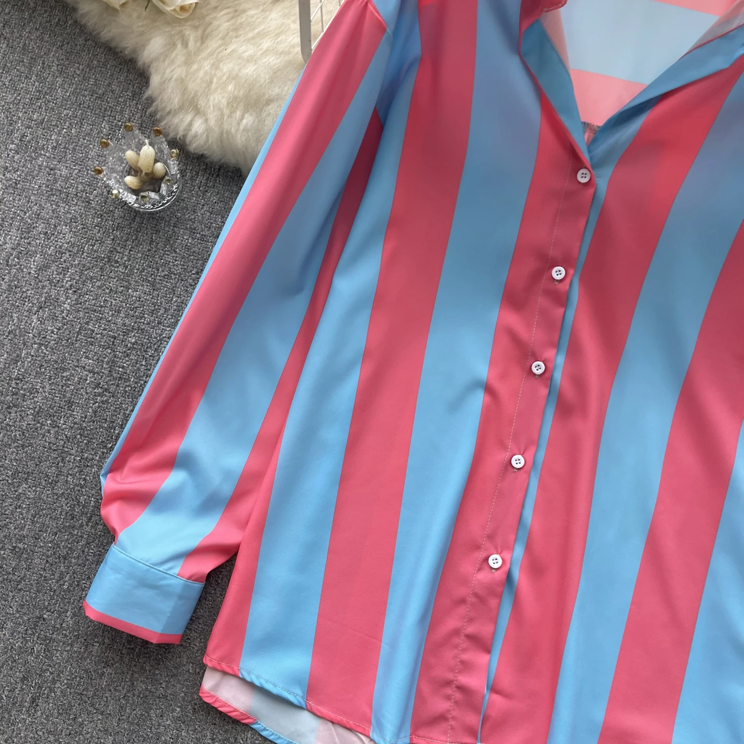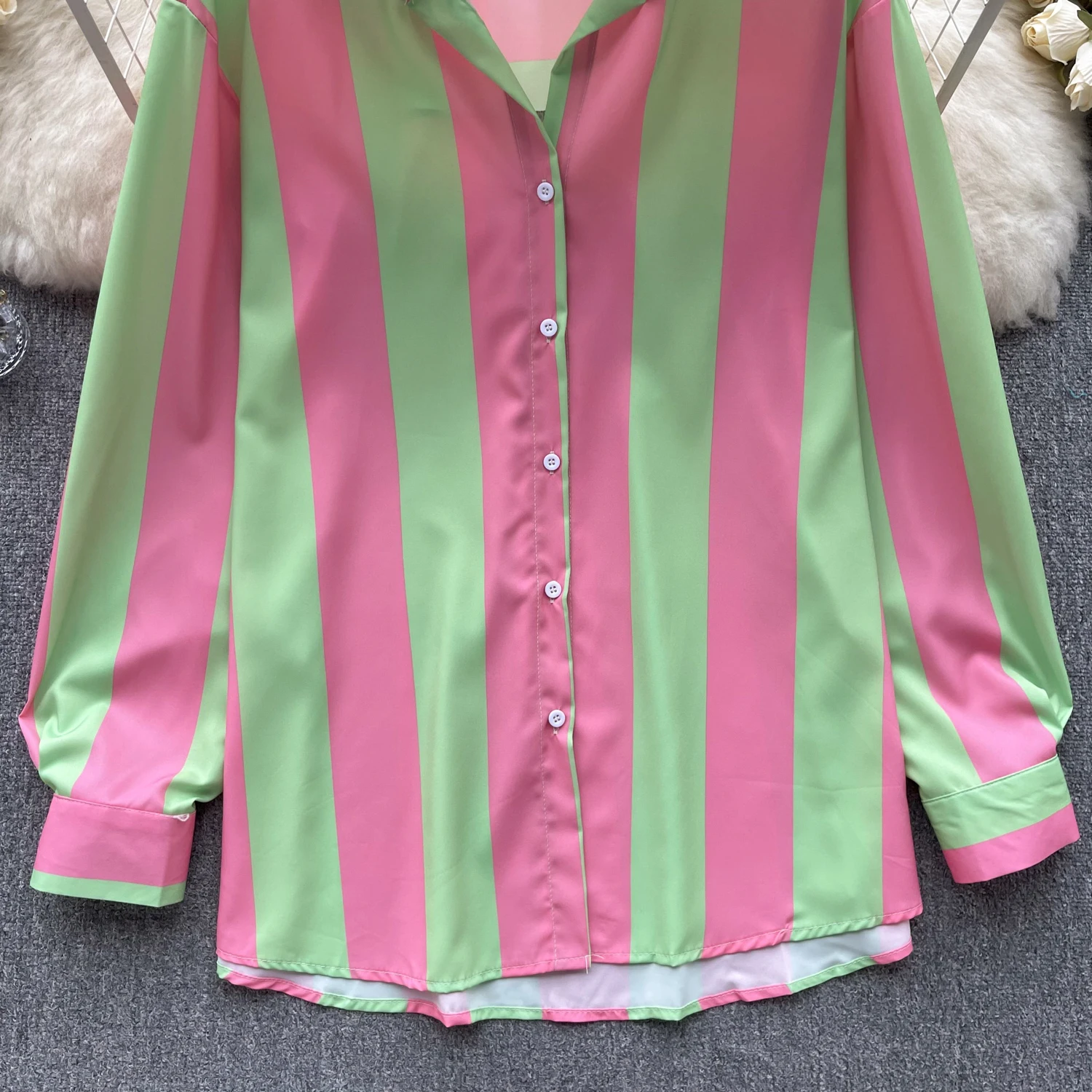 Minimalist Striped Shirt Women's Spring/Summer Polo Neck Loose and Slim Long Sleeve Casual Versatile Small Top for women 2023