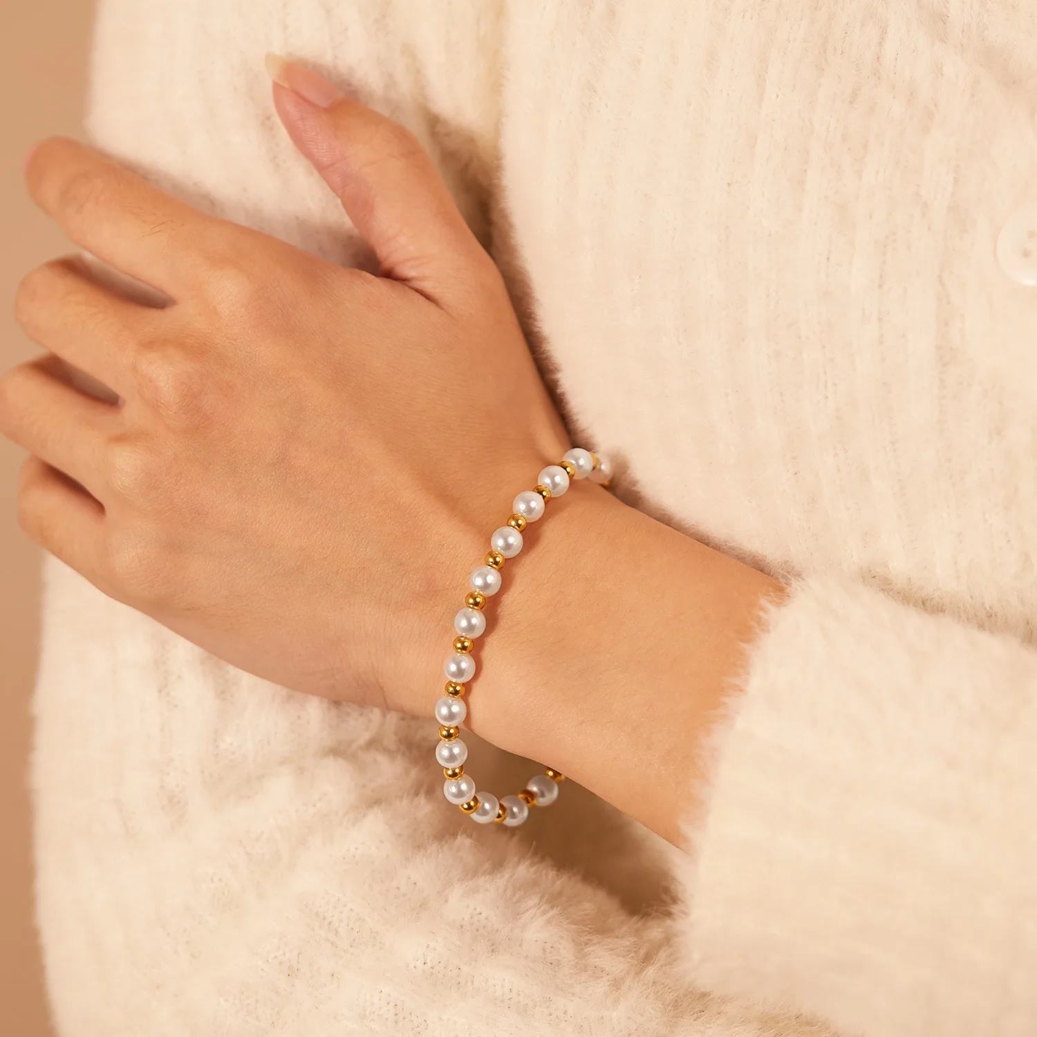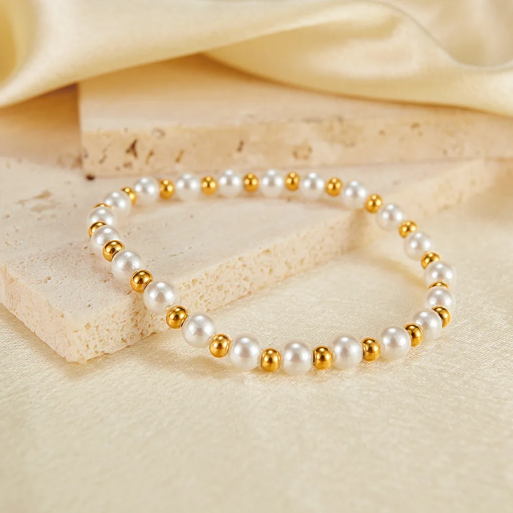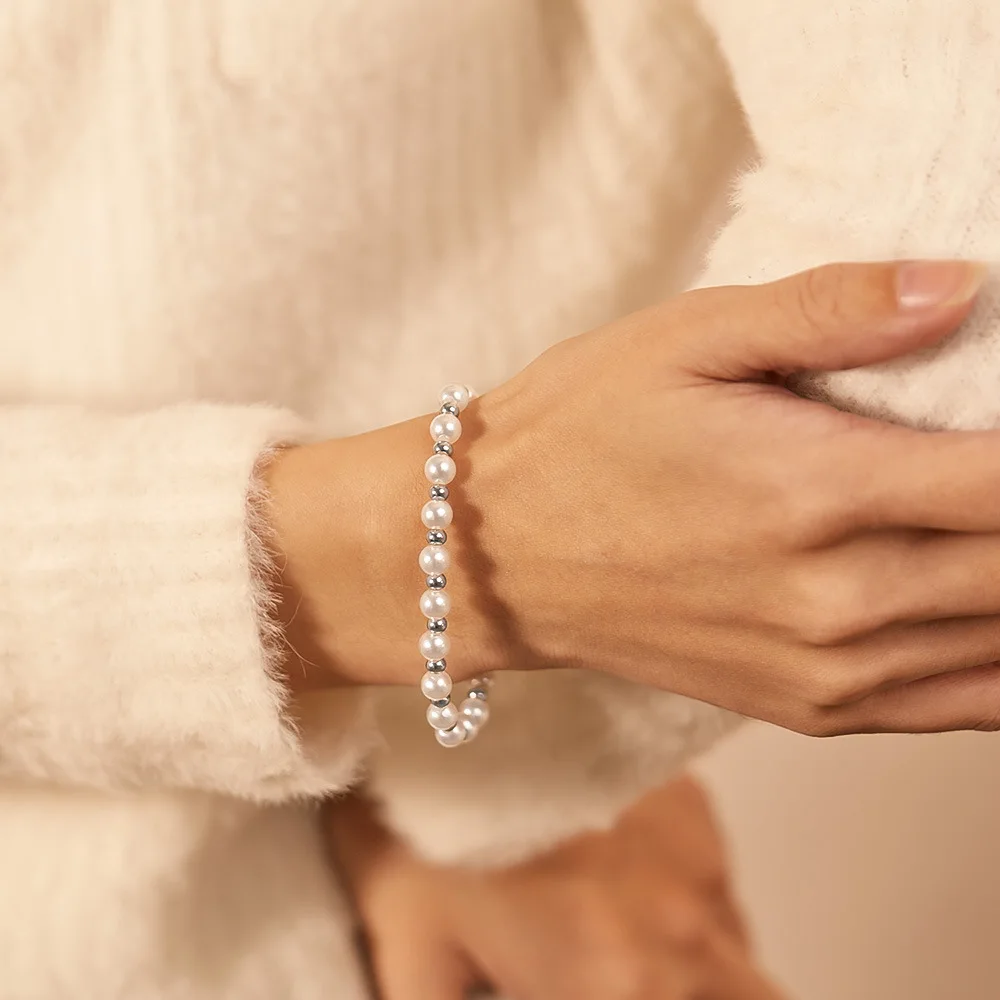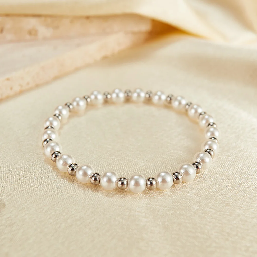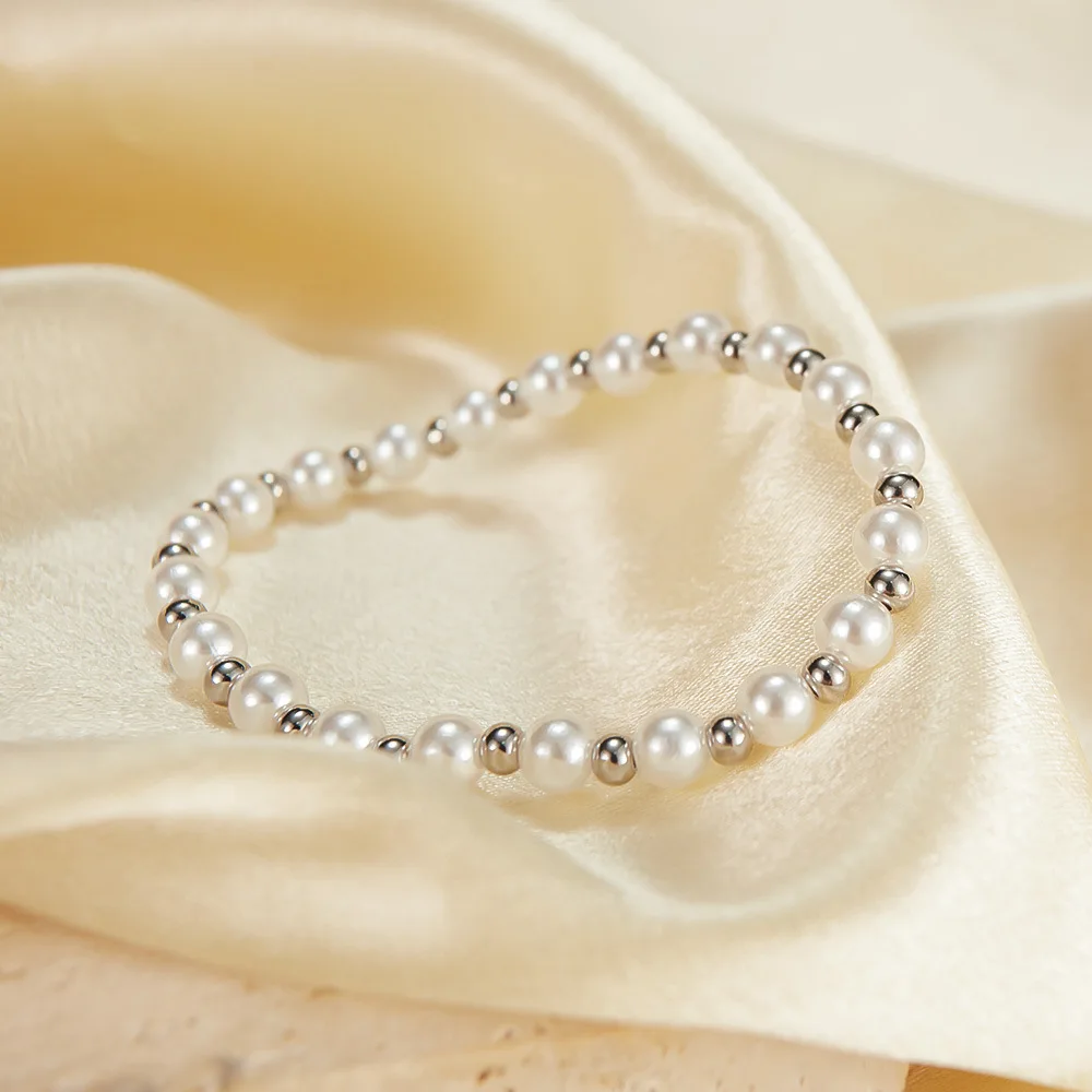Minimalist Unisex Stainless Steel Bracelets Pearl Bead Bracelet Anniversary Gift Ideas for Female for Party Wedding Engagement